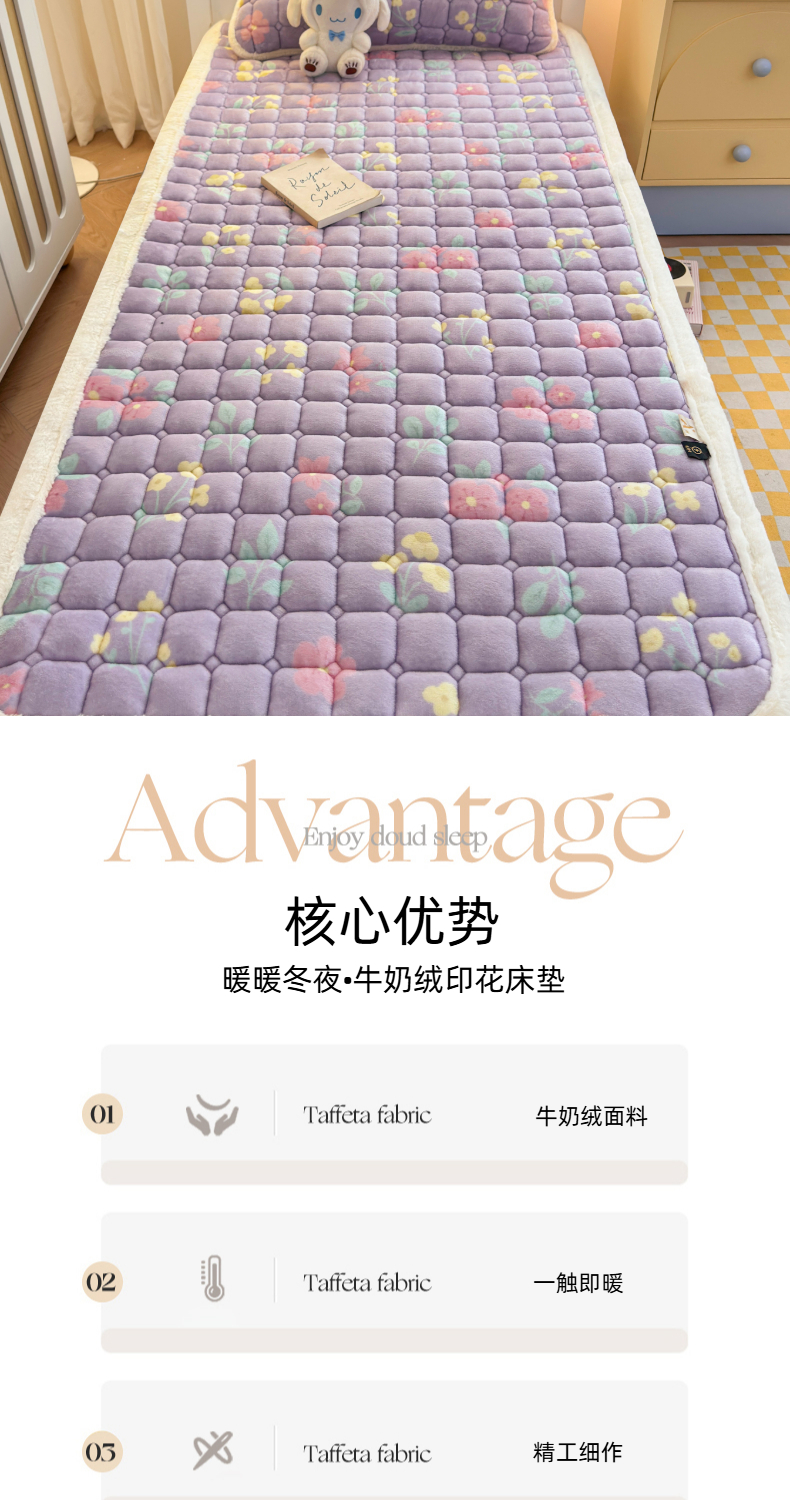 当前位置: 91家纺网 > 商品网购 > 床垫/床褥 > 普通床垫 > 爱屋及屋 2025新款牛奶绒印花床垫-宿舍床 浪漫紫苏