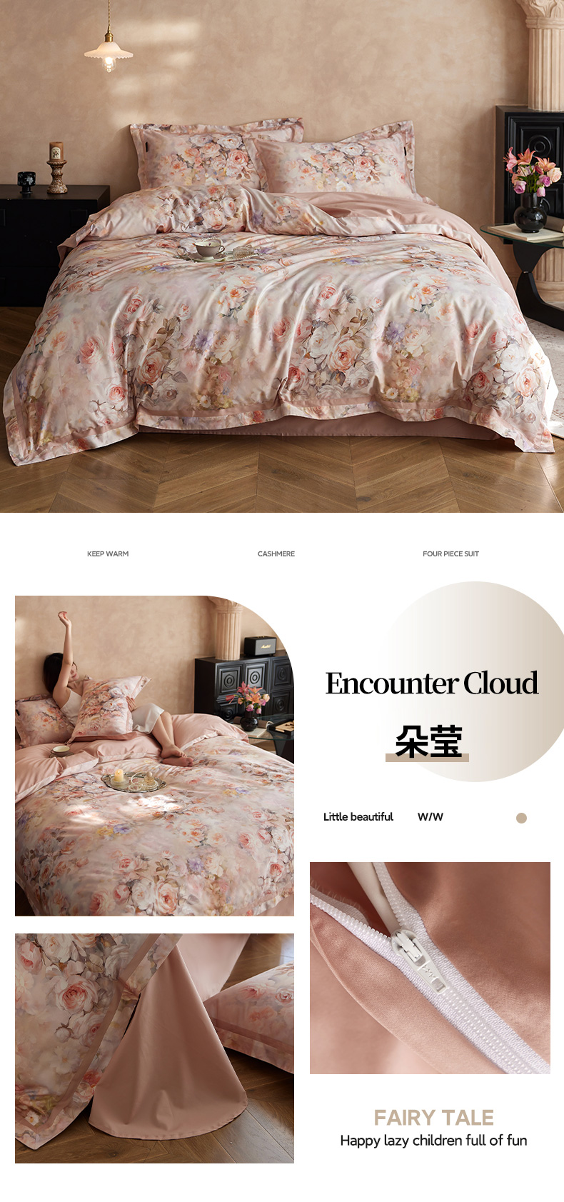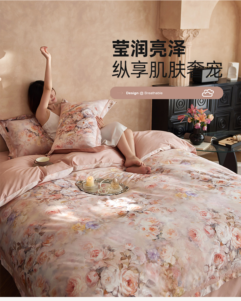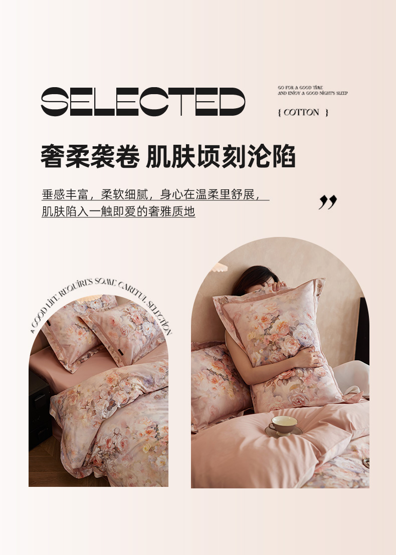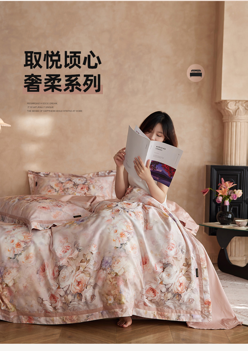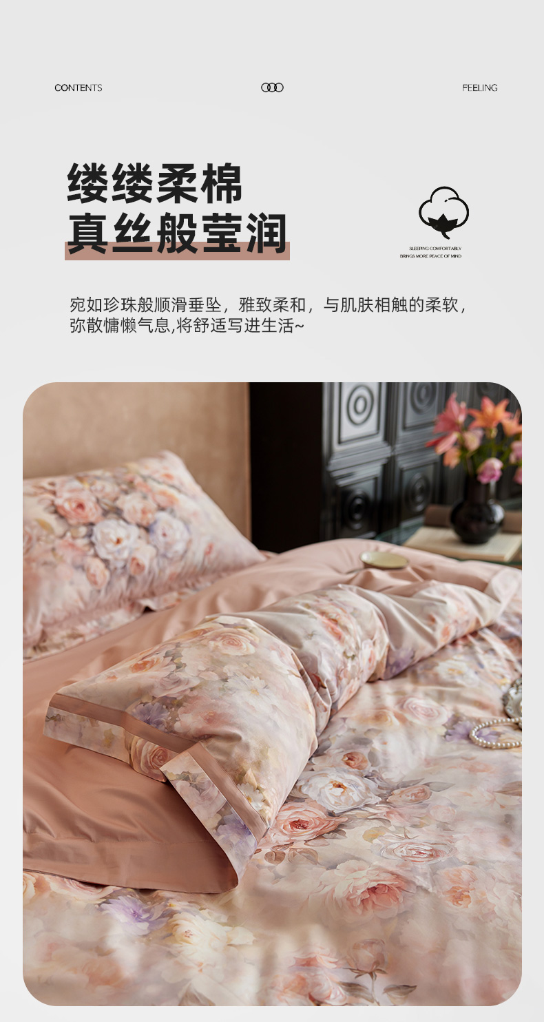 当前位置: 91家纺网 > 商品网购 > 床品套件 > 四件套 > 长绒棉四件套 > 轩和家居 2025新款70SA类轻奢长绒棉纯棉花四件套正品YKK拉链+精品做工 第一组 朵莹