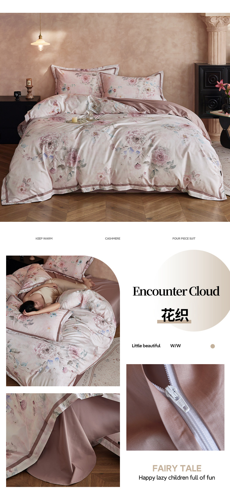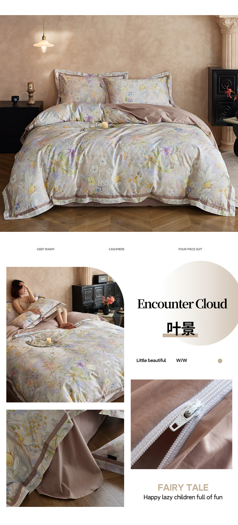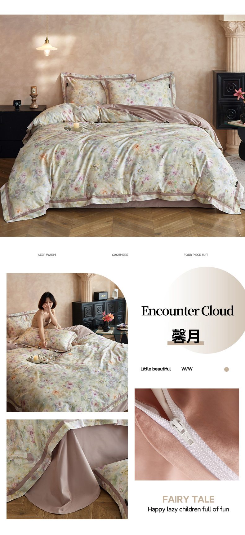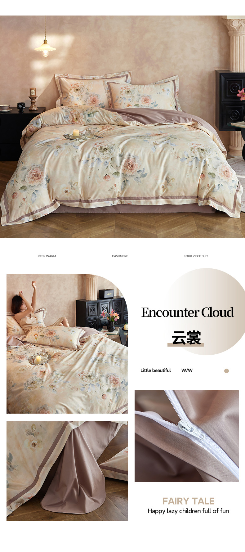 当前位置: 91家纺网 > 商品网购 > 床品套件 > 四件套 > 长绒棉四件套 > 轩和家居 2025新款70SA类轻奢长绒棉纯棉花四件套正品YKK拉链+精品做工 第一组 朵莹