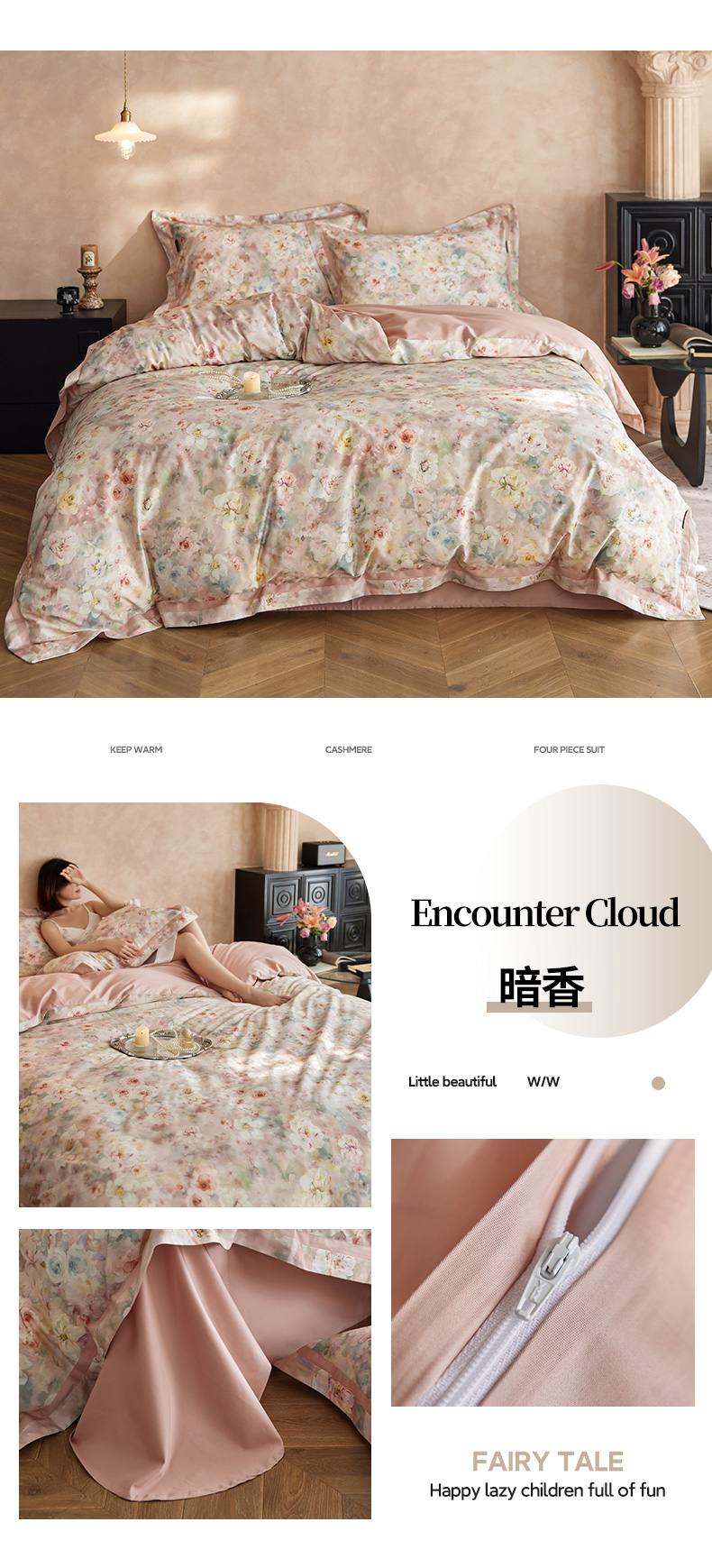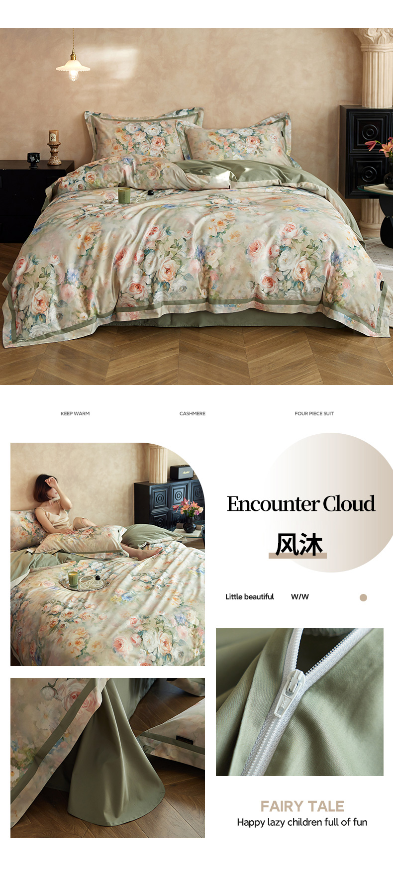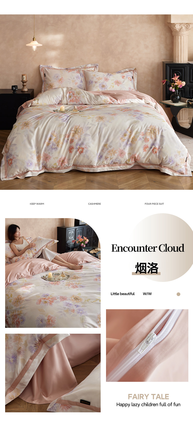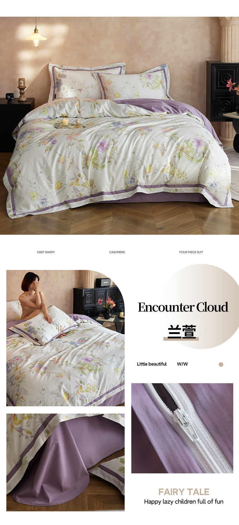 当前位置: 91家纺网 > 商品网购 > 床品套件 > 四件套 > 长绒棉四件套 > 轩和家居 2025新款70SA类轻奢长绒棉纯棉花四件套正品YKK拉链+精品做工 第一组 朵莹