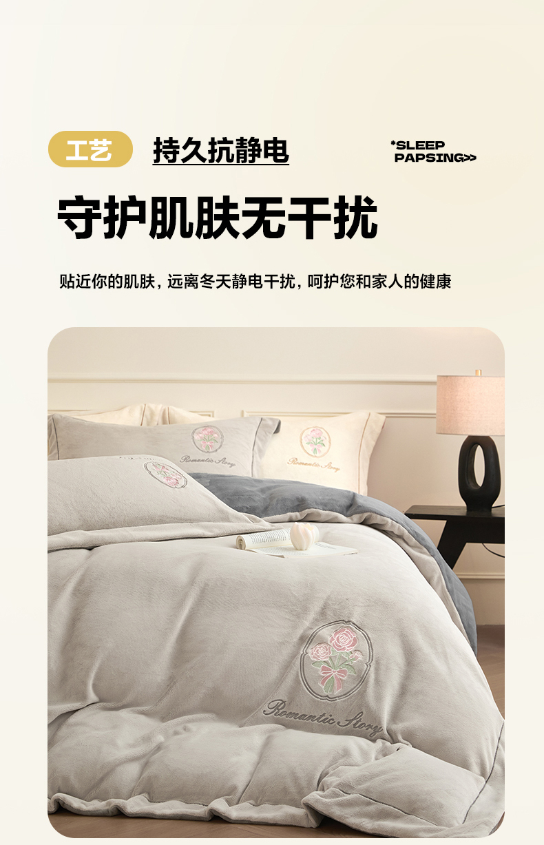 当前位置: 91家纺网 > 商品网购 > 床品套件 > 四件套 > 牛奶绒四件套 > 梦幻之城 2025新款牛奶绒系列四件套-沁雅 沁雅-香草灰+经典灰
