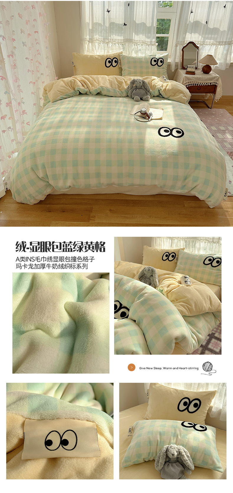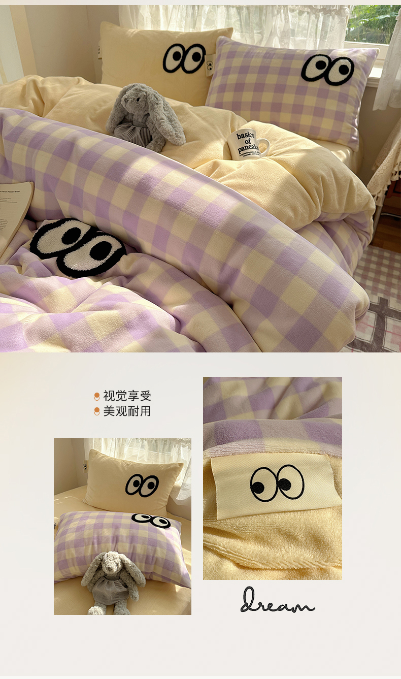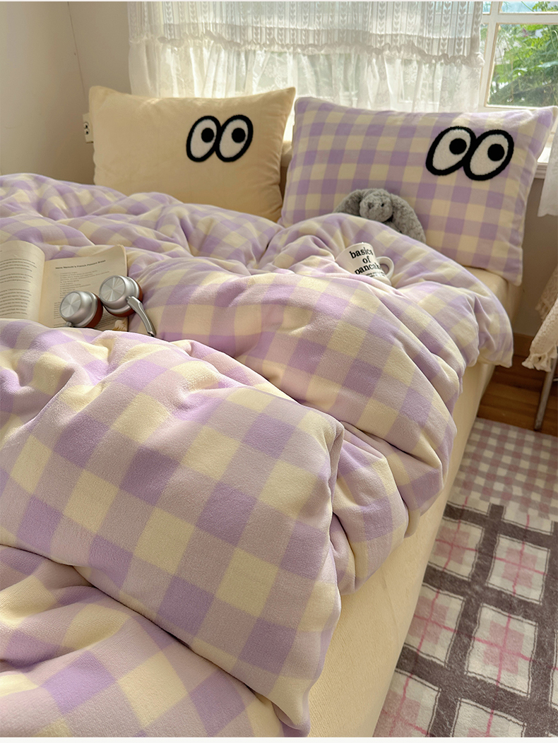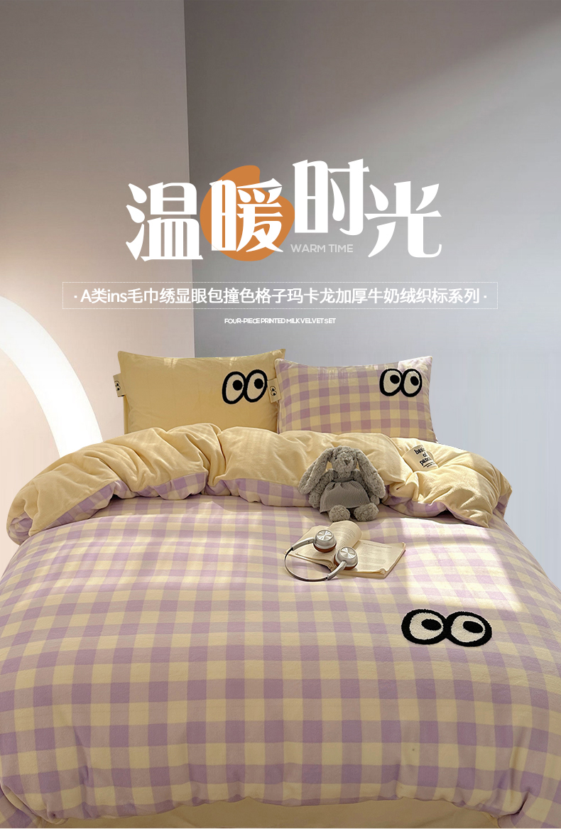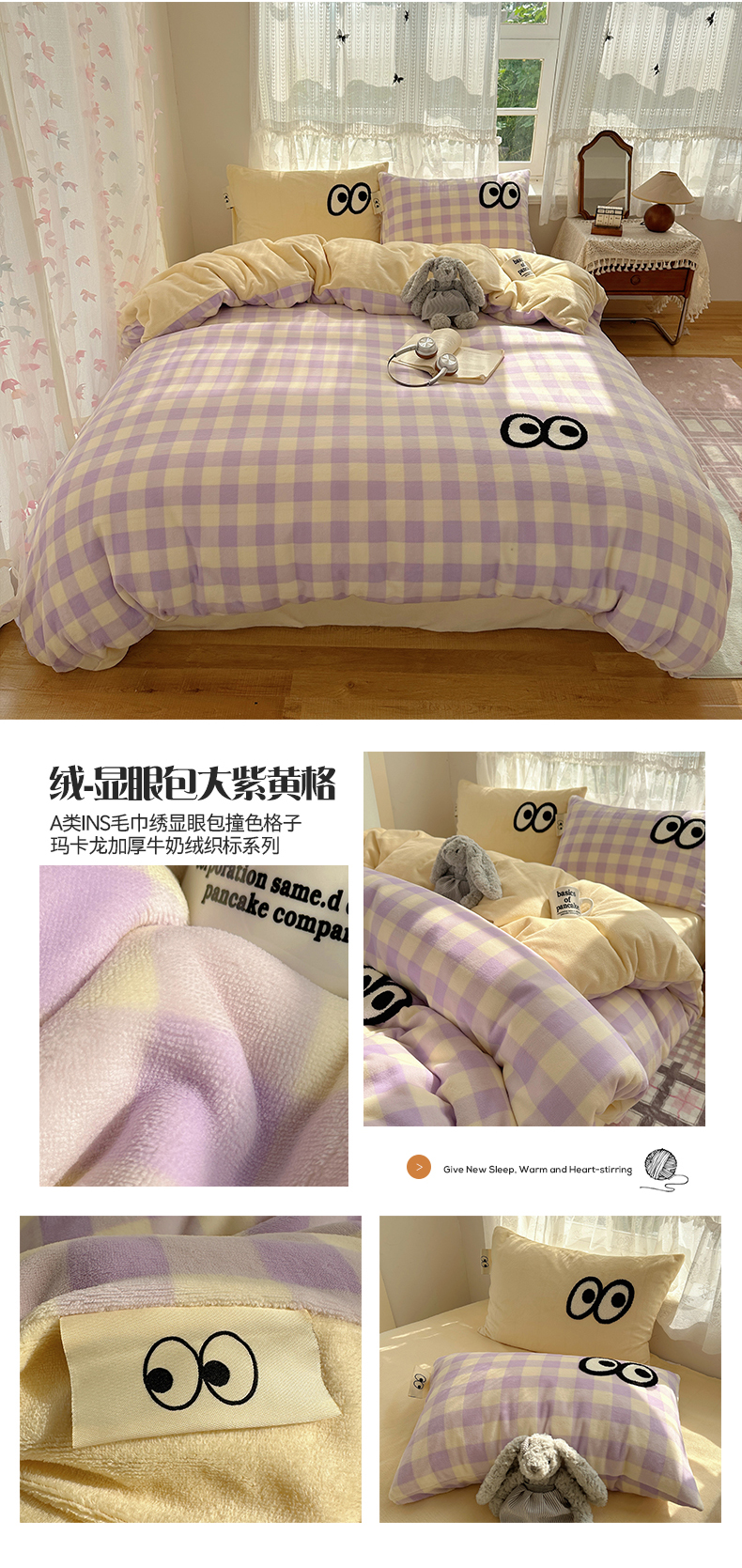 当前位置: 91家纺网 > 商品网购 > 床品套件 > 四件套 > 牛奶绒四件套 > 桃子家居 2025新款A类ins毛巾绣显眼包撞色格子玛卡龙加厚牛奶绒织标四件套-小清新图 绒-显眼包大紫黄格