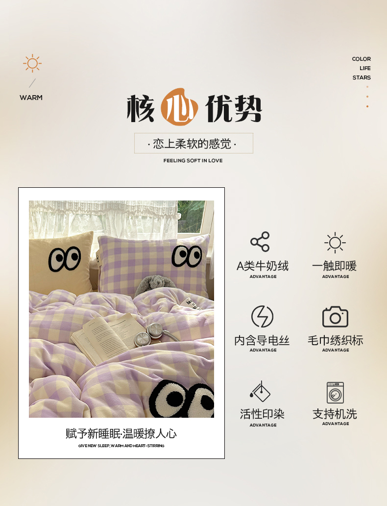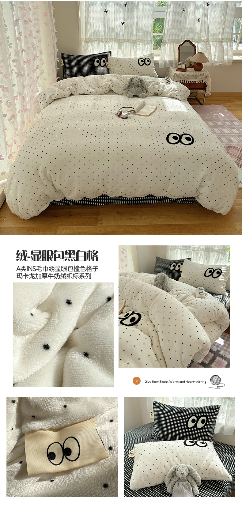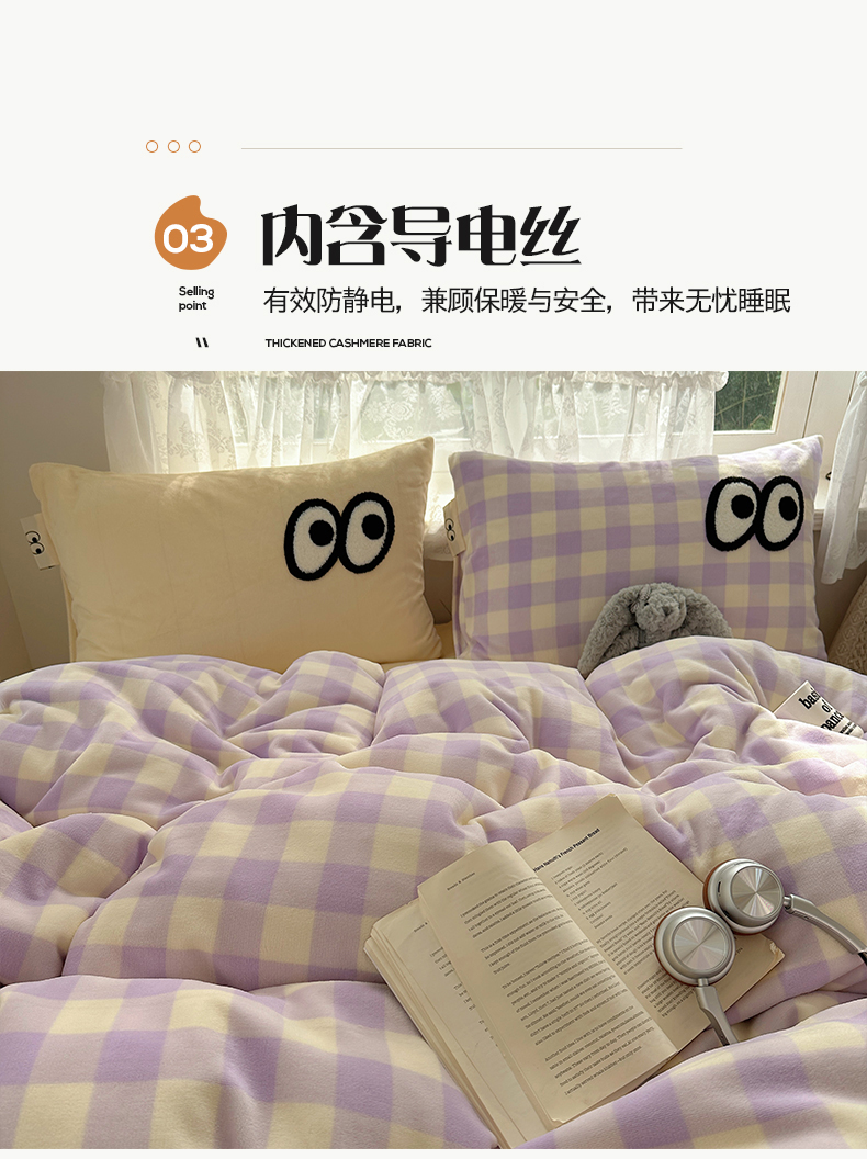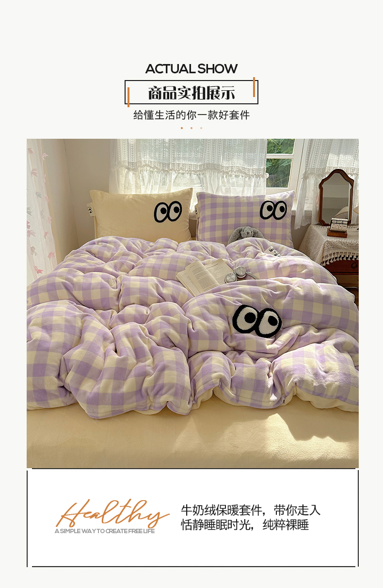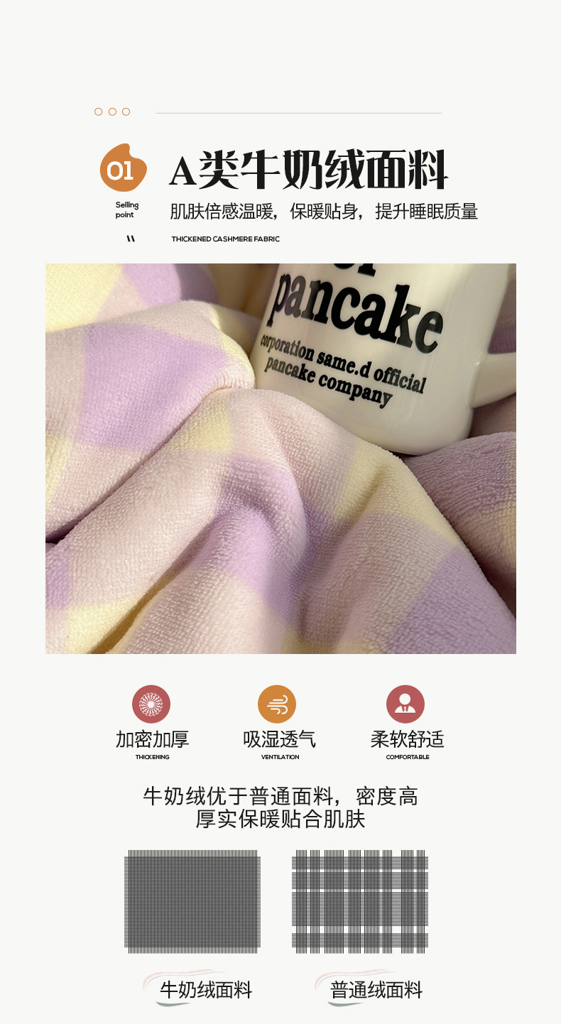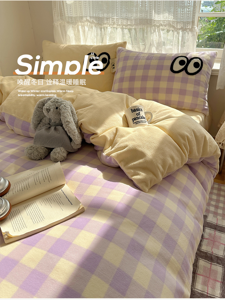 当前位置: 91家纺网 > 商品网购 > 床品套件 > 四件套 > 牛奶绒四件套 > 桃子家居 2025新款A类ins毛巾绣显眼包撞色格子玛卡龙加厚牛奶绒织标四件套-小清新图 绒-显眼包大紫黄格
