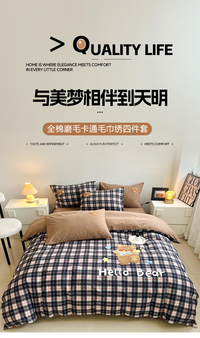 当前位置: 91家纺网 > 商品网购 > 床品套件 > 四件套 > 全棉普通四件套 > 如意朵 2025新款全棉纯棉磨毛绣花四件套-风格一 摘星熊