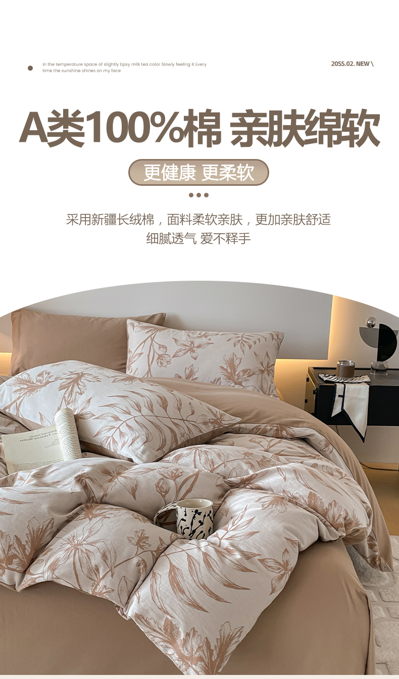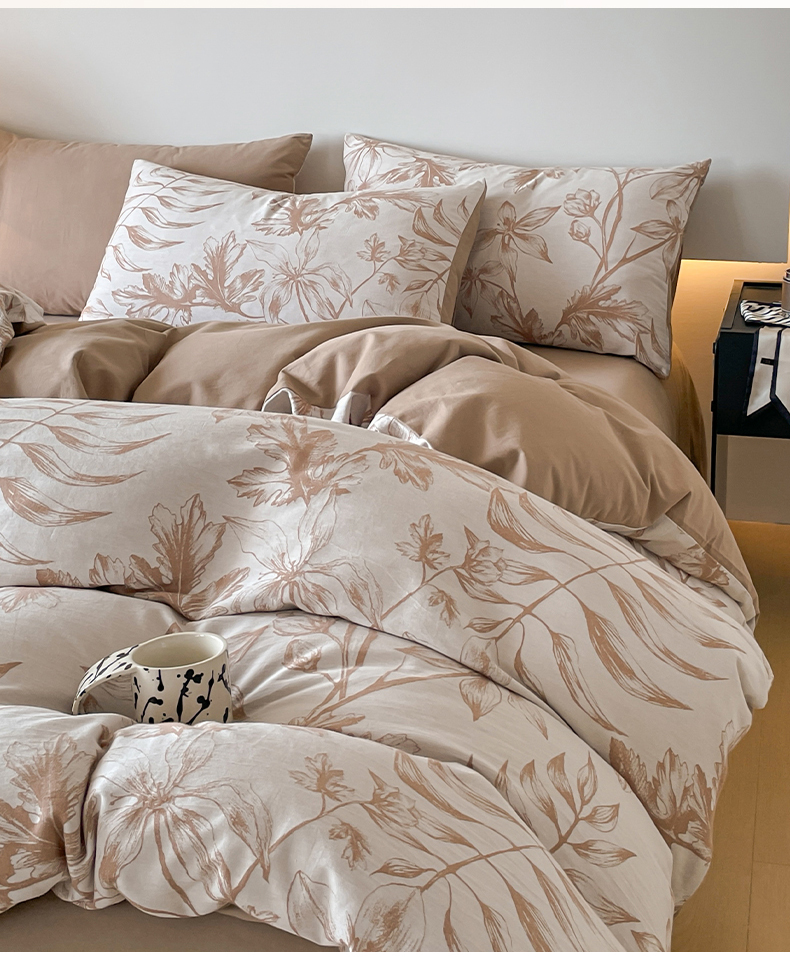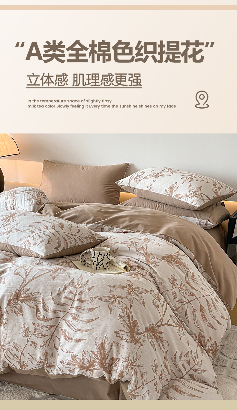 当前位置: 91家纺网 > 商品网购 > 床品套件 > 四件套 > 全棉普通四件套 > 小叮当家纺仓储工厂店 2025新款(买家秀 不断货)A类亲肤全棉纯棉色织大提花磨毛四件套床单床笠-花漾 繁花寄语-咖