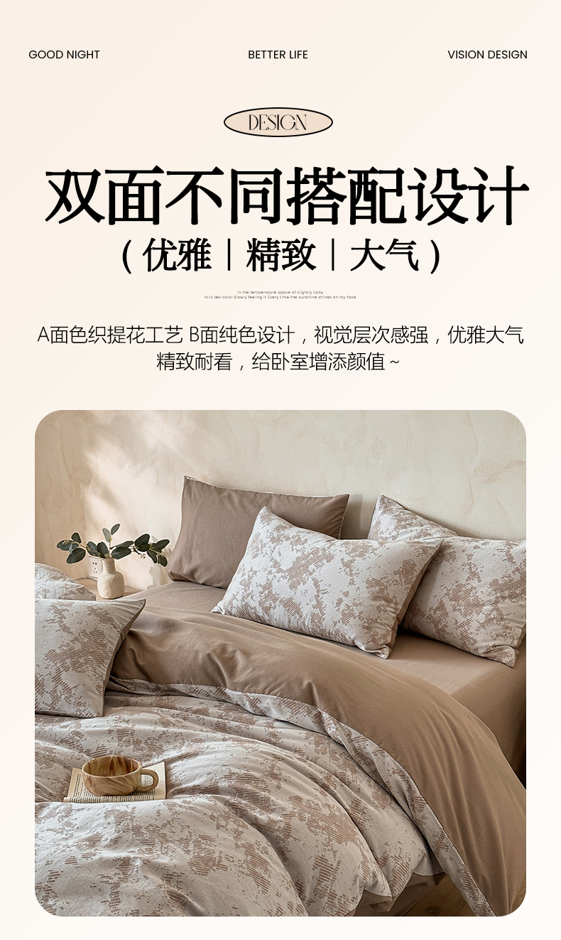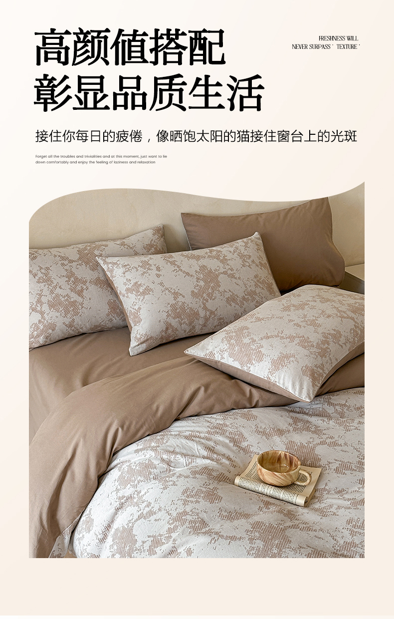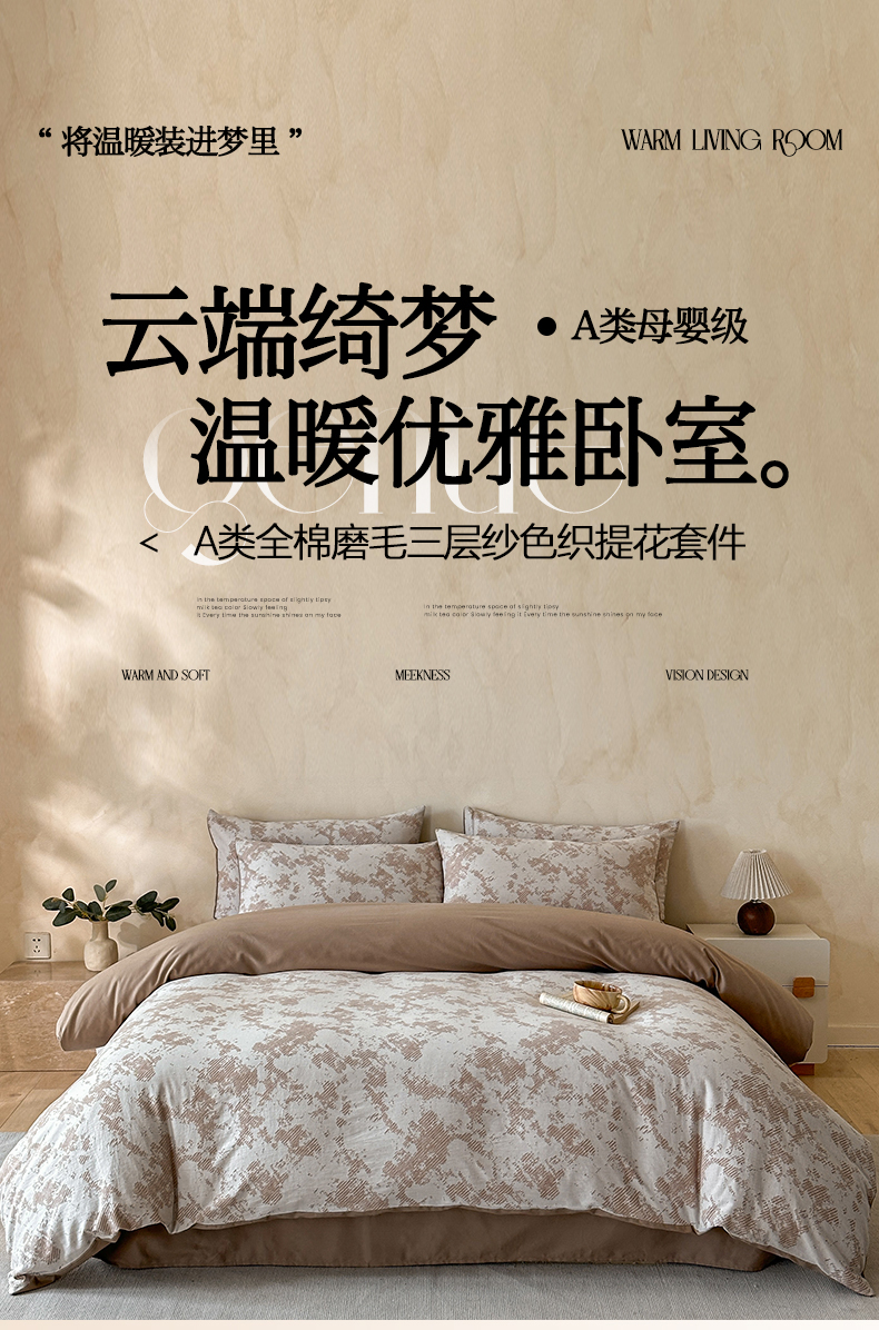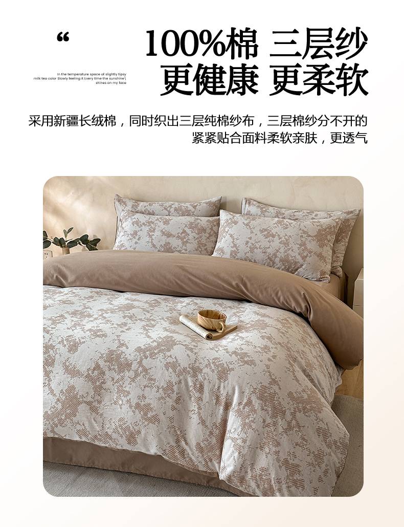 当前位置: 91家纺网 > 商品网购 > 床品套件 > 四件套 > 全棉普通四件套 > 小叮当家纺仓储工厂店 2025新款(买家秀 不断货)亲肤A类母婴级全棉纯棉三层纱色织提花磨毛四件套素影 素影-静谧-咖