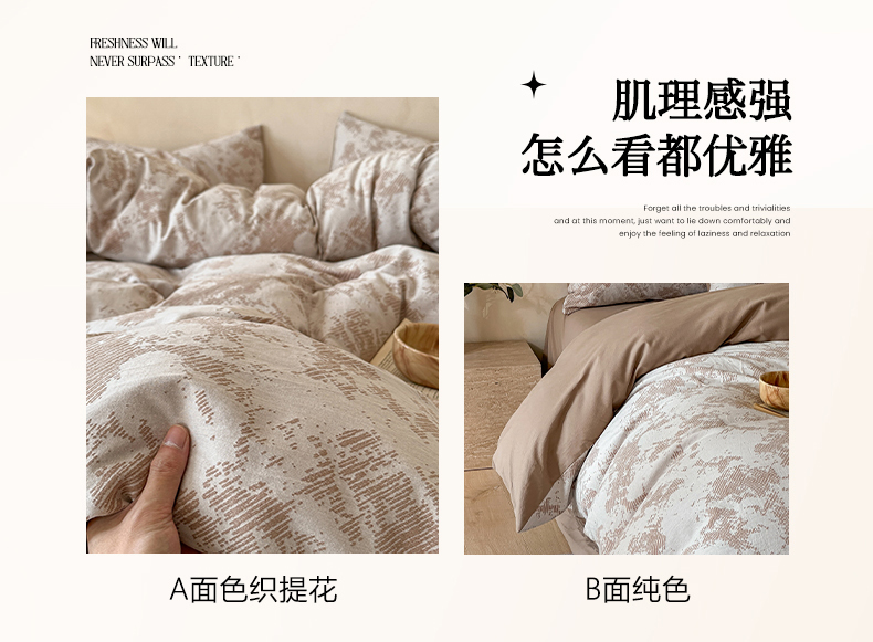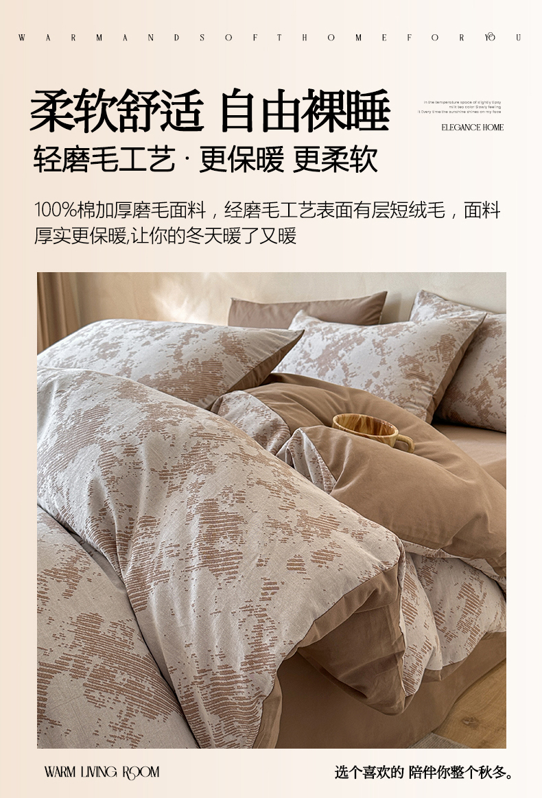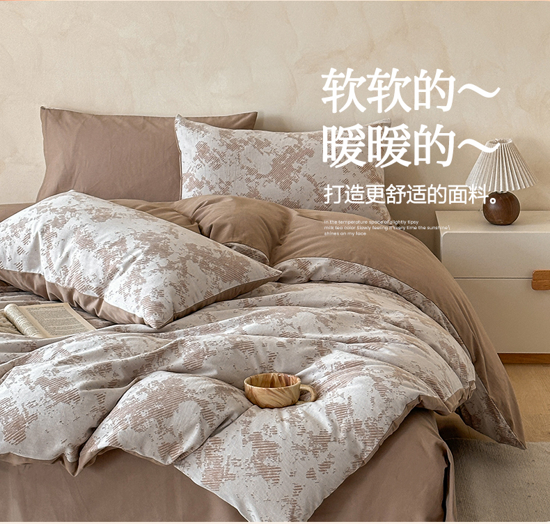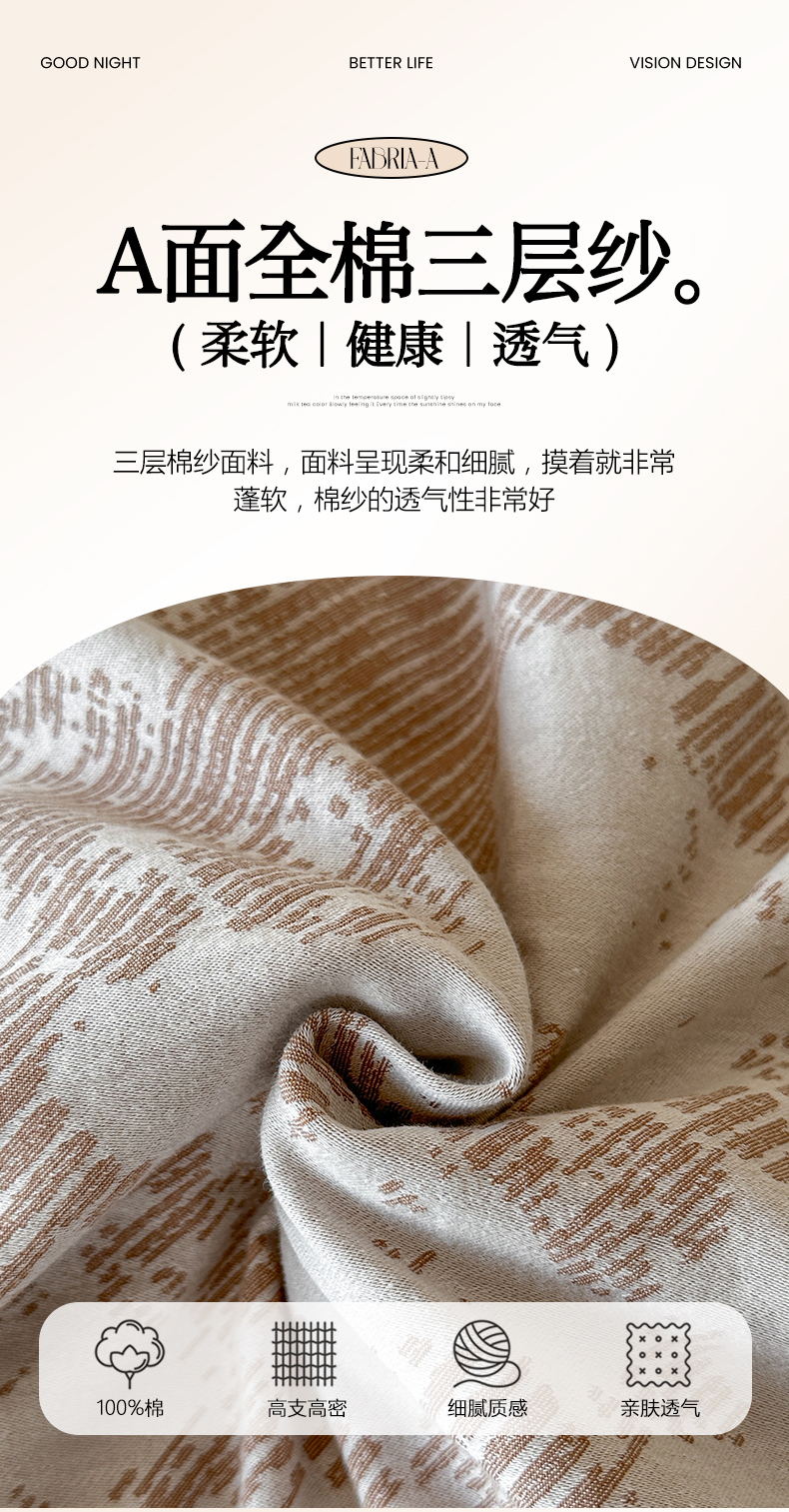 当前位置: 91家纺网 > 商品网购 > 床品套件 > 四件套 > 全棉普通四件套 > 小叮当家纺仓储工厂店 2025新款(买家秀 不断货)亲肤A类母婴级全棉纯棉三层纱色织提花磨毛四件套素影 素影-静谧-咖