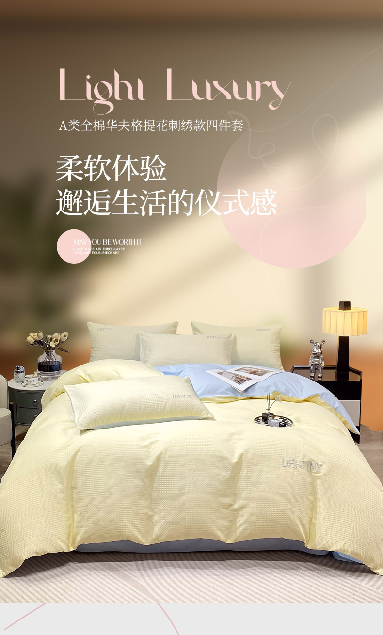 (总)小叮当家纺仓储工厂店 2025新款秋冬(热买家秀不断货)A类母婴级亲肤全棉纯棉华夫格提花纯棉刺绣四件套