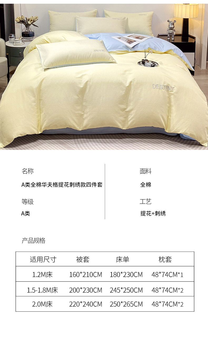 商品名称:(总)小叮当家纺仓储工厂店 2025新款秋冬(热买家秀不断货)A类母婴级亲肤全棉纯棉华夫格提花纯棉刺绣四件套