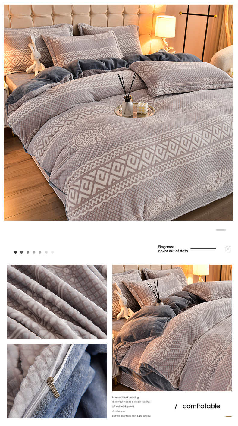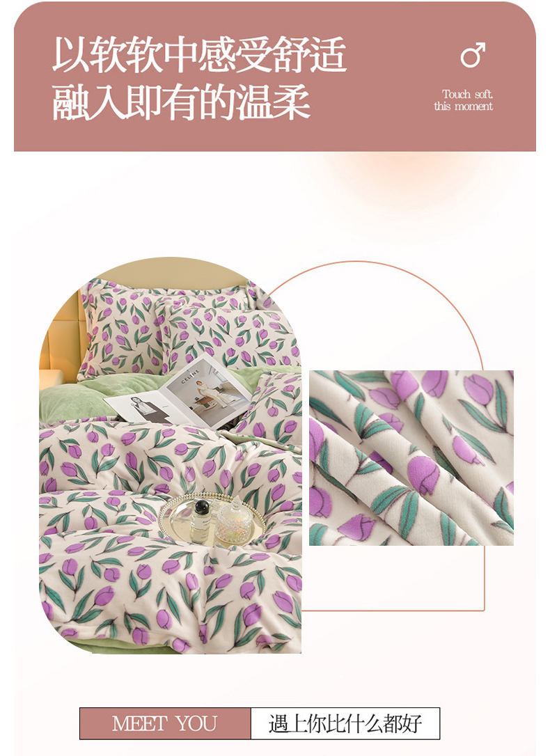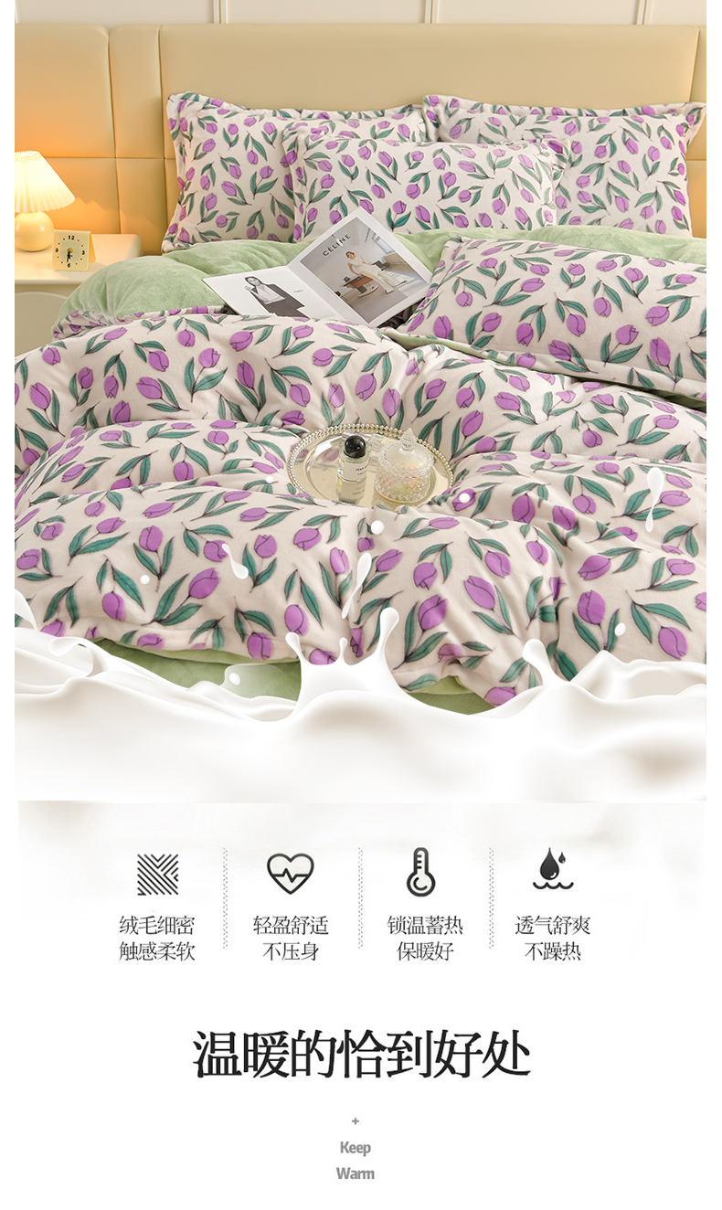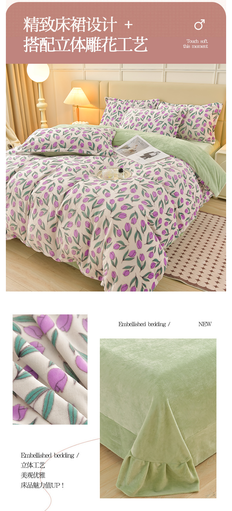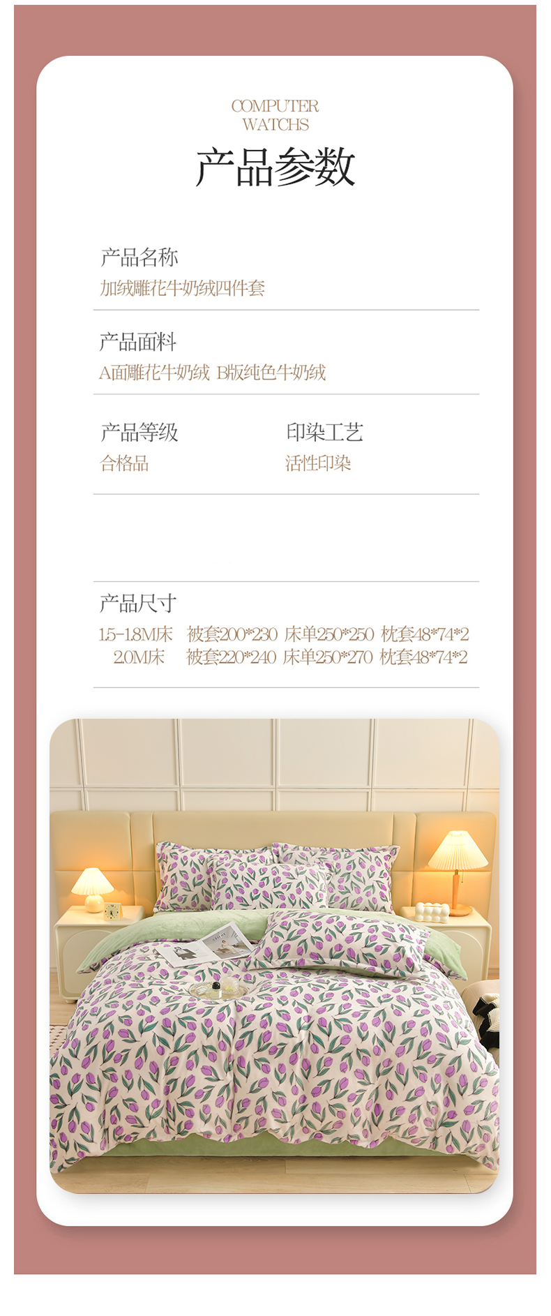 商品名称:畅畅家纺 2025新款亲肤舒适冬季保暖8斤重牛奶绒6D雕花绒床单四件套 郁金香
