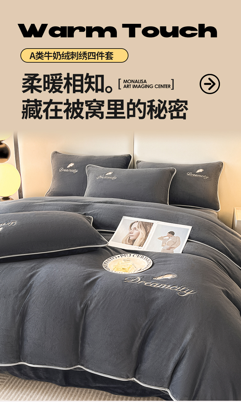 当前位置: 91家纺网 > 商品网购 > 床品套件 > 四件套 > 牛奶绒四件套 > 梦幻之城 2025新款牛奶绒刺绣款四件套-寐羽C款 寐羽-绅士灰