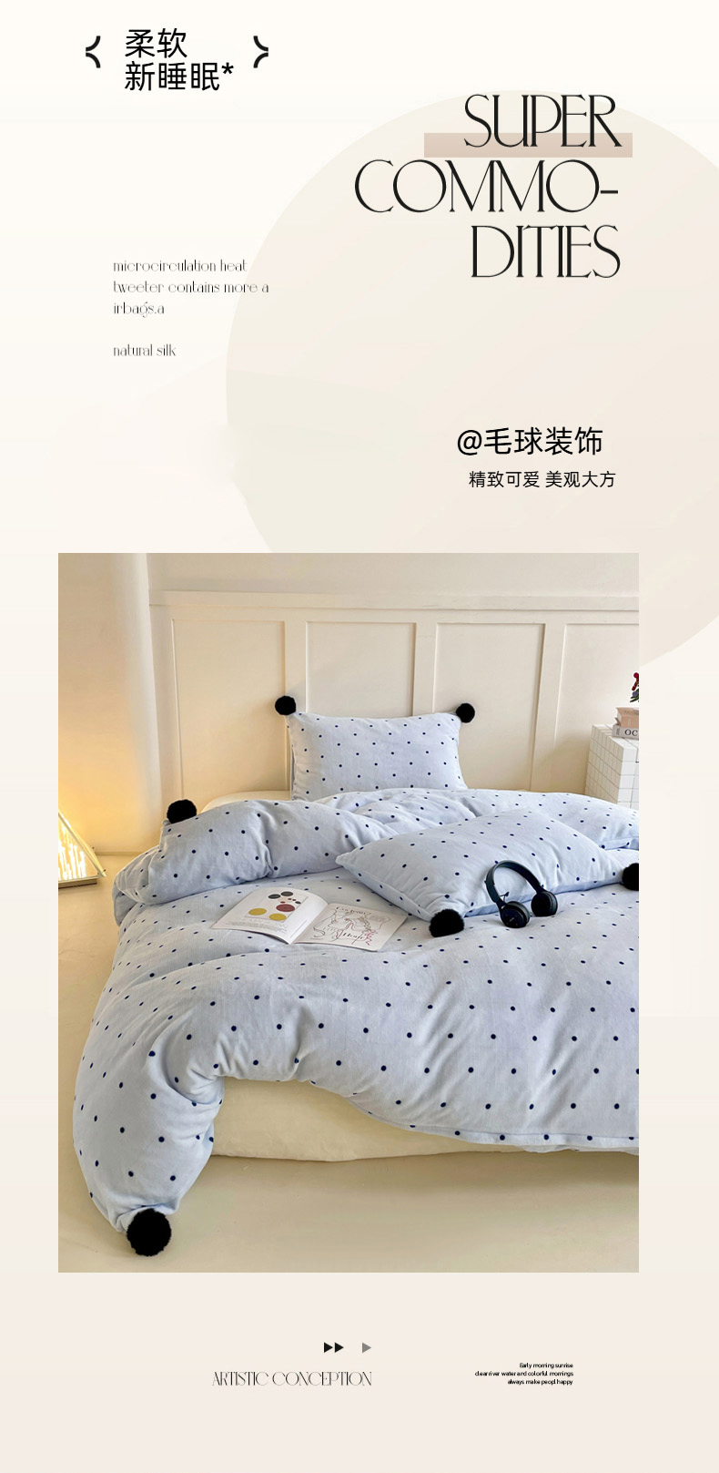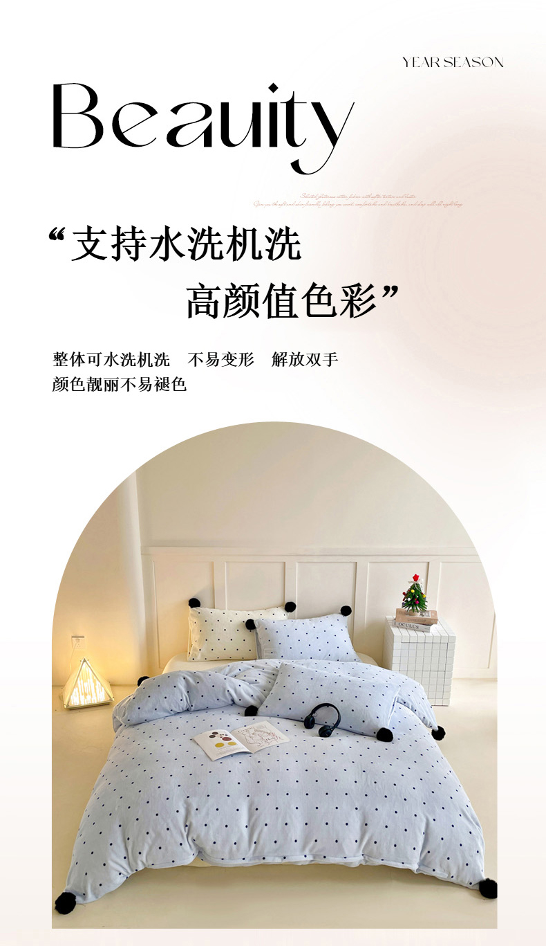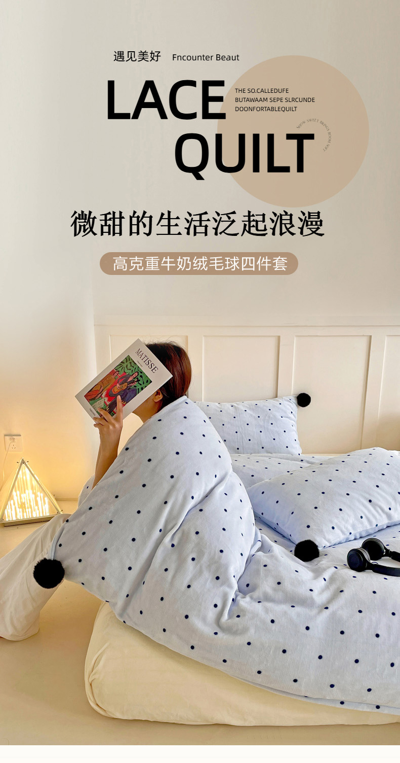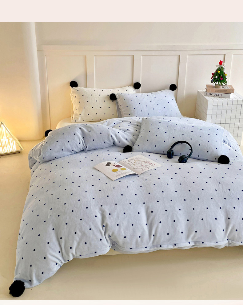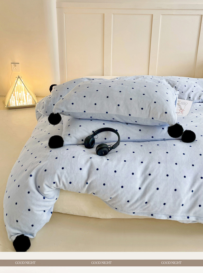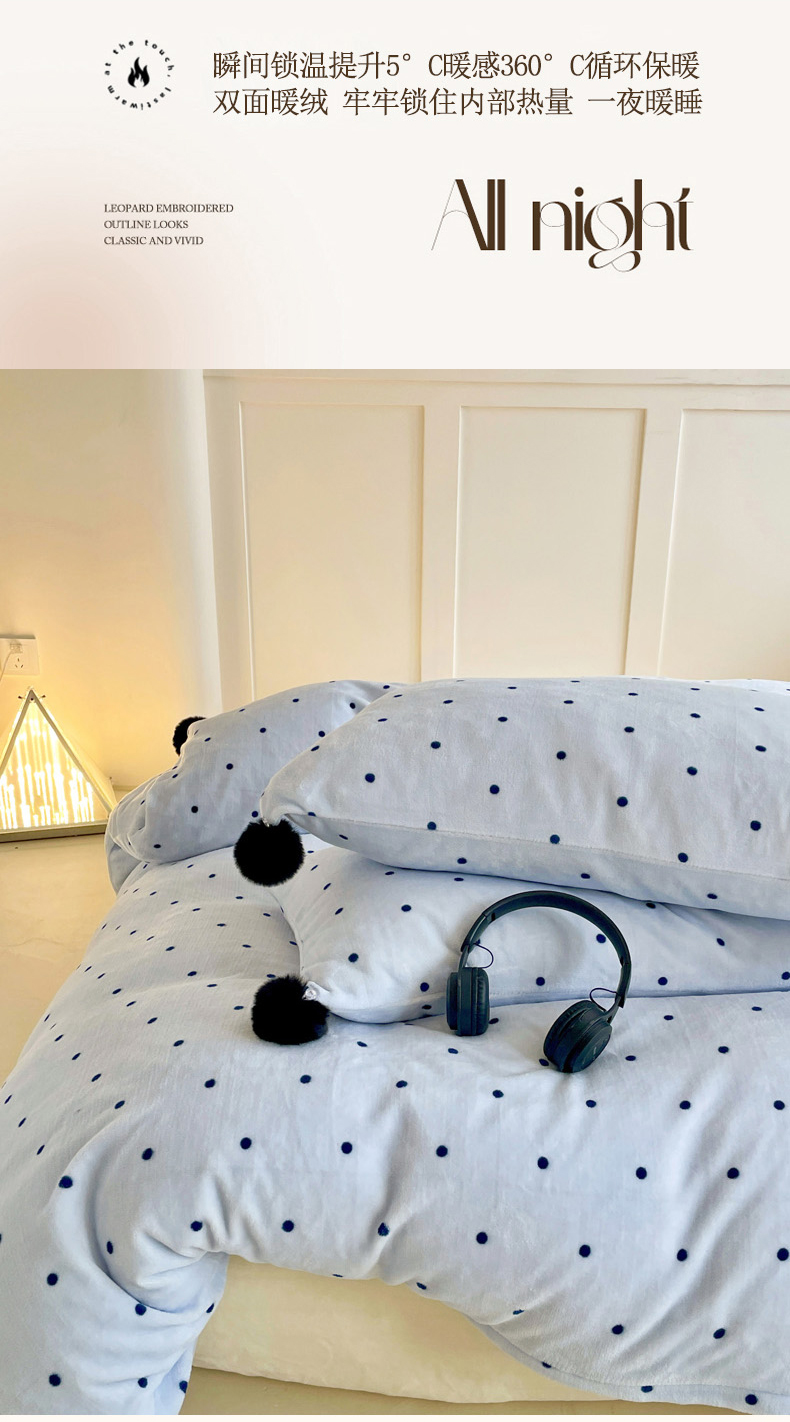 当前位置: 91家纺网 > 商品网购 > 床品套件 > 四件套 > 牛奶绒四件套 > 丽涵家纺 2025秋冬新品混搭波点牛奶绒四件套-拍摄风格一 波点-蓝色