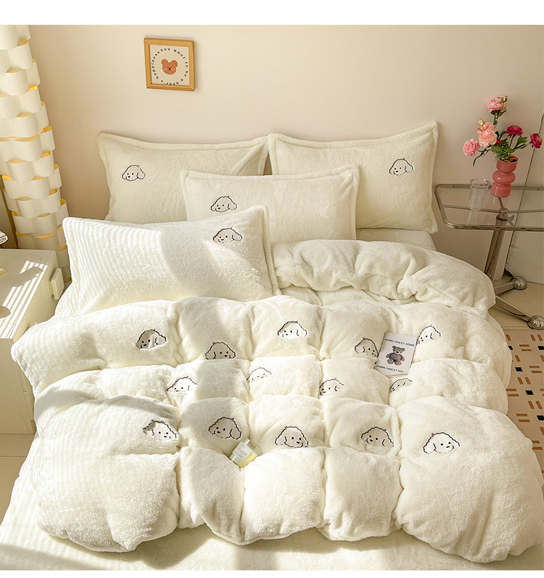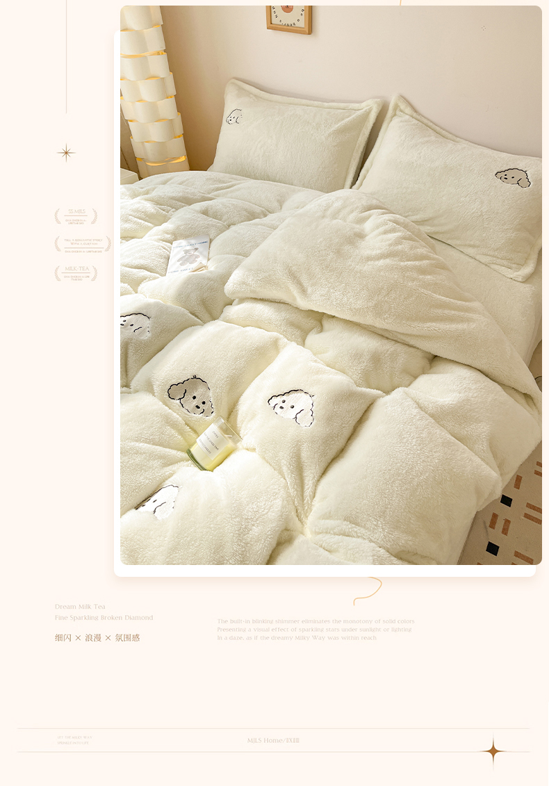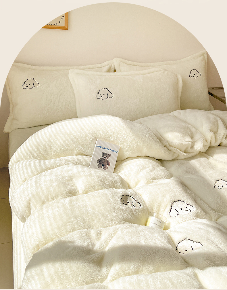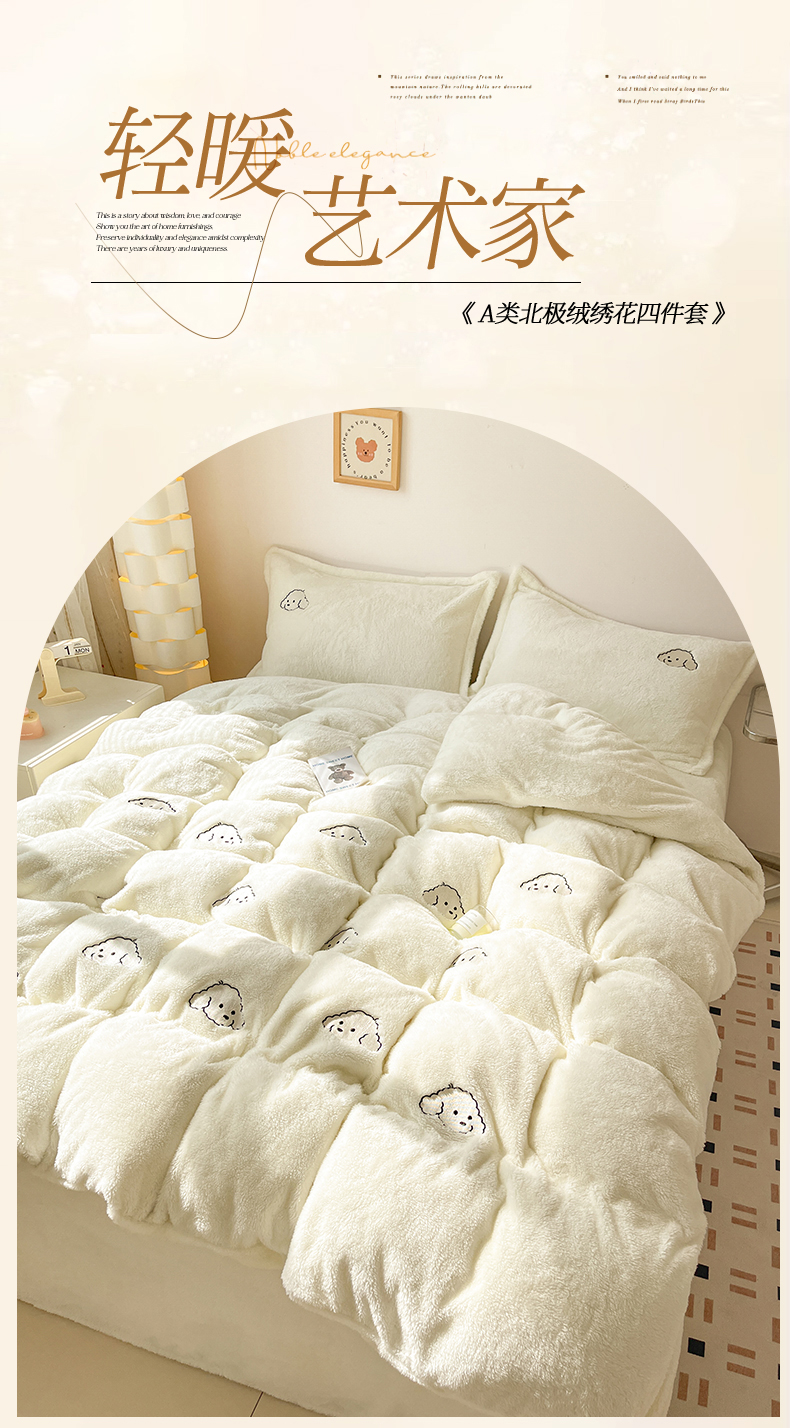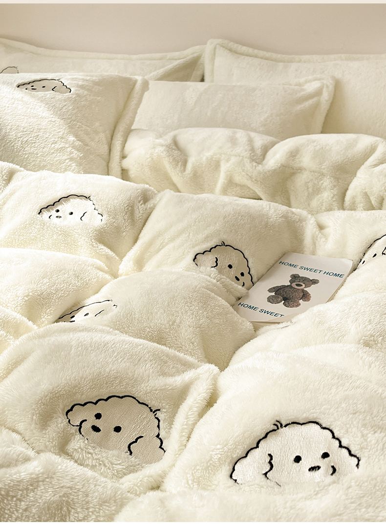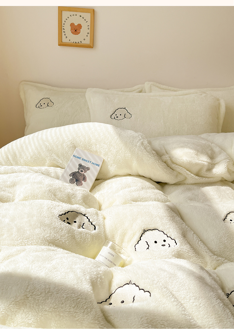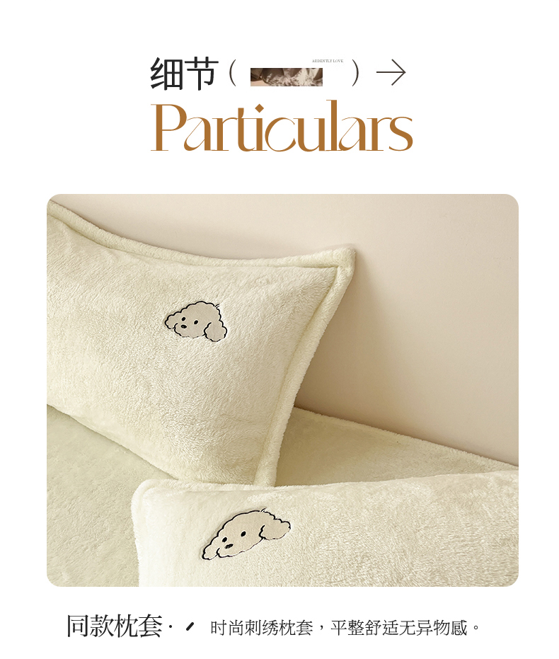 当前位置: 91家纺网 > 商品网购 > 床品套件 > 四件套 > 牛奶绒四件套 > 梦幻之城 2025新款北极绒绣花系列四件套-萌宠 萌宠-奶白