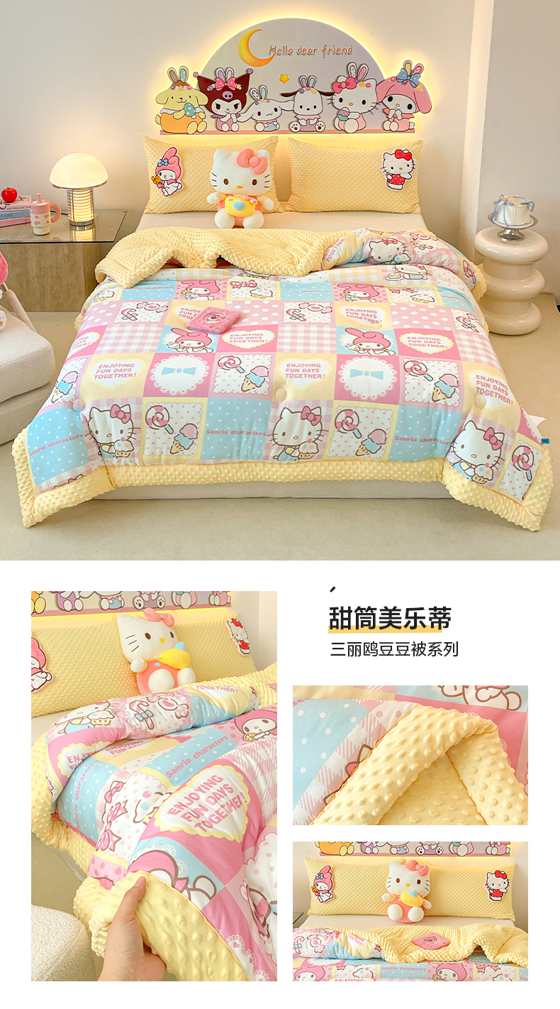 (总)花满路 2024新款儿童三丽鸥系列秋冬豆豆被冬被春秋被被子被芯,糖果大桂狗,库洛米,kitty公主,点点玉桂狗,卡帕狗伙伴,可爱库洛米,酷仔卡帕狗,莓莓美乐蒂,泡泡大眼蛙,甜筒美乐蒂,甜心KT,温暖布丁狗,樱桃大耳狗,元气库洛米,kt猫,玉桂狗