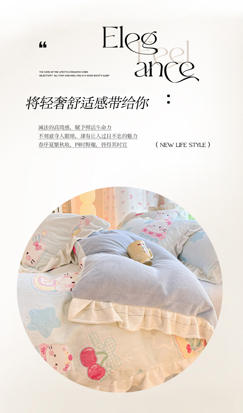 慕澄家居 2025新款花边款牛奶绒印花四件套 花边款-蛋糕猫咪