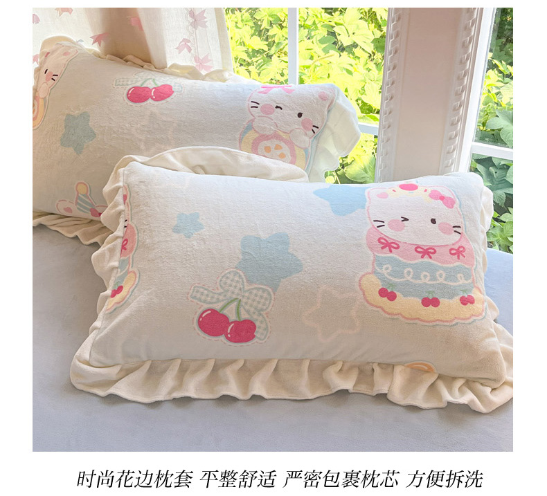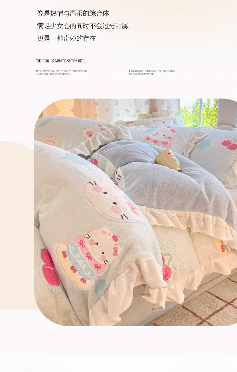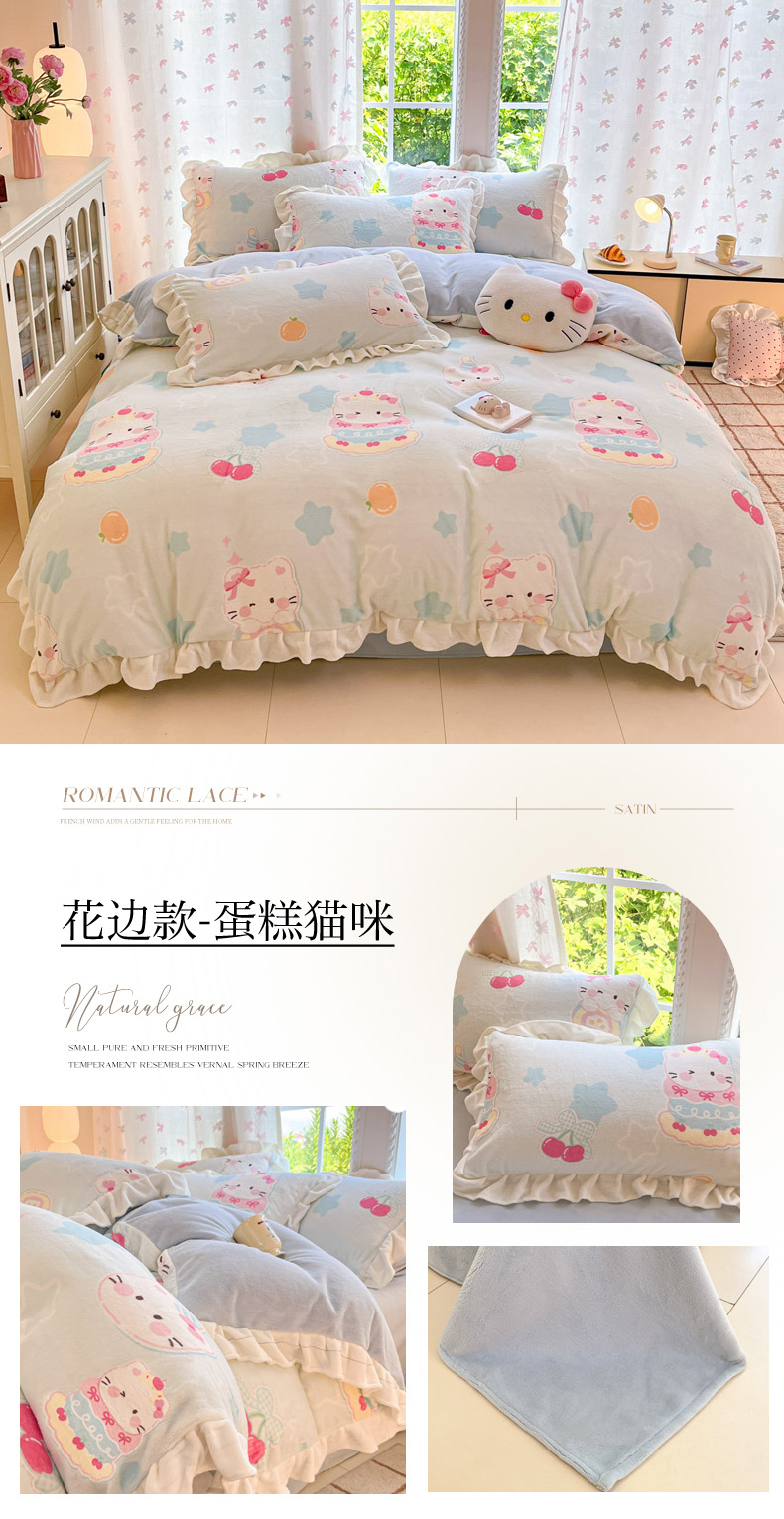 商品名称:慕澄家居 2025新款花边款牛奶绒印花四件套 花边款-蛋糕猫咪