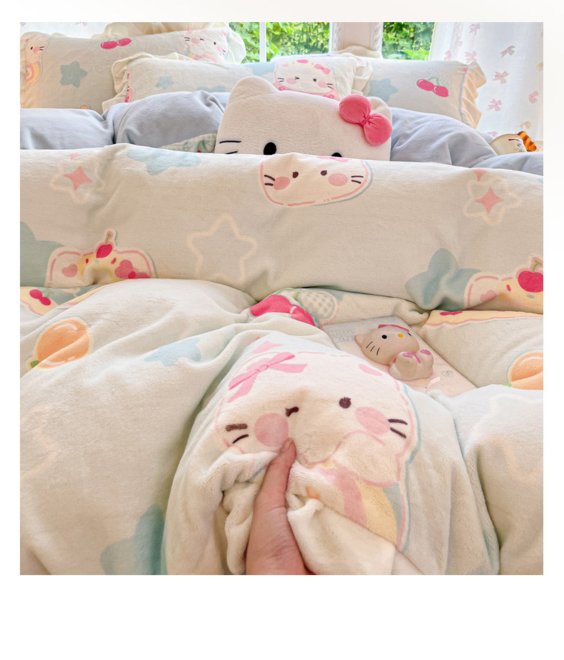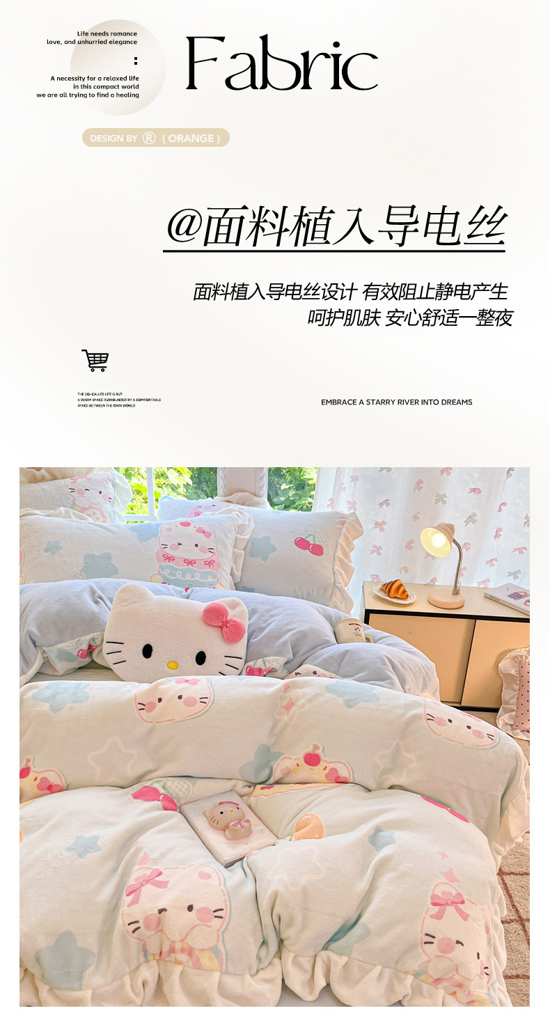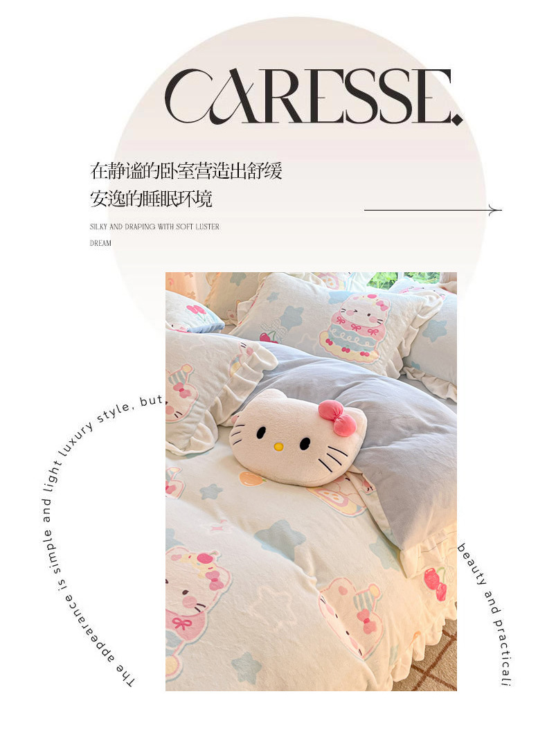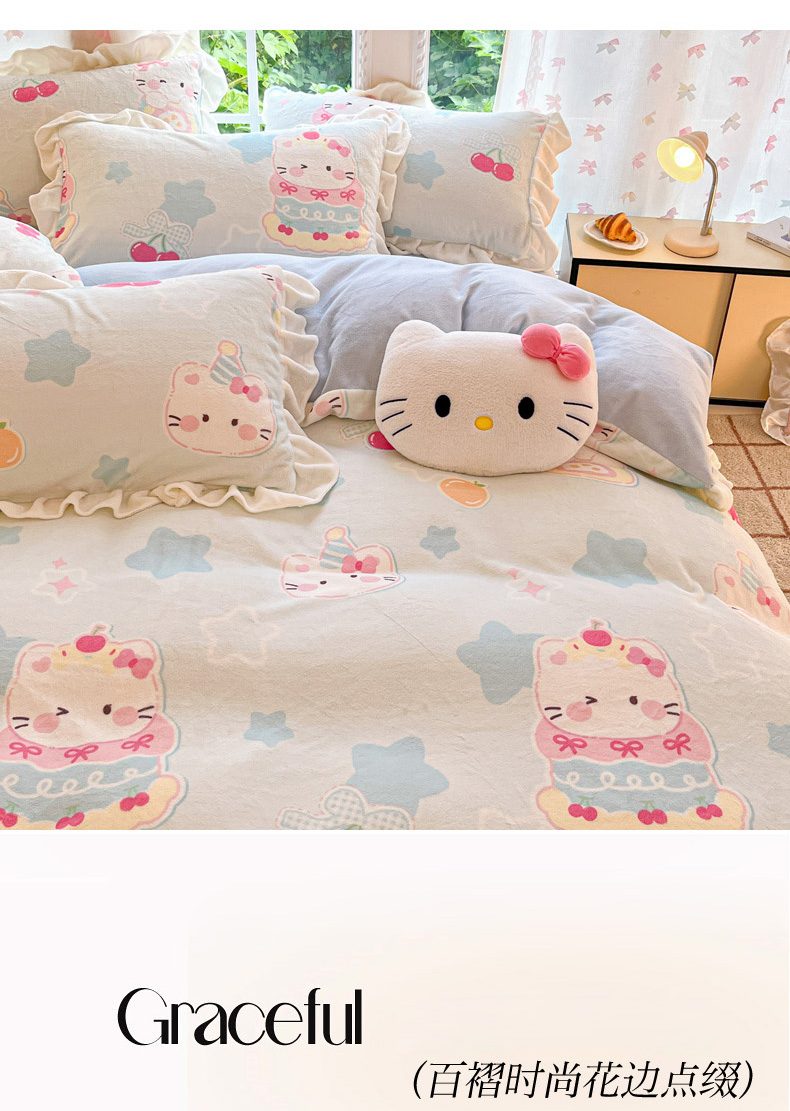 商品名称:慕澄家居 2025新款花边款牛奶绒印花四件套 花边款-蛋糕猫咪