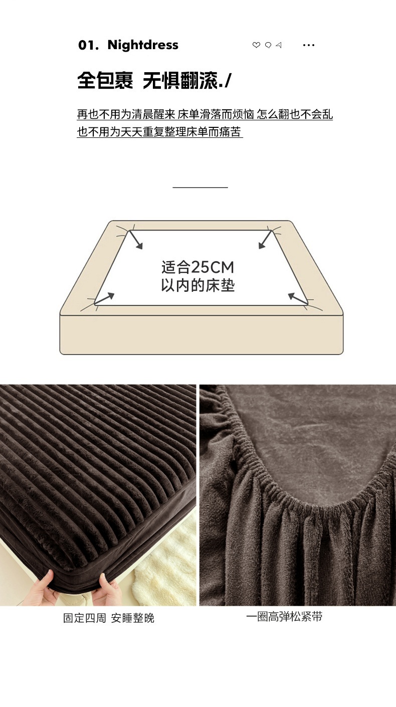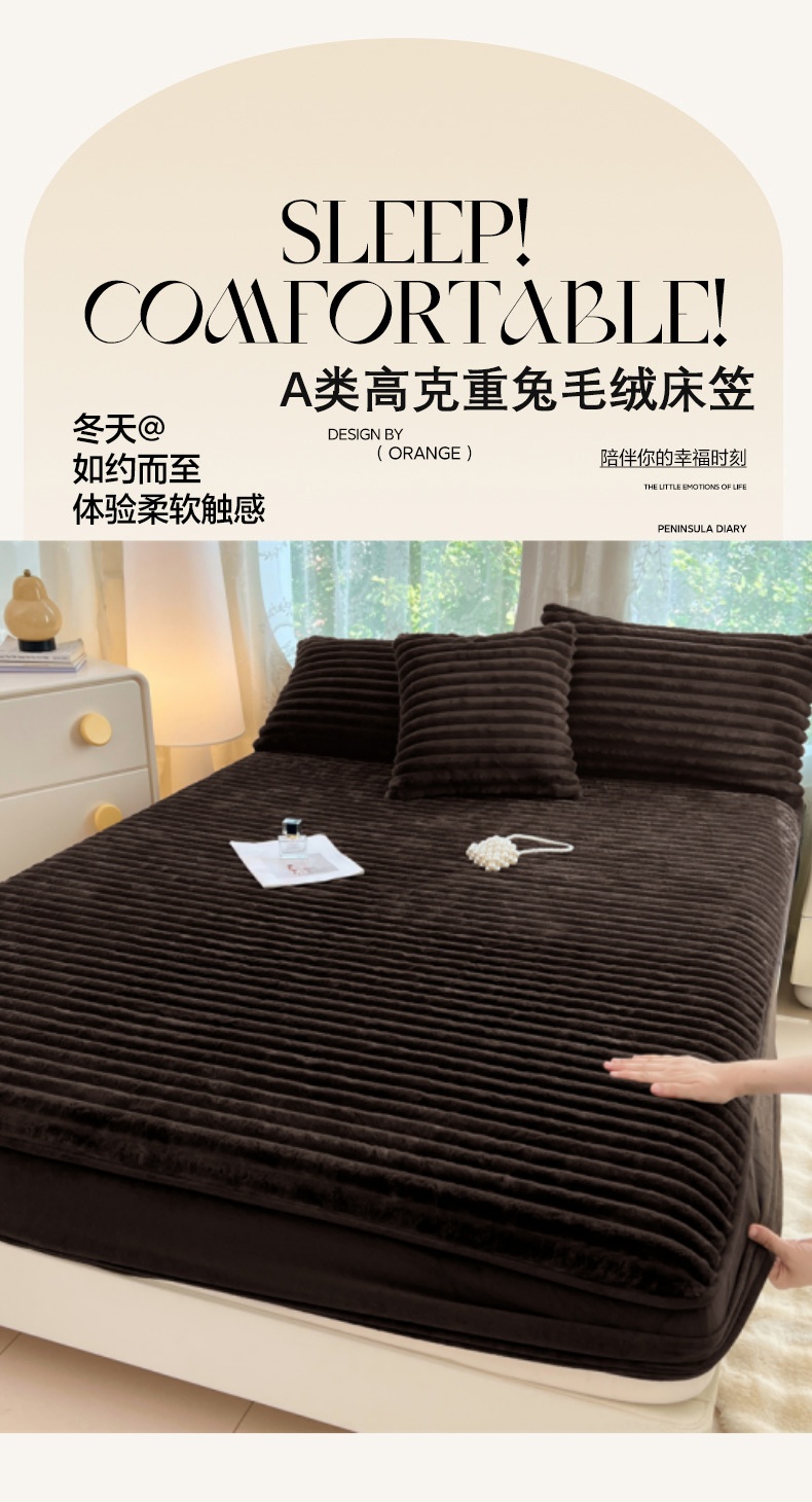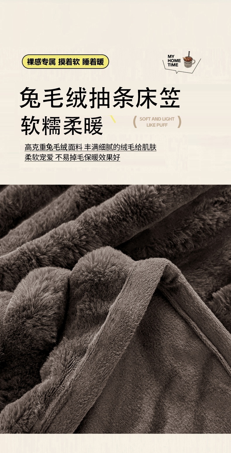• 91家纺网 家纺一手货源 找家纺 梦舒羽 2025新款兔毛绒床笠床垫法兰绒保护套牛奶绒席梦思法莱绒床垫套-抽条 兔毛绒抽条-咖啡色