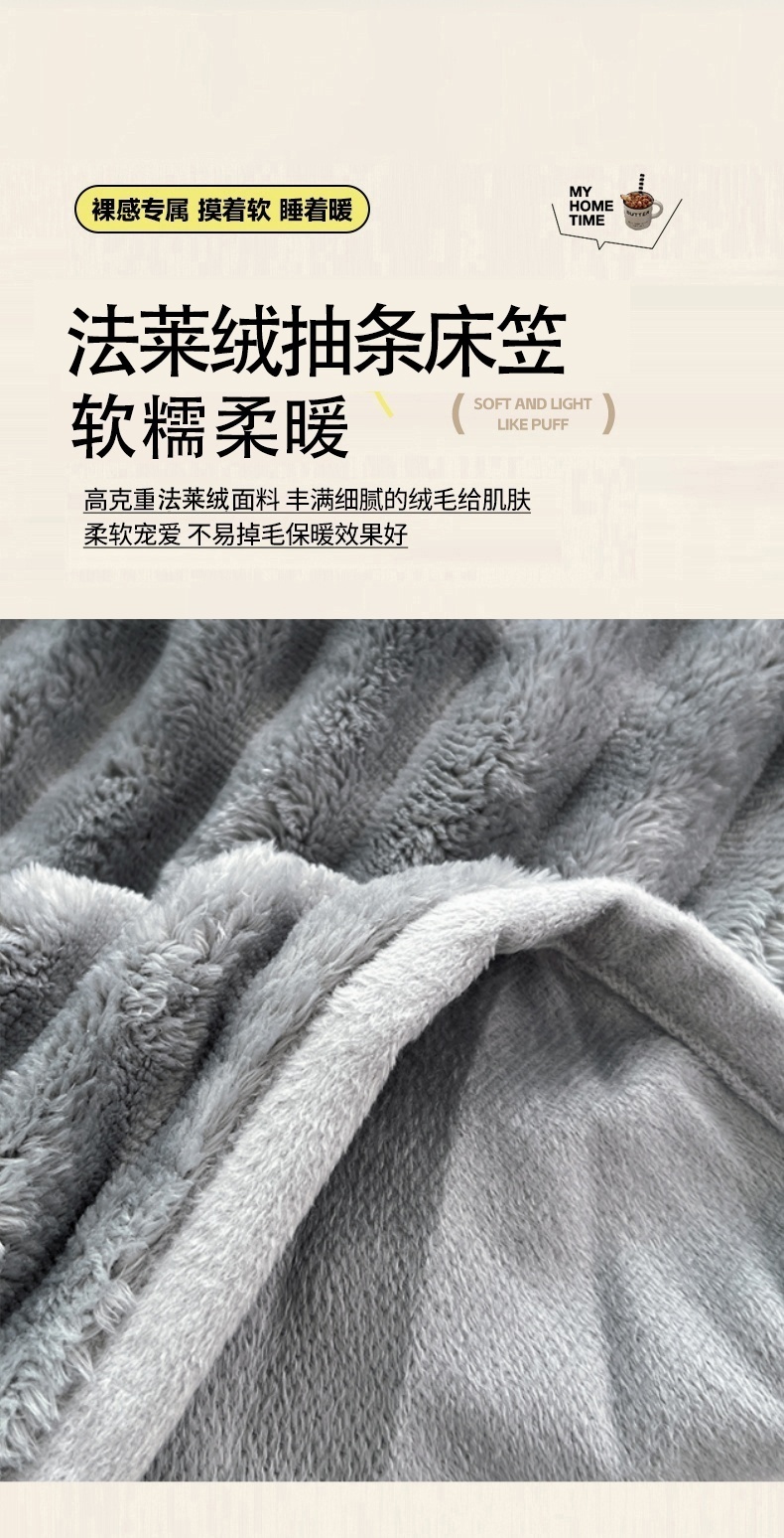 • 91家纺网 家纺一手货源 找家纺 圣比熊 2025新款法莱绒床笠法兰绒床垫保护套牛奶绒兔毛绒席梦思床垫套-抽条 法莱绒抽条-烟雨灰