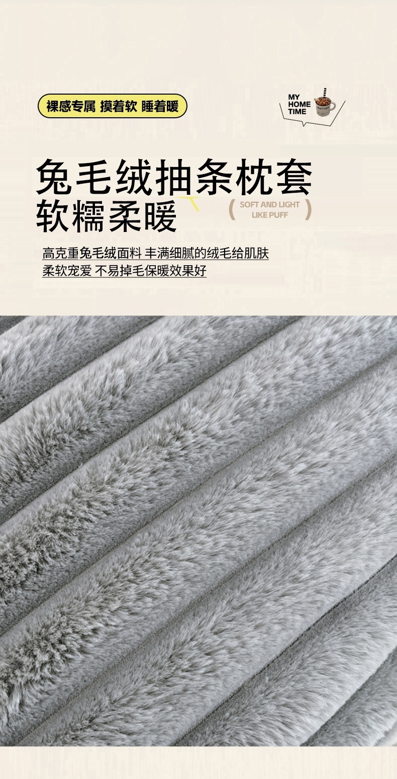 • 91家纺网 家纺一手货源 找家纺 圣比熊 2025新款兔毛绒双人枕套牛奶绒加长法兰绒枕芯套法莱绒枕头套-抽条 兔毛绒抽条-烟雨灰