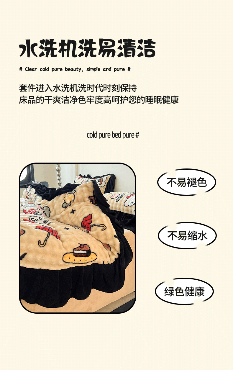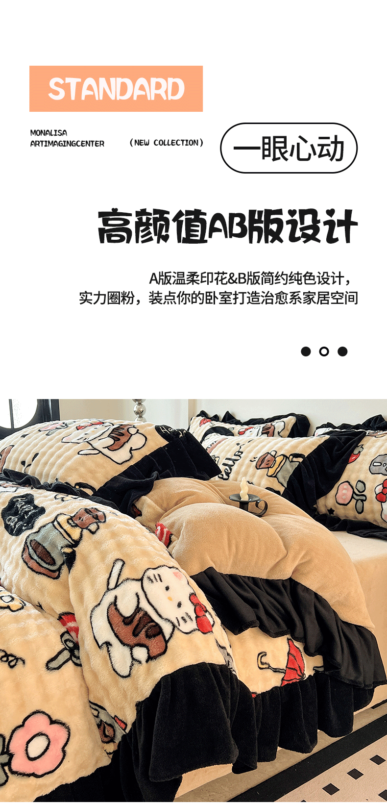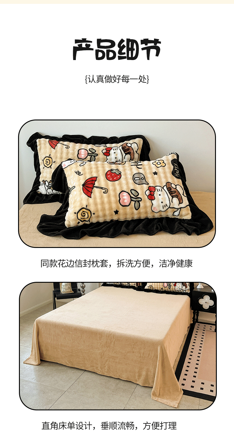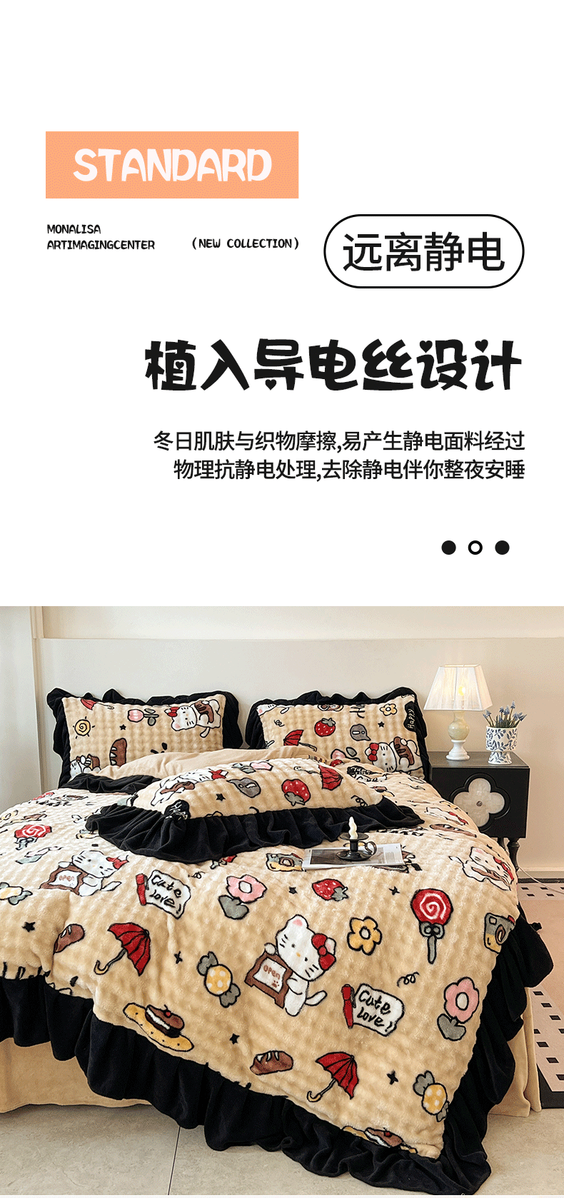 商品名称:言熙居家纺 2025新款A类兔毛绒韩版卡通花边四件套 休闲一刻