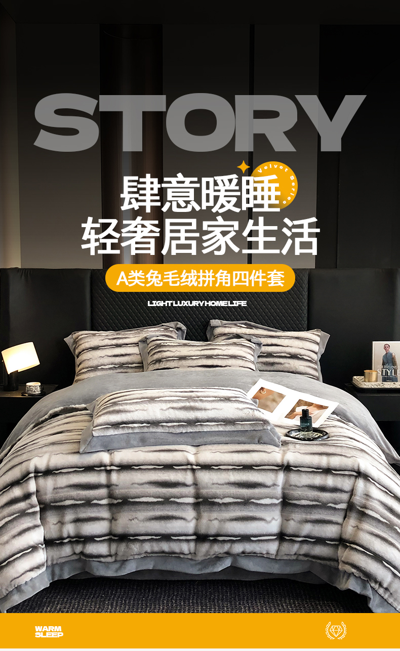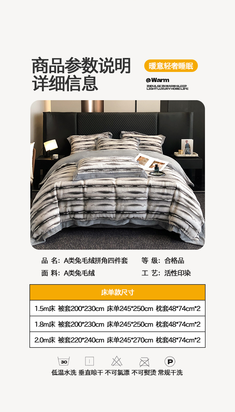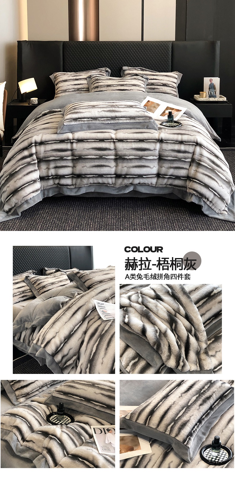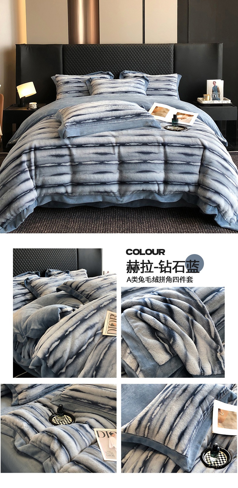 商品名称:懒猫家纺 2025新款兔毛绒拼角四件套-赫拉 赫拉-秋香红