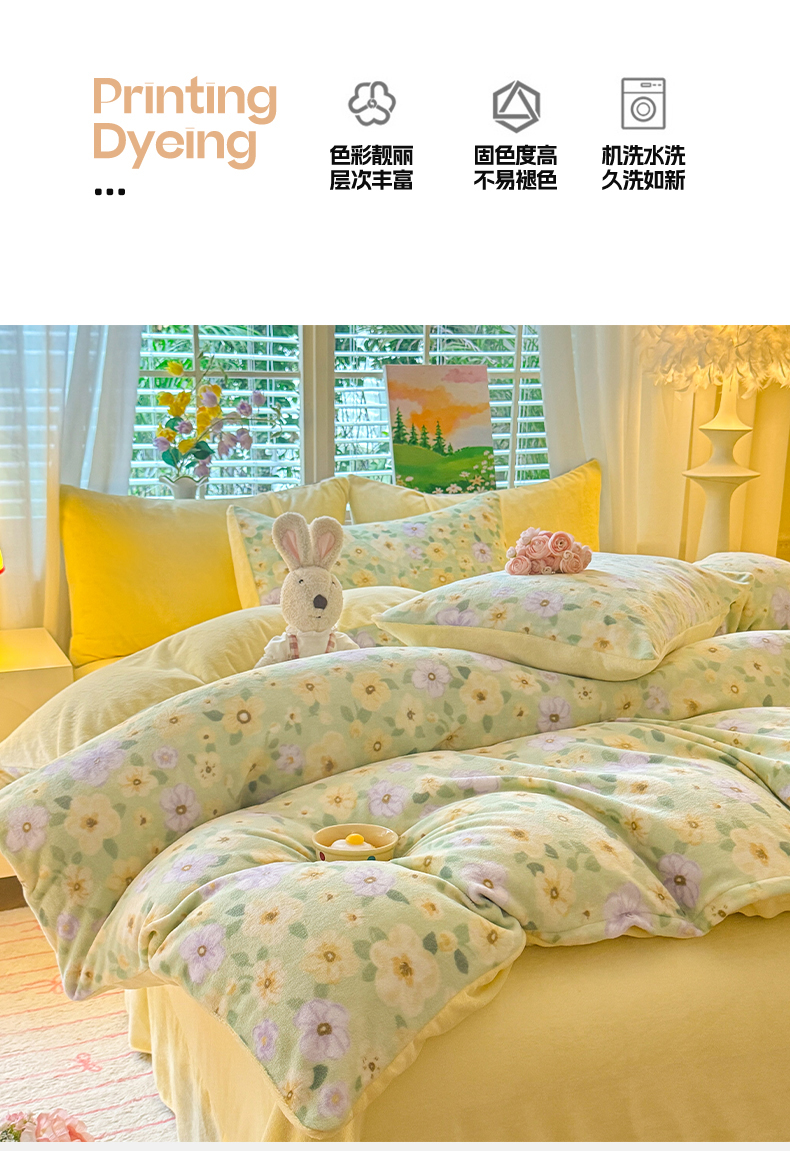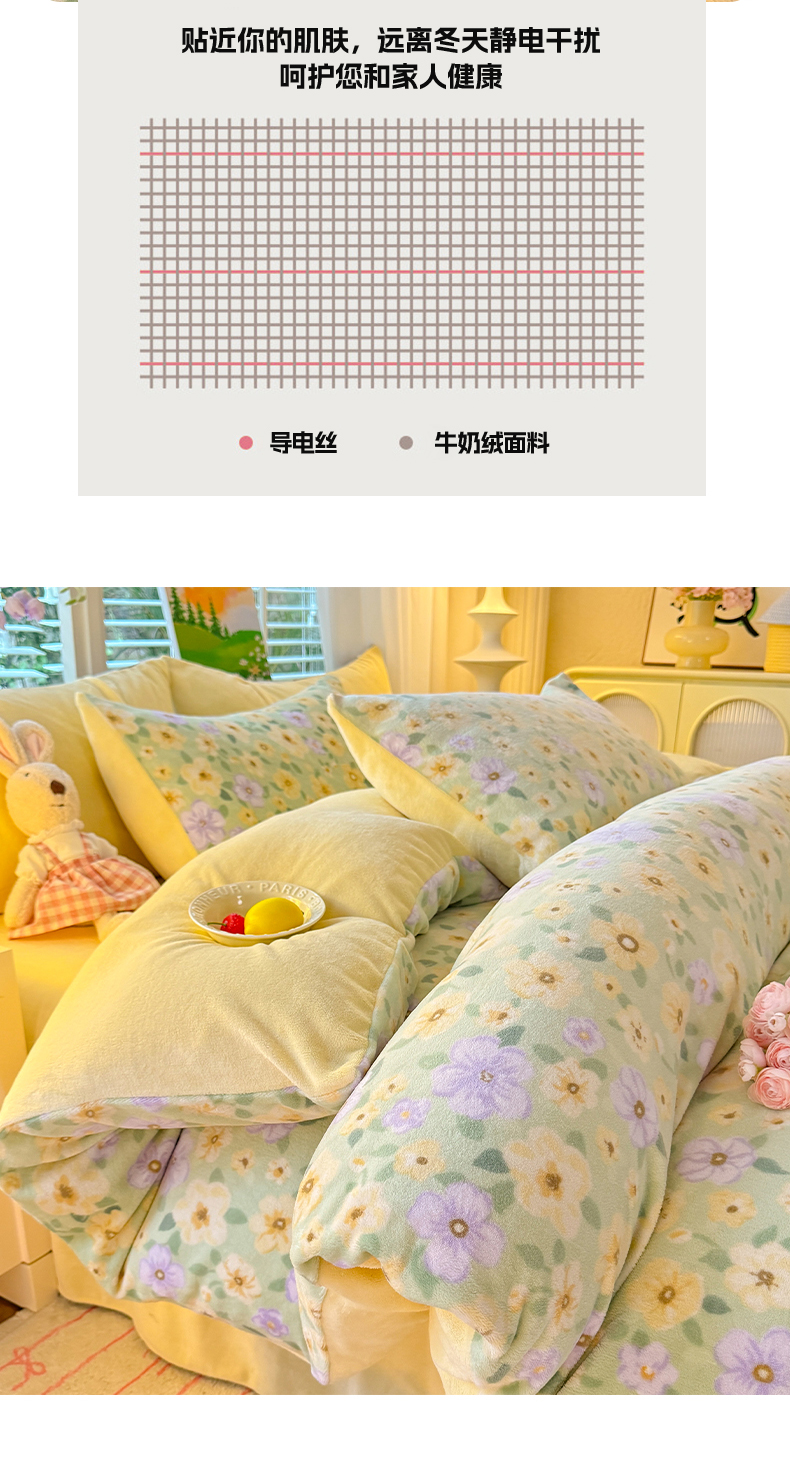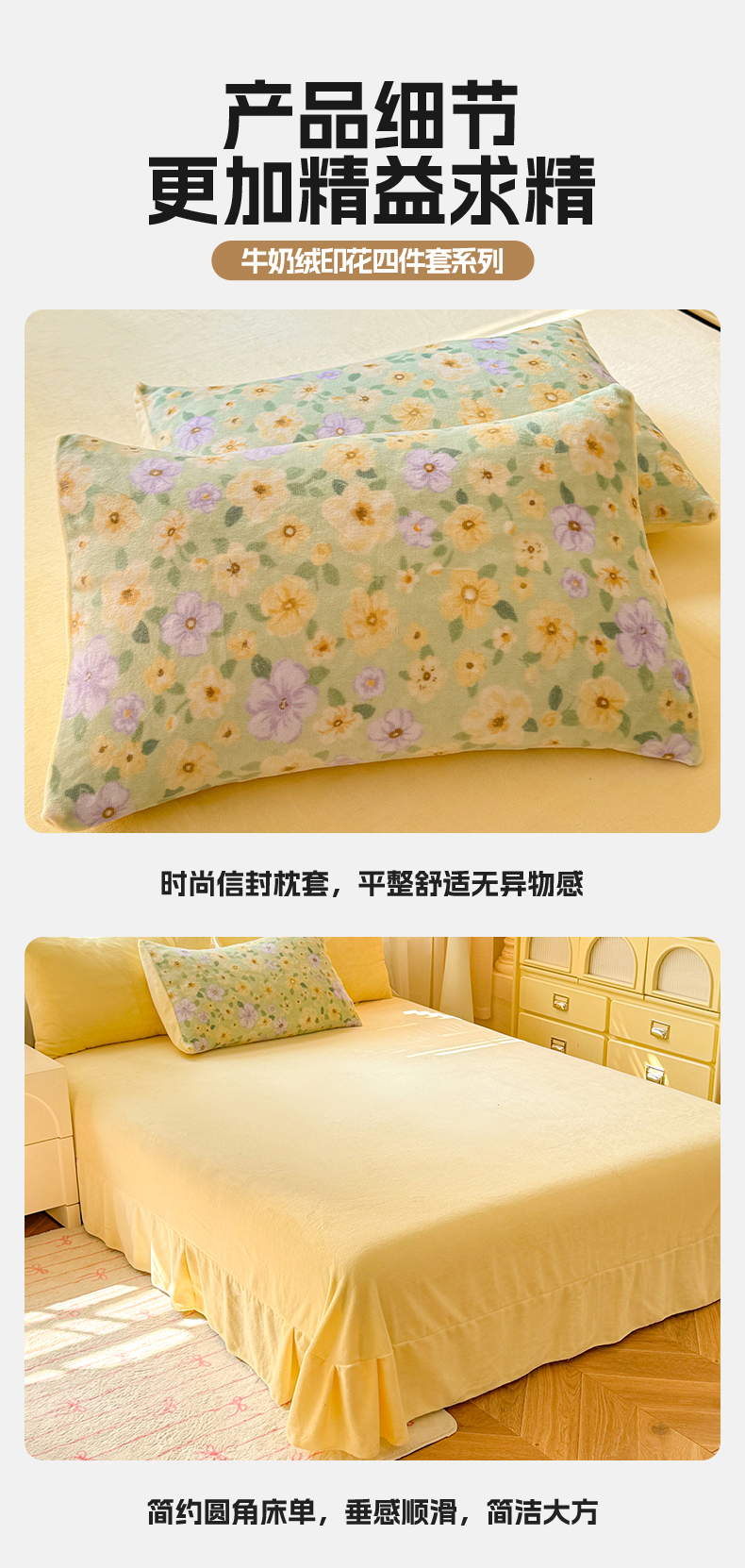 当前位置: 91家纺网 > 商品网购 > 床品套件 > 四件套 > 牛奶绒四件套 > 九诺家纺 2025秋冬新款牛奶绒床单四件套【圆角吊边花边床单】 暖阳之春