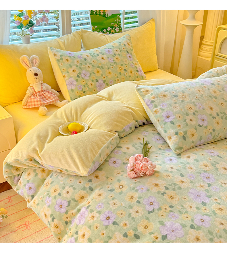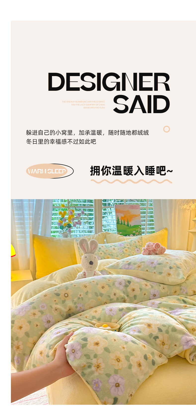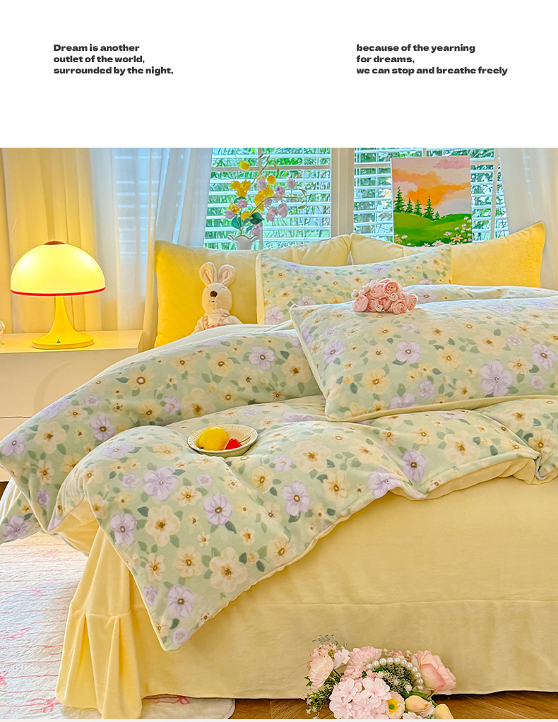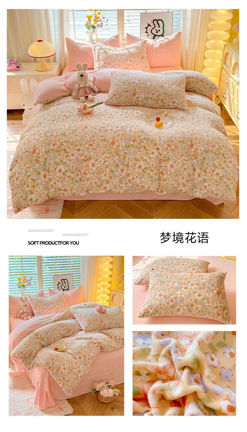 当前位置: 91家纺网 > 商品网购 > 床品套件 > 四件套 > 牛奶绒四件套 > 九诺家纺 2025秋冬新款牛奶绒床单四件套【圆角吊边花边床单】 暖阳之春
