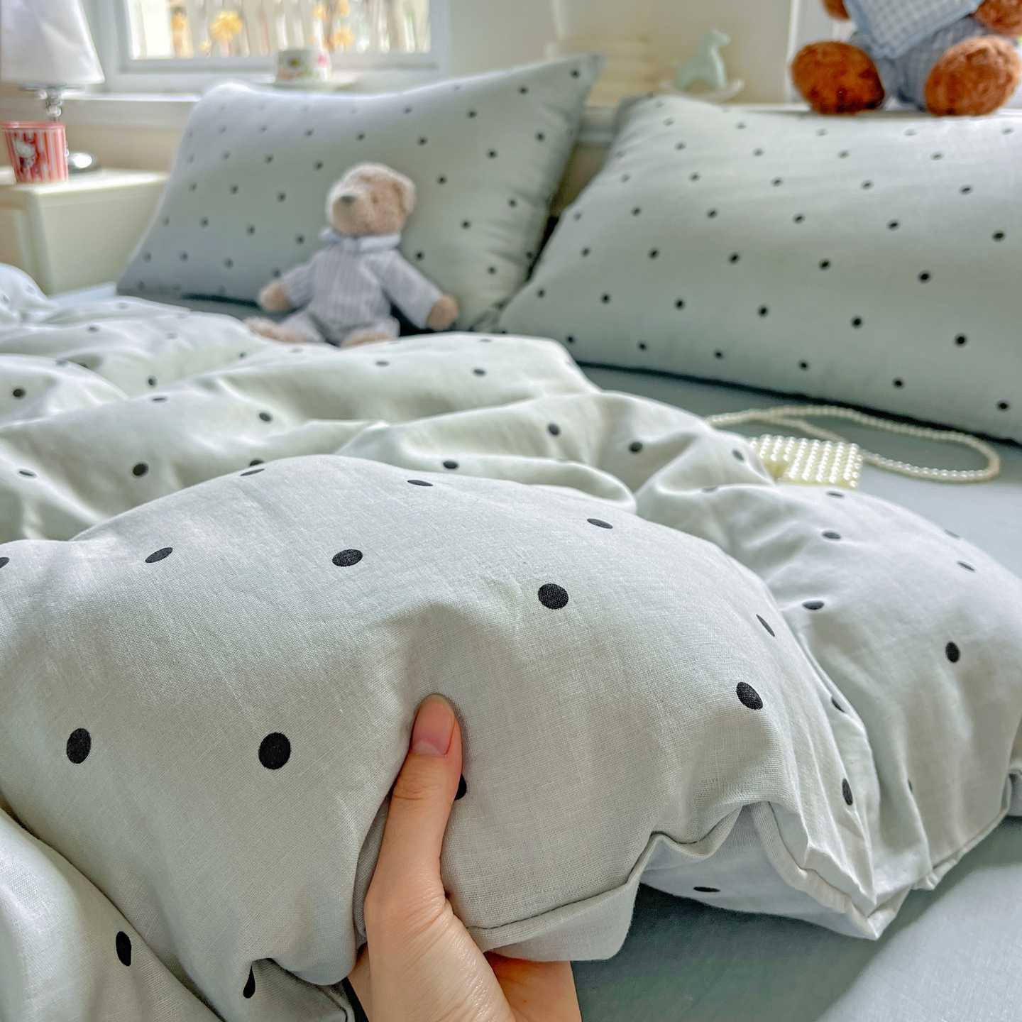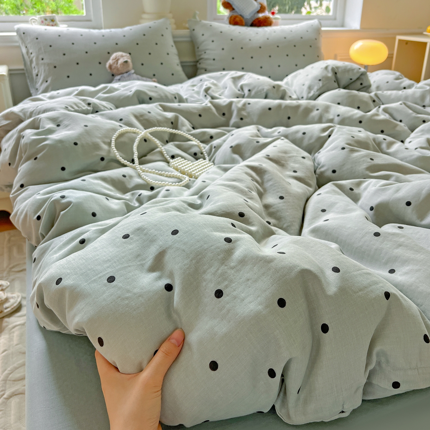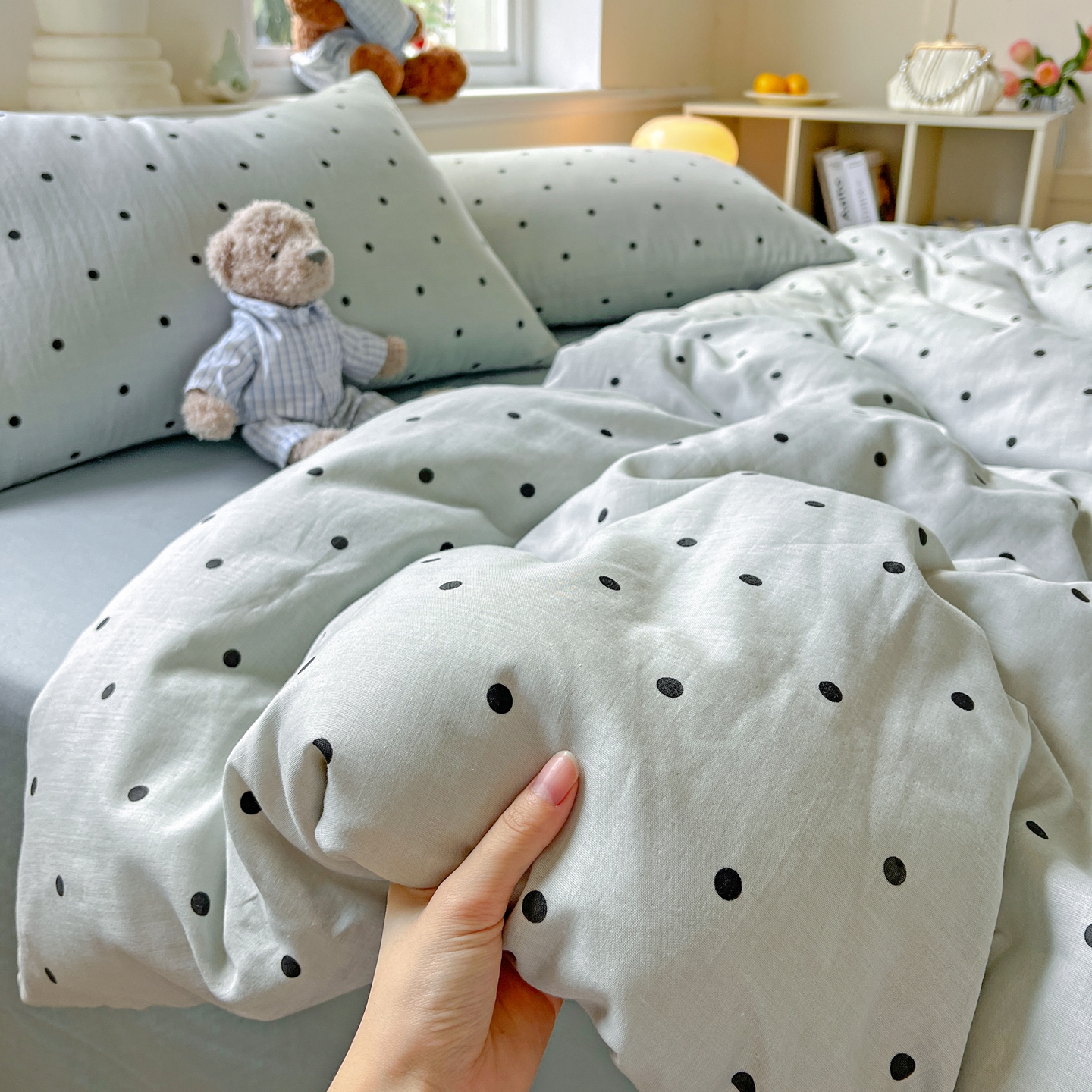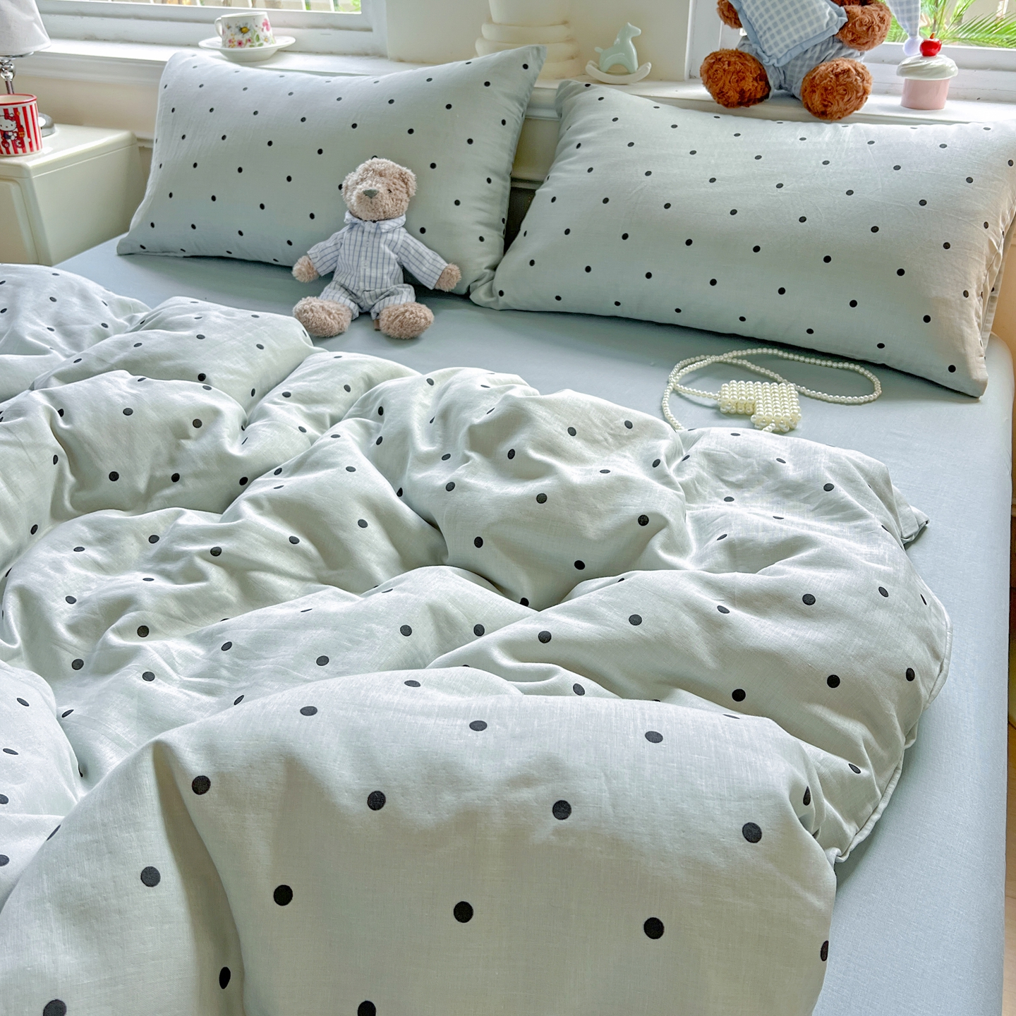一比一家纺 2025新款全棉双层纱四件套 抹茶啵啵