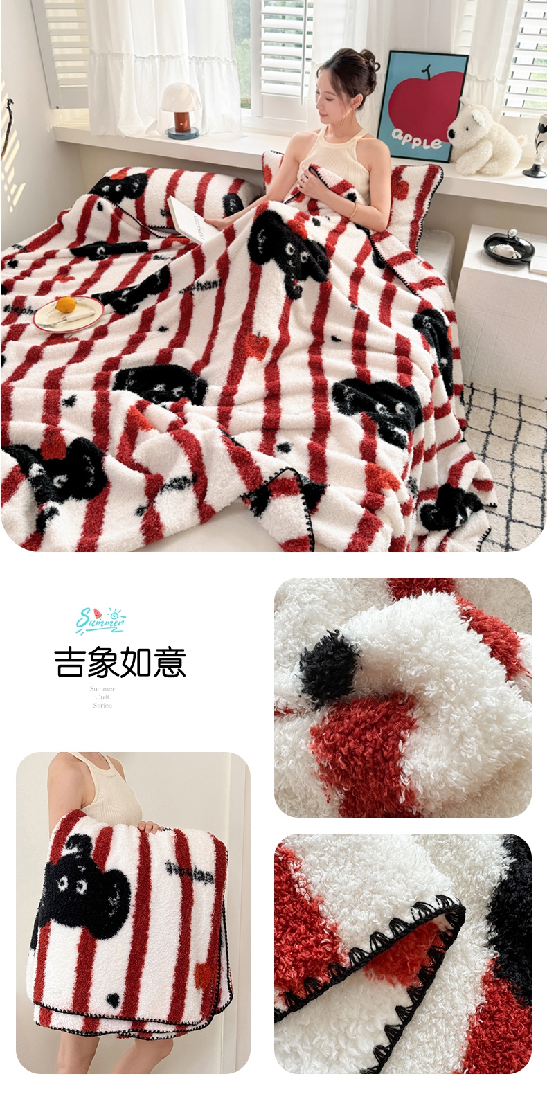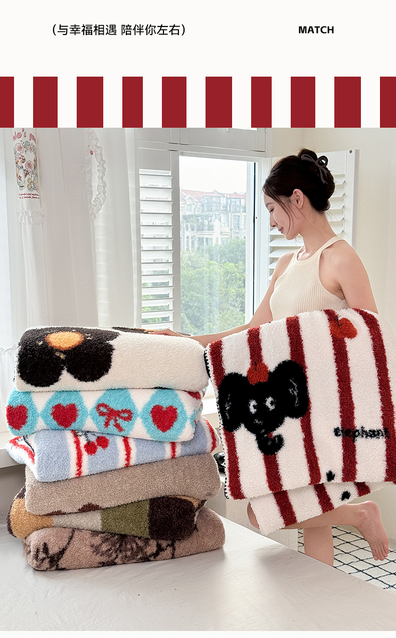 商品名称:佰亿莱 2026新款卡通萌趣半边绒毛毯 繁花