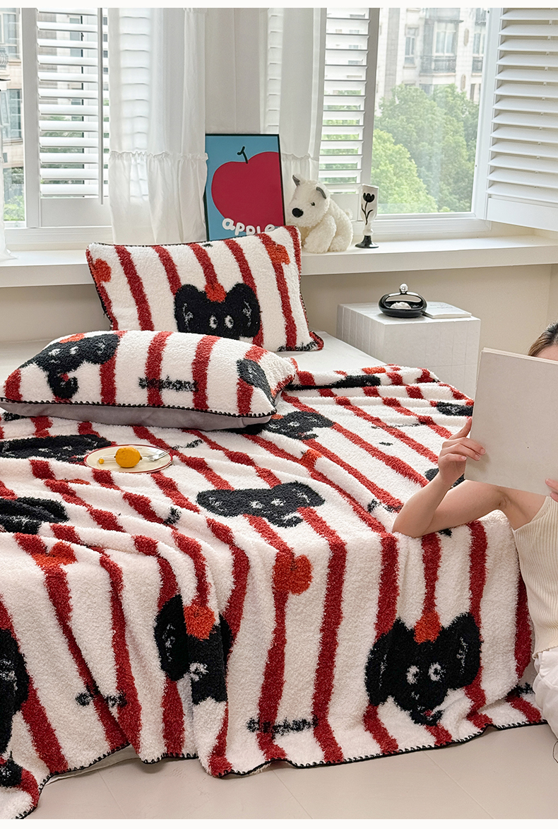 (总)佰亿莱 2026新款牛奶绒豆豆绒印花床盖四件套,百富蓝,豹纹狗狗,瑾紫花,可可蓝,猫咪酱,奶油波波,手捧玫瑰,条纹蝴蝶结,旺仔乐园