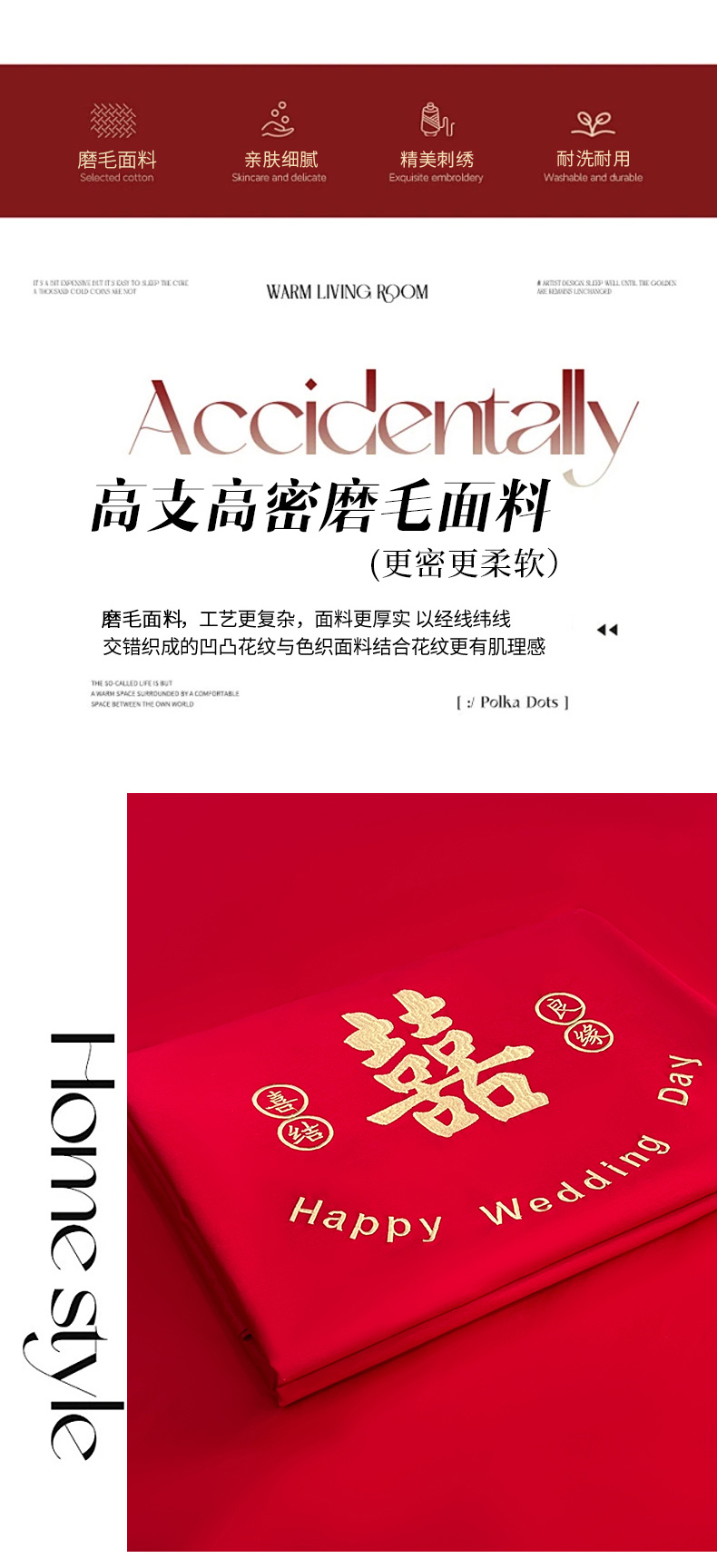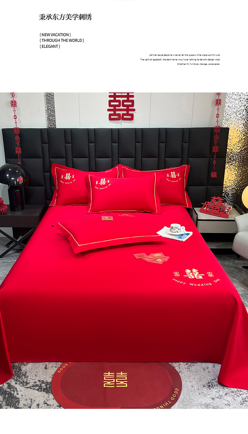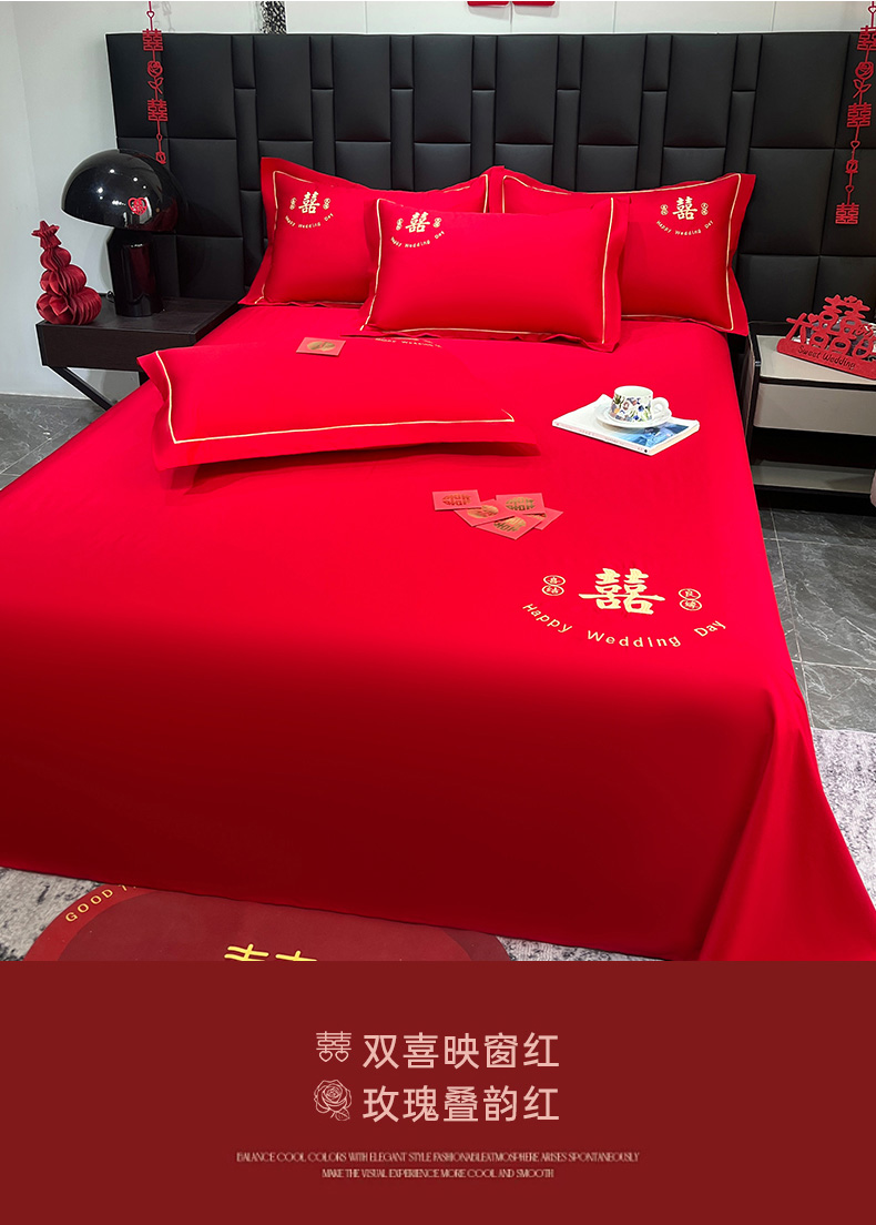 (总)极梦家纺 2025新款轻奢简约水洗磨毛婚庆系列单品床单大红床单,喜结良缘,喜事连连,百年好合,双喜临门