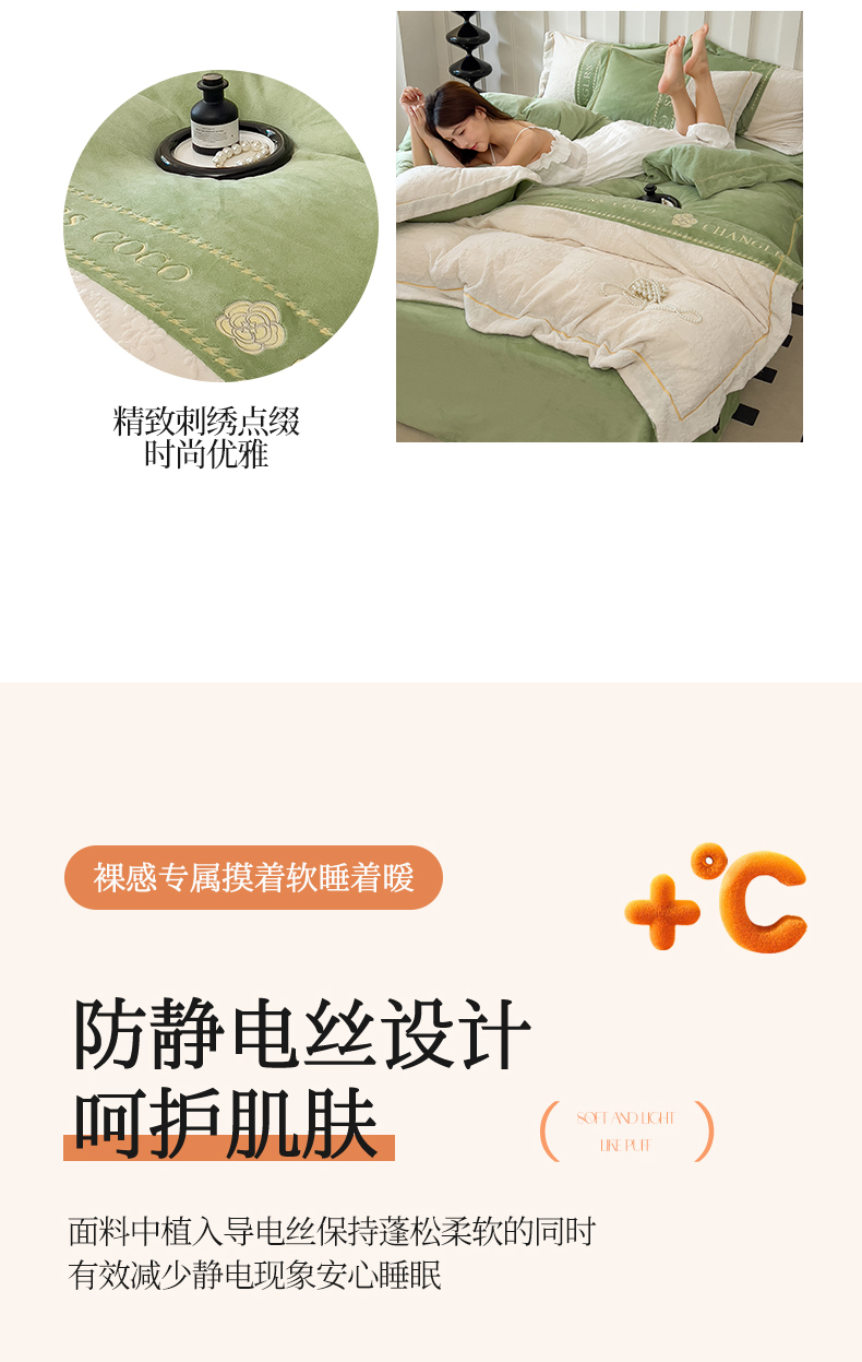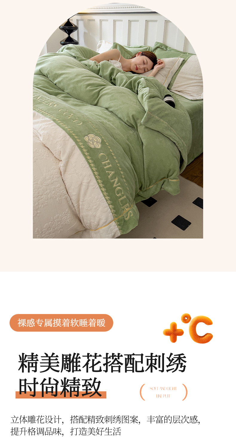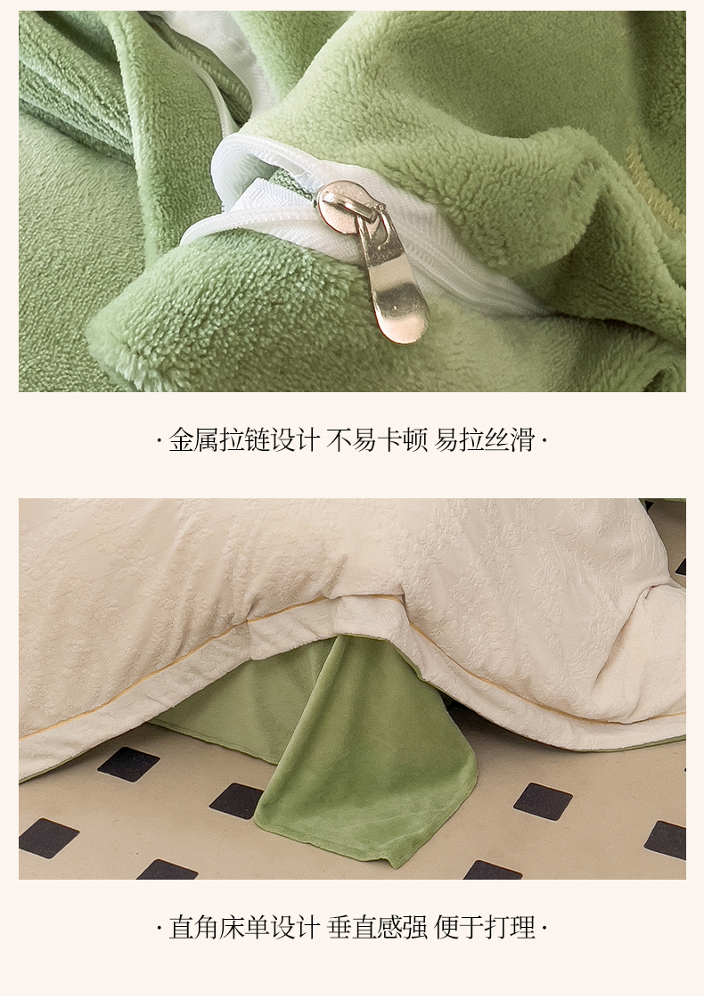 商品名称:言熙居家纺 2025新款A类A版牛奶雕花绒B版全消光牛奶绒四件套-花季 花季-竹林绿