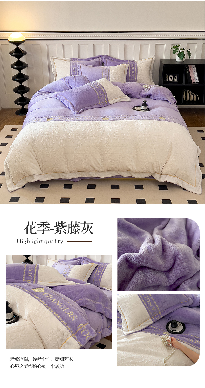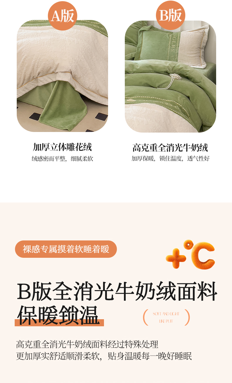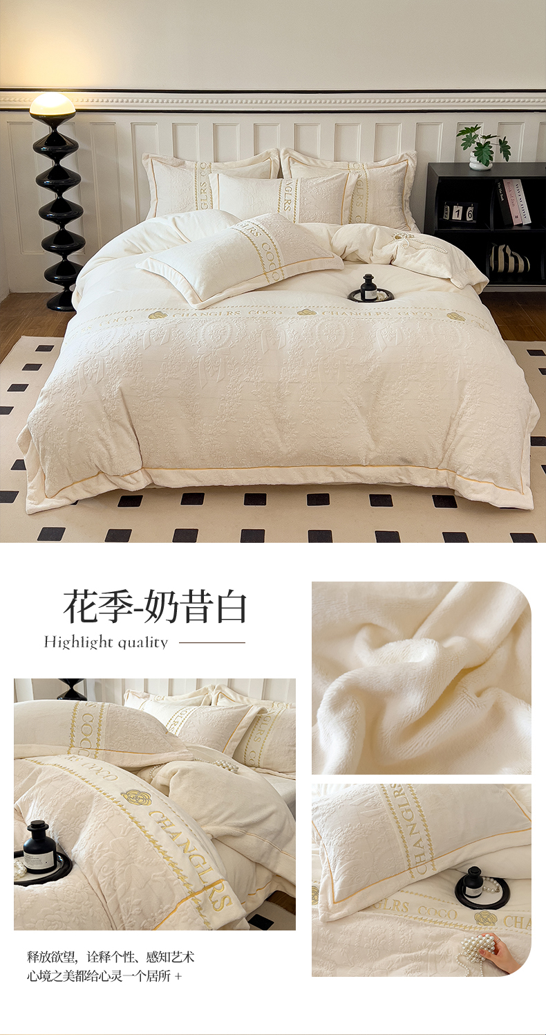(总)言熙居家纺 2025新款A类A版牛奶雕花绒B版全消光牛奶绒四件套-花季,花季-高级灰,花季-奶昔白,花季-暖阳橙,花季-樱花粉,花季-竹林绿,花季-紫藤灰,花季-奶茶棕