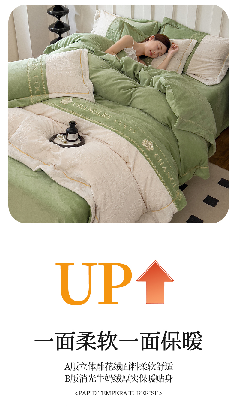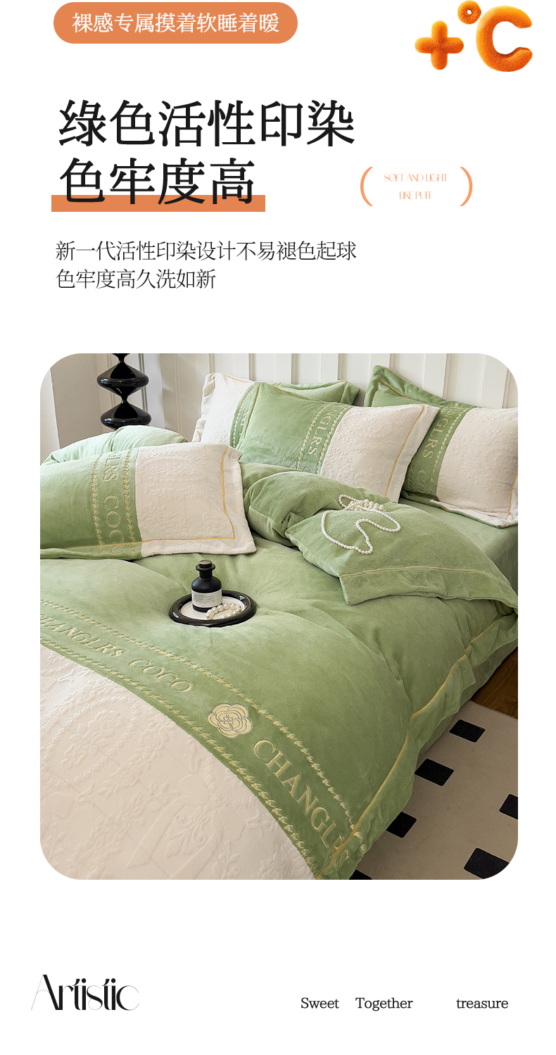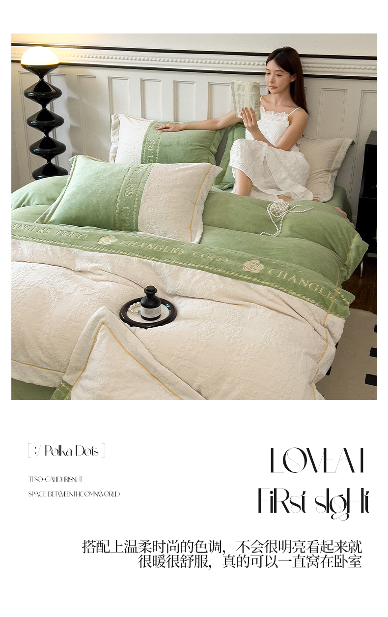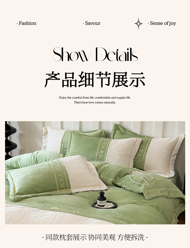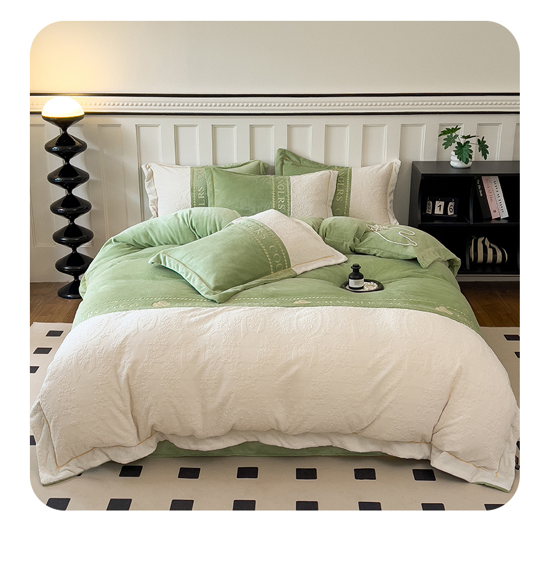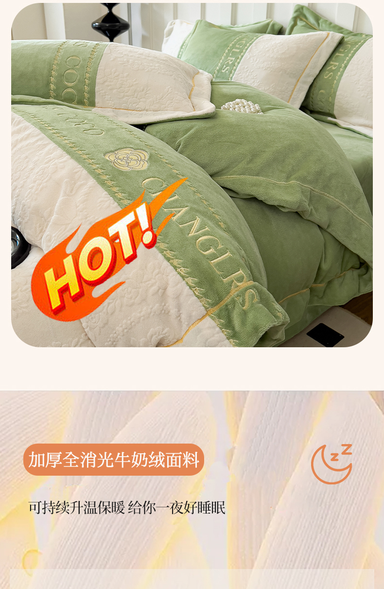 言熙居家纺 2025新款A类A版牛奶雕花绒B版全消光牛奶绒四件套-花季 花季-竹林绿
