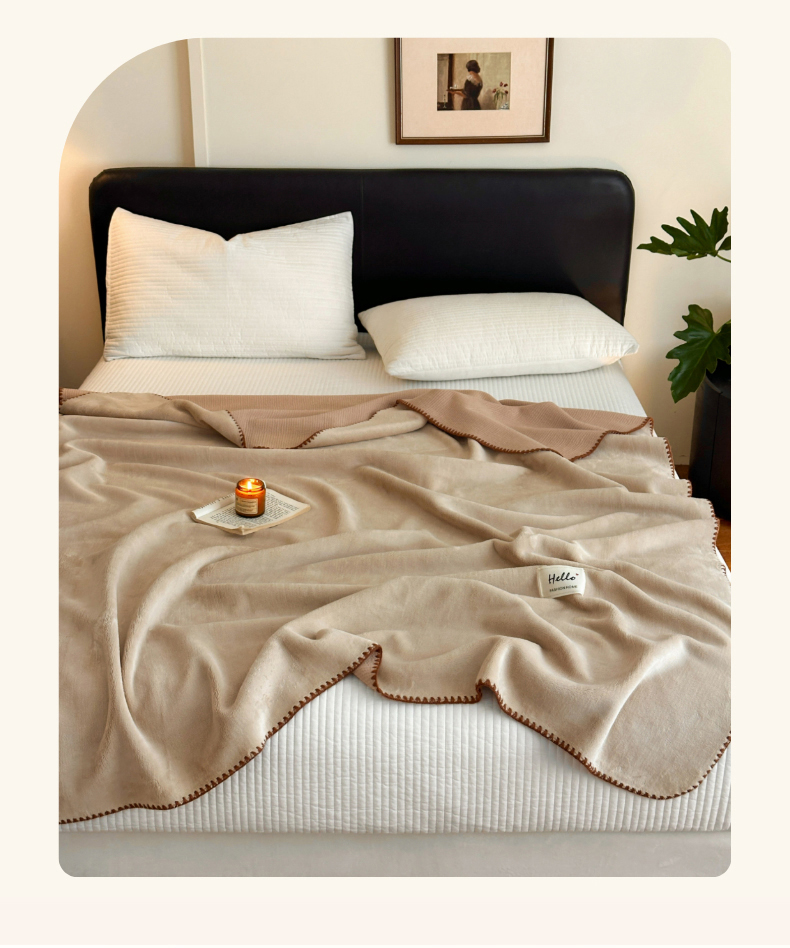 淑女公社家纺 2025新款秋冬新款贝壳边牛奶棉多功能盖毯 明月灰