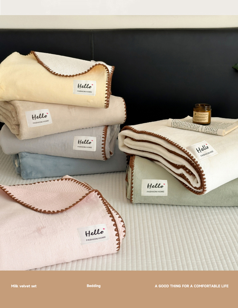 (总)淑女公社家纺 2025新款秋冬新款贝壳边牛奶棉多功能盖毯,如梦粉,泡芙黄,冰川蓝,明月灰,奶白,奶茶咖,组合图