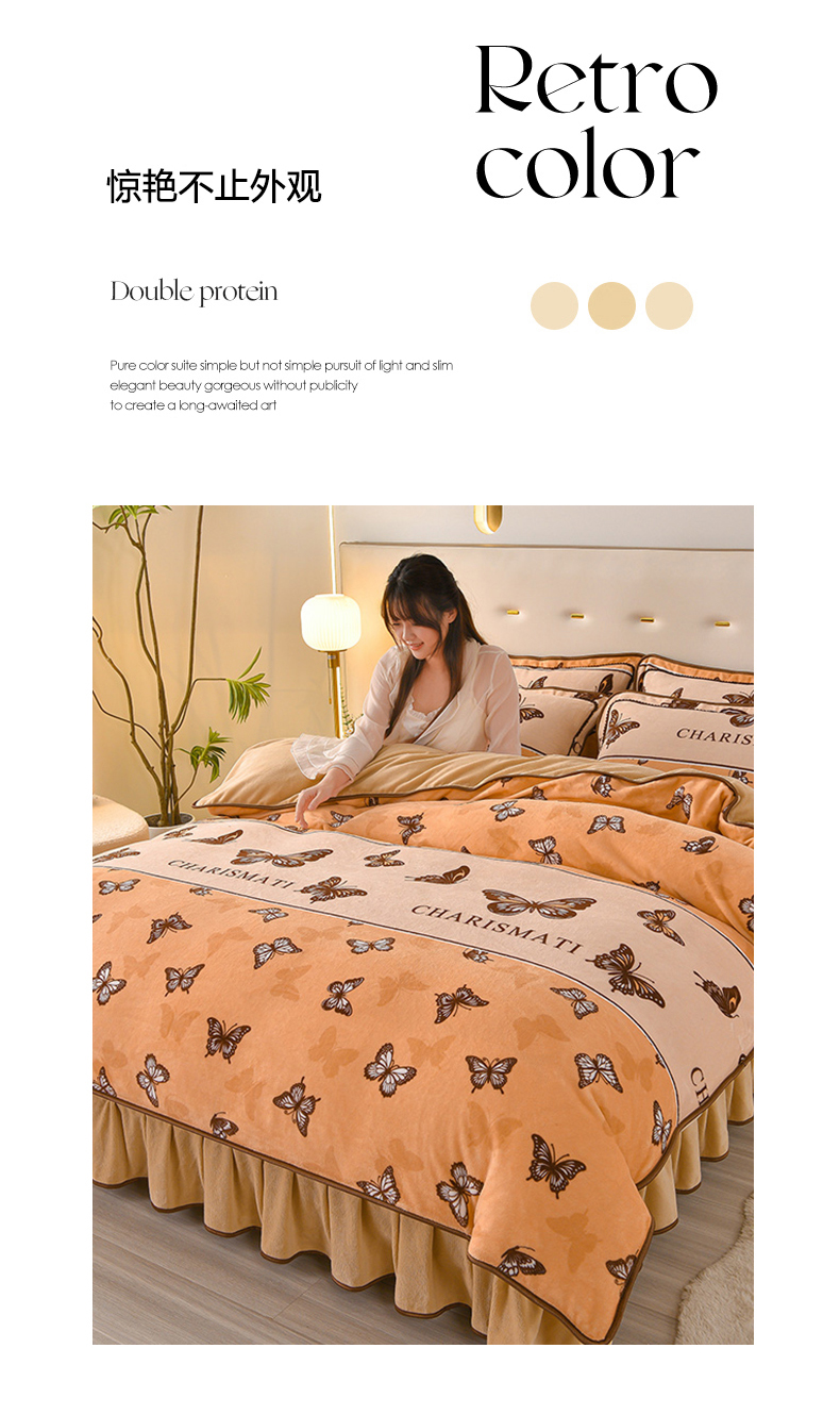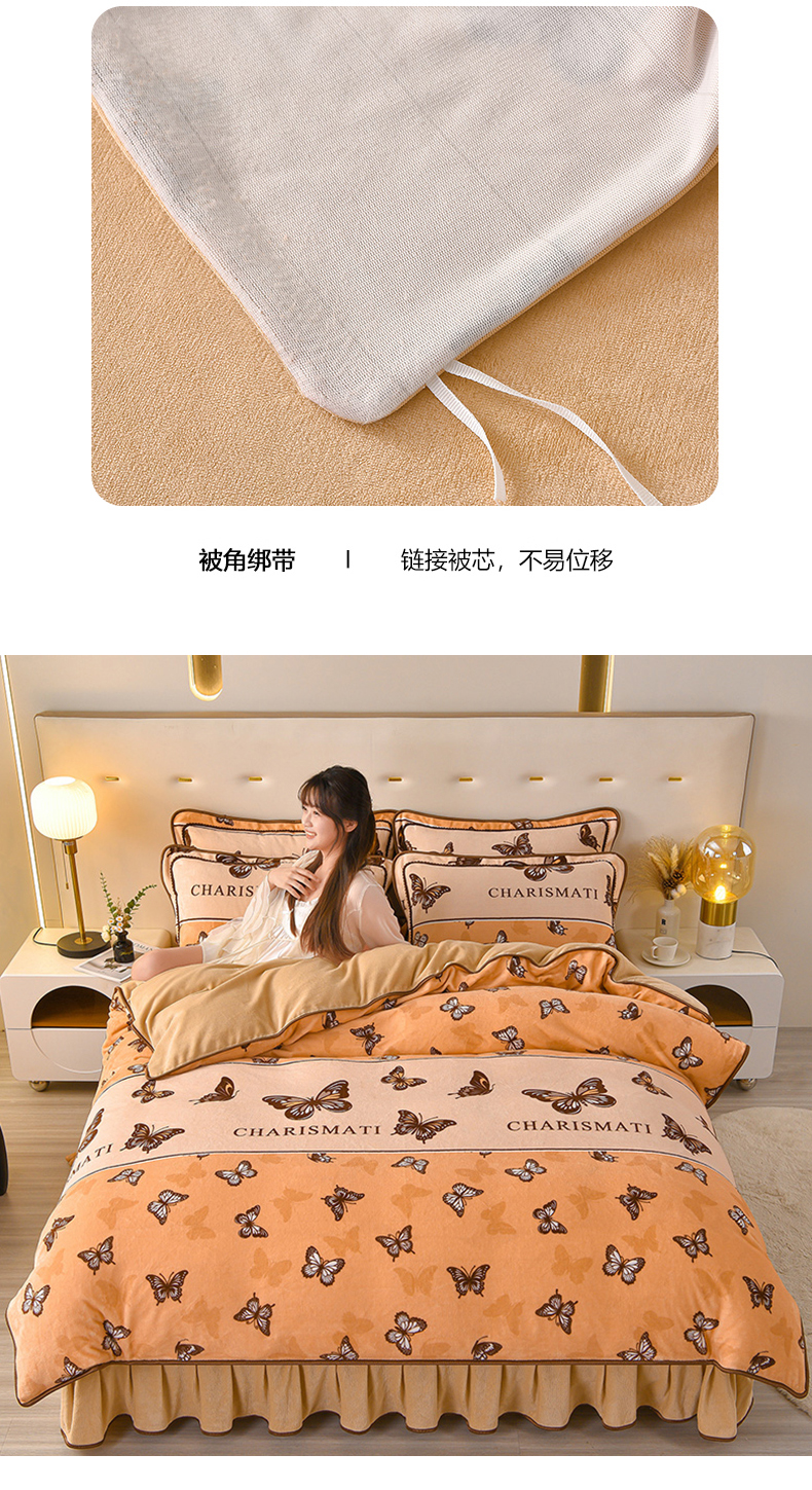 商品名称:亿品2025直播爆款9.5斤牛奶绒四件套加厚保暖床裙四件套 羽蝶