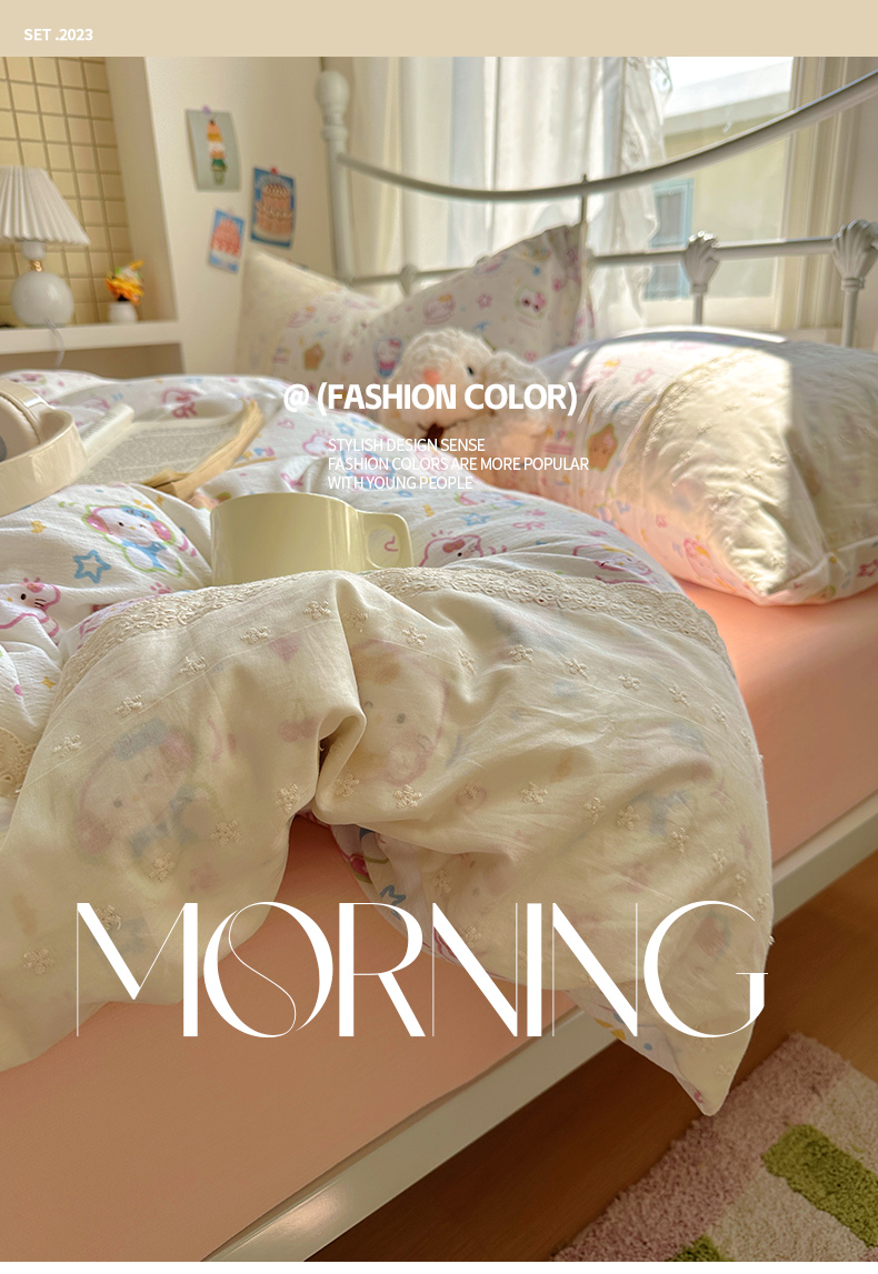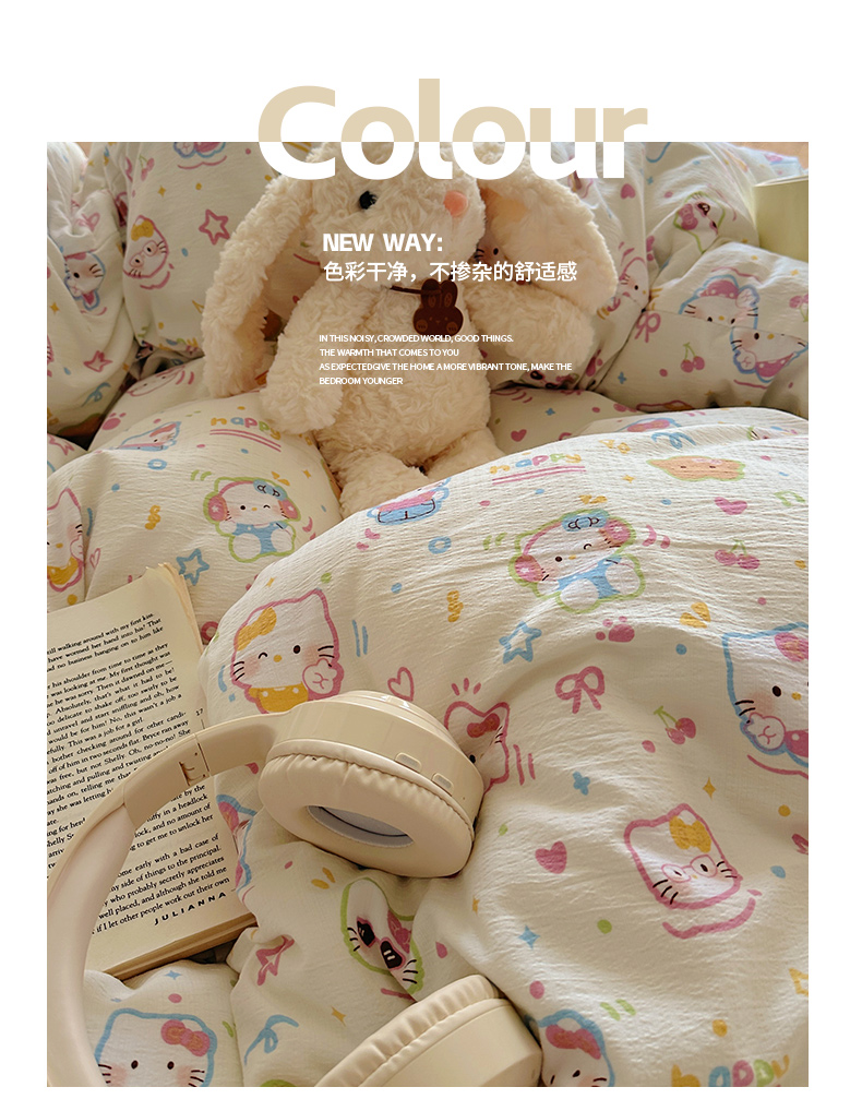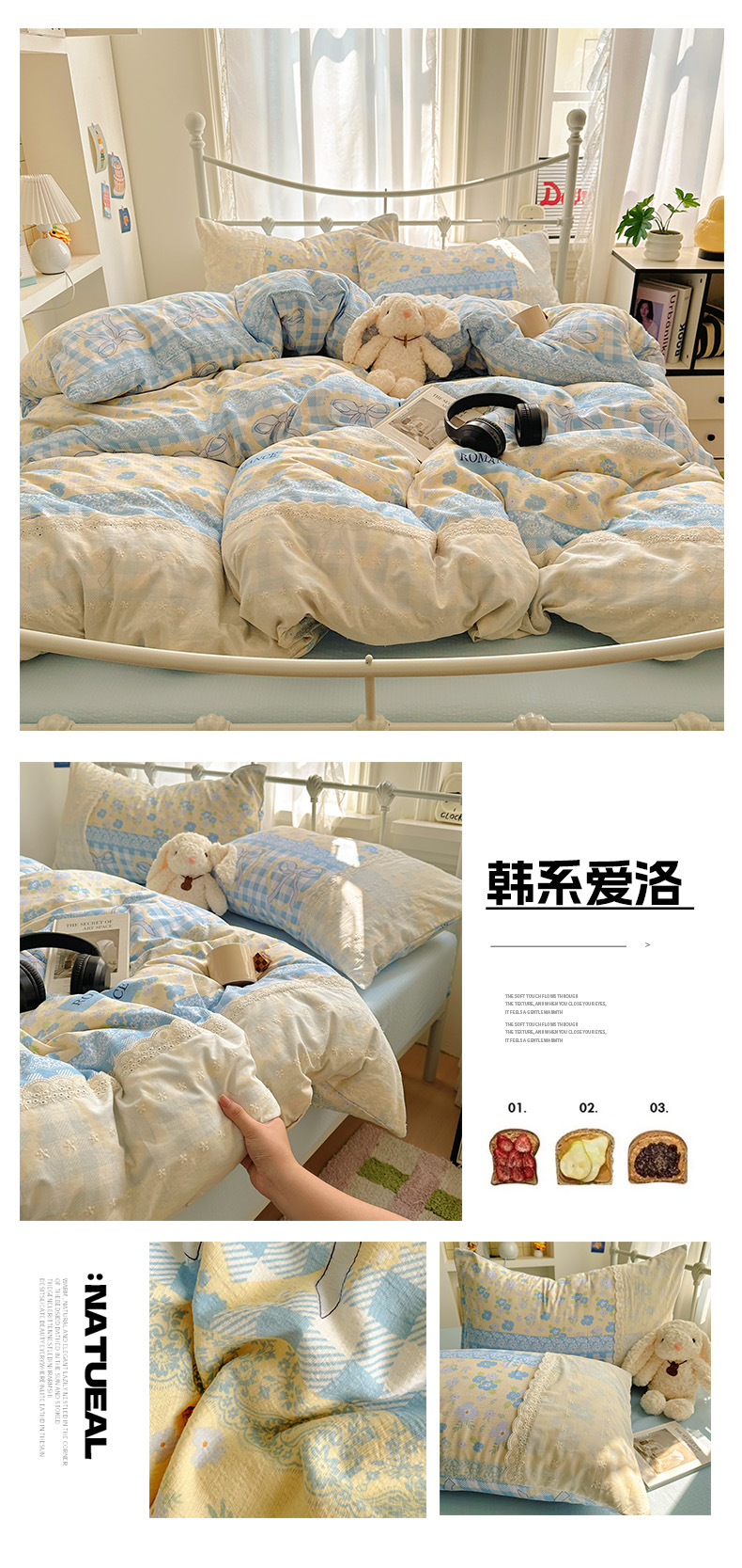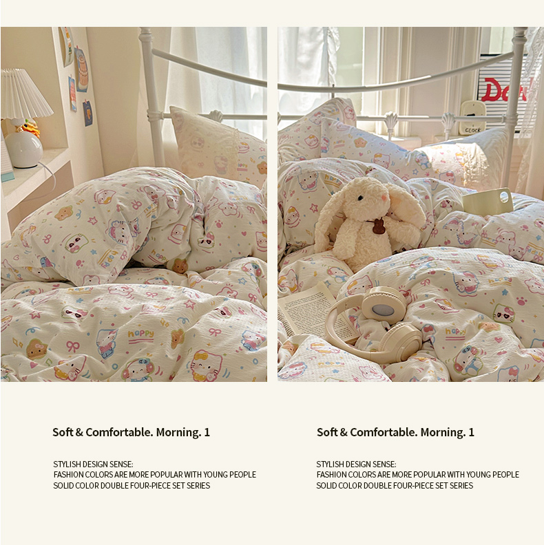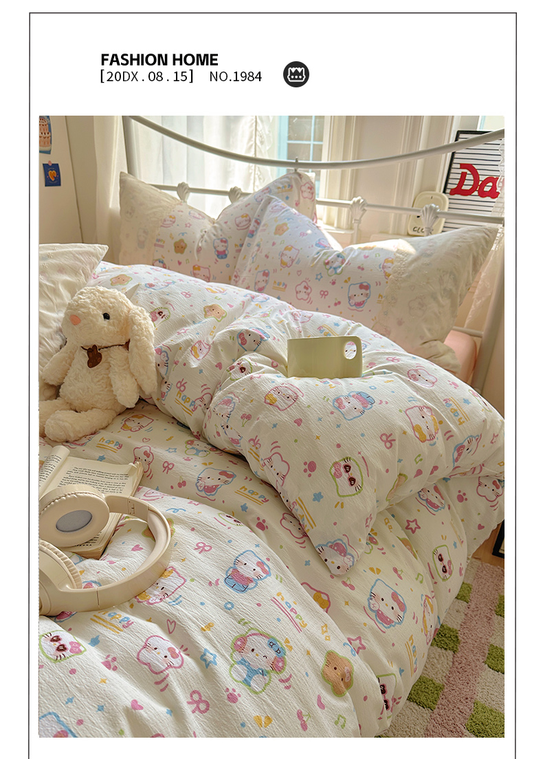 当前位置: 91家纺网 > 商品网购 > 床品套件 > 四件套 > 双层纱四件套 > 花伞家居 2025新款A类韩系蕾丝花边云感木棉双层纱四件套(提供买家秀) 韩系快乐小猫