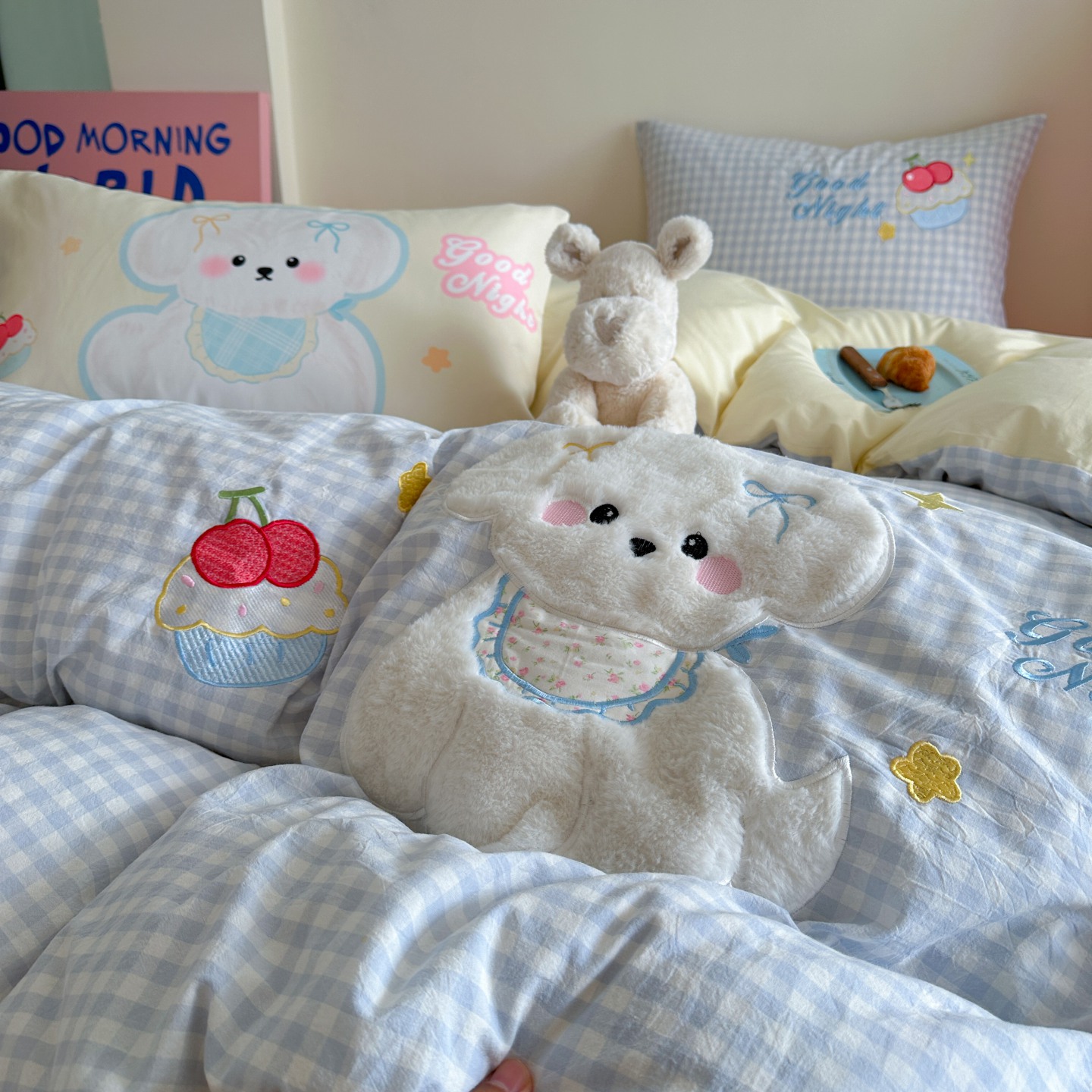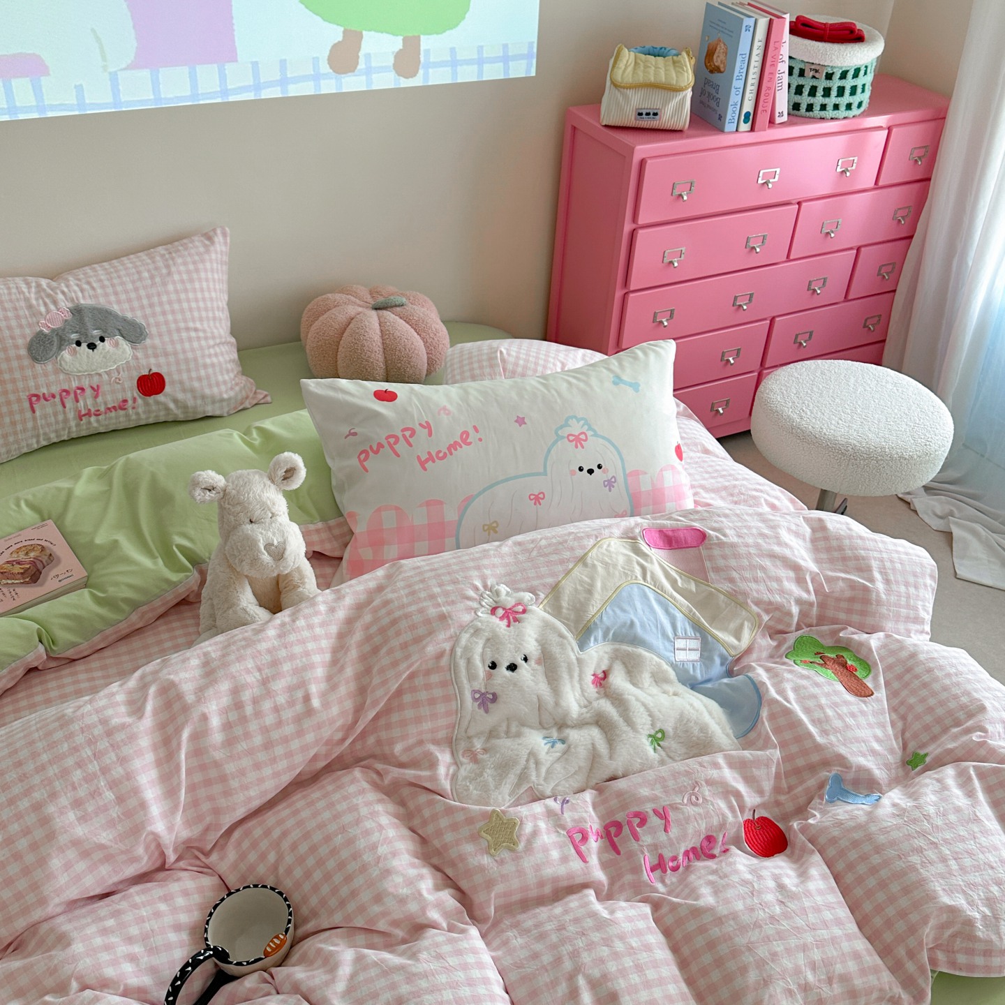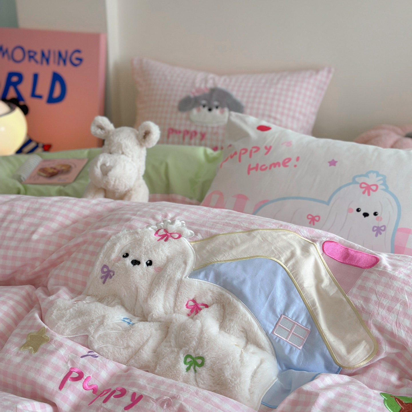 觅糖家纺 2025秋冬韩系全棉水洗棉系列四件套 小狗屋