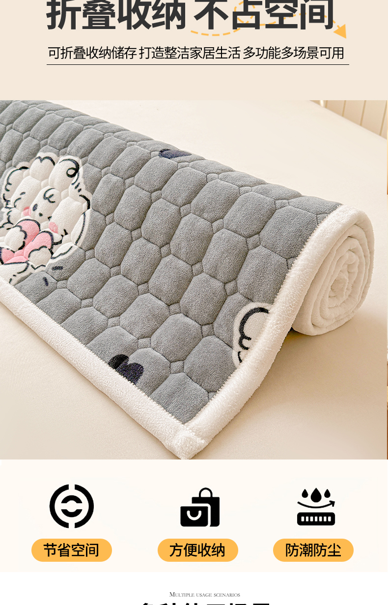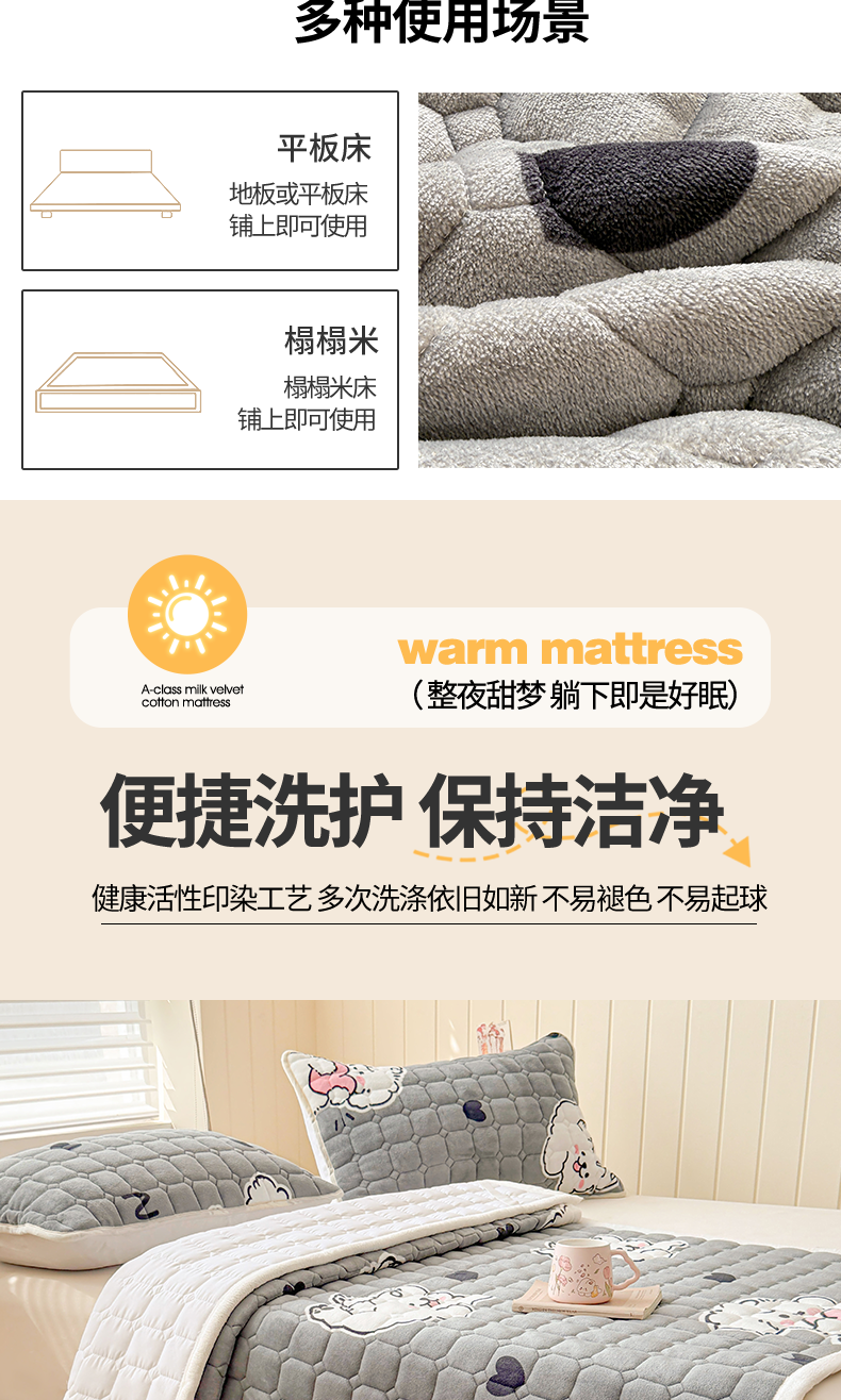 商品名称:(总)初心家纺 2025新款高克重牛奶绒印花夹棉床垫