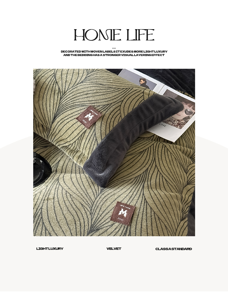 商品名称:典曼家纺 2025新款轻奢拼角欧貂绒系列四件套 简欧-绿