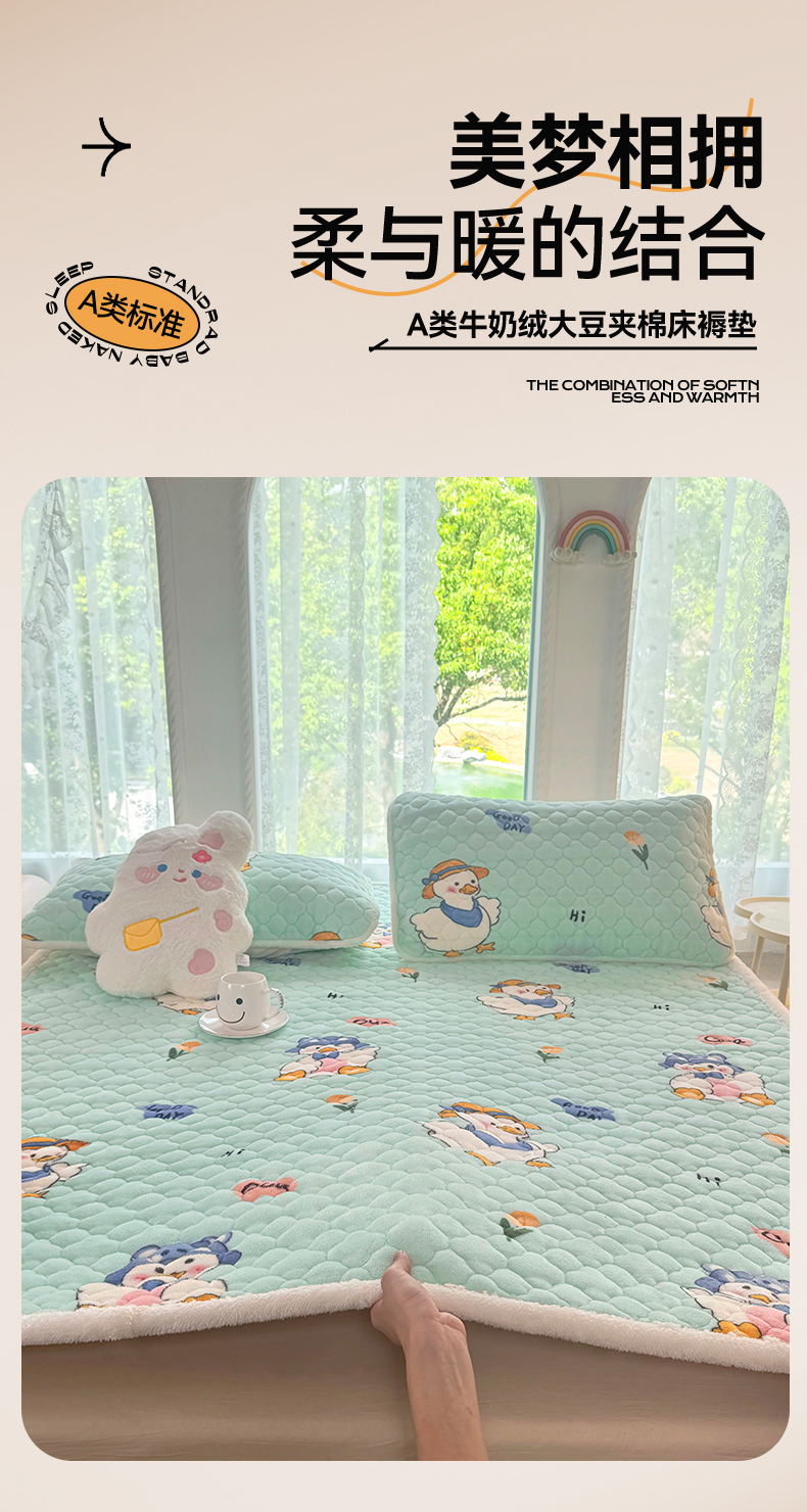 暖芯优选 2025热款外贸跨境电商热销款冬季加厚牛奶绒印花床垫床垫学生单人宿舍上下铺 顽皮小鸭