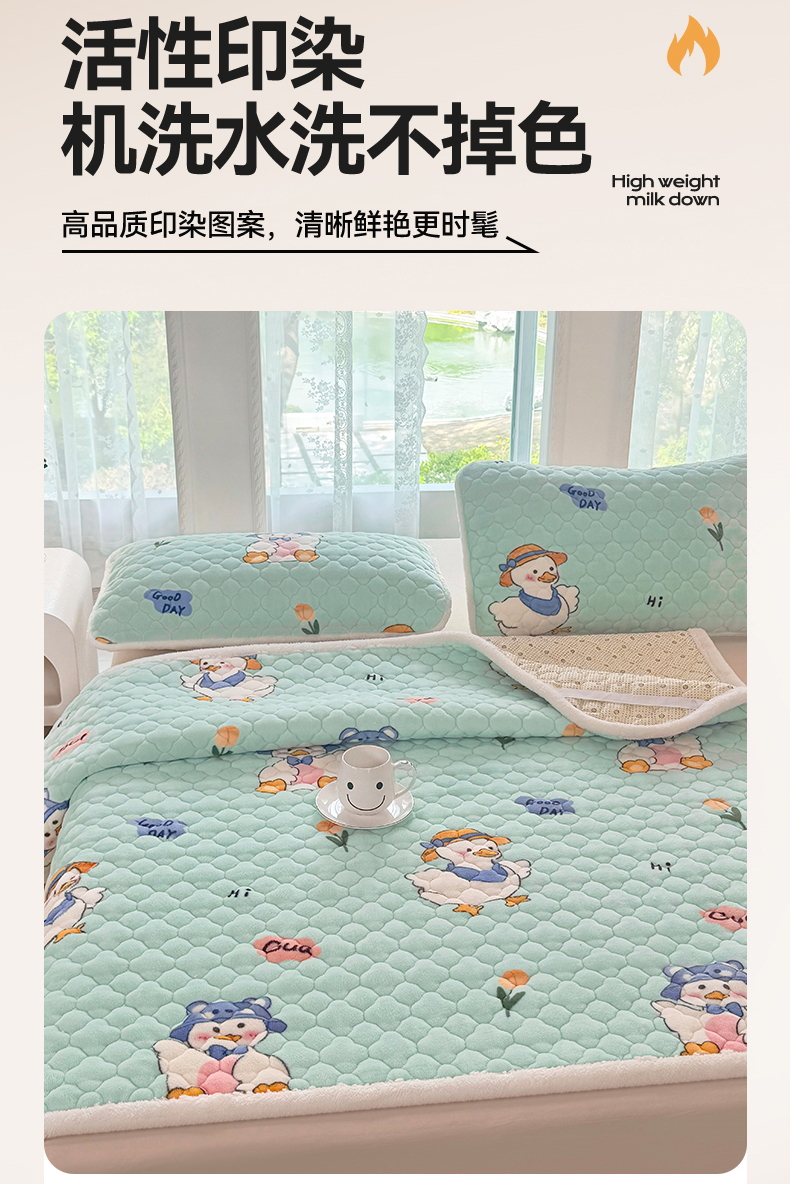 床垫/床褥 > 暖芯优选 2025热款外贸跨境电商热销款冬季加厚牛奶绒印花床垫床垫学生单人宿舍上下铺 顽皮小鸭