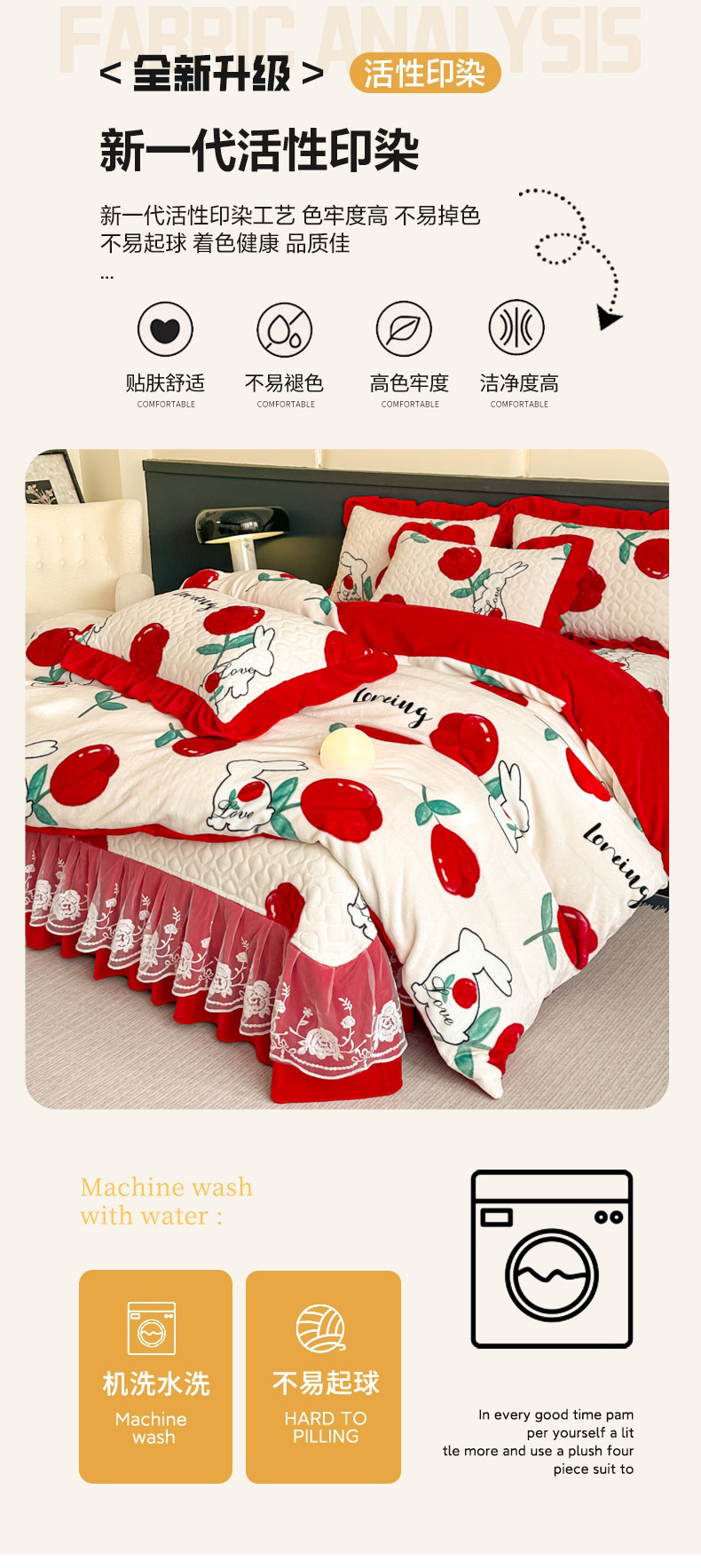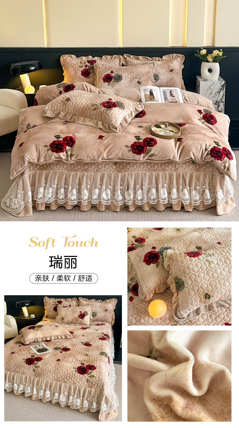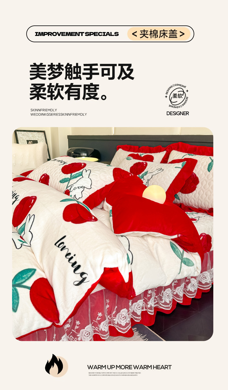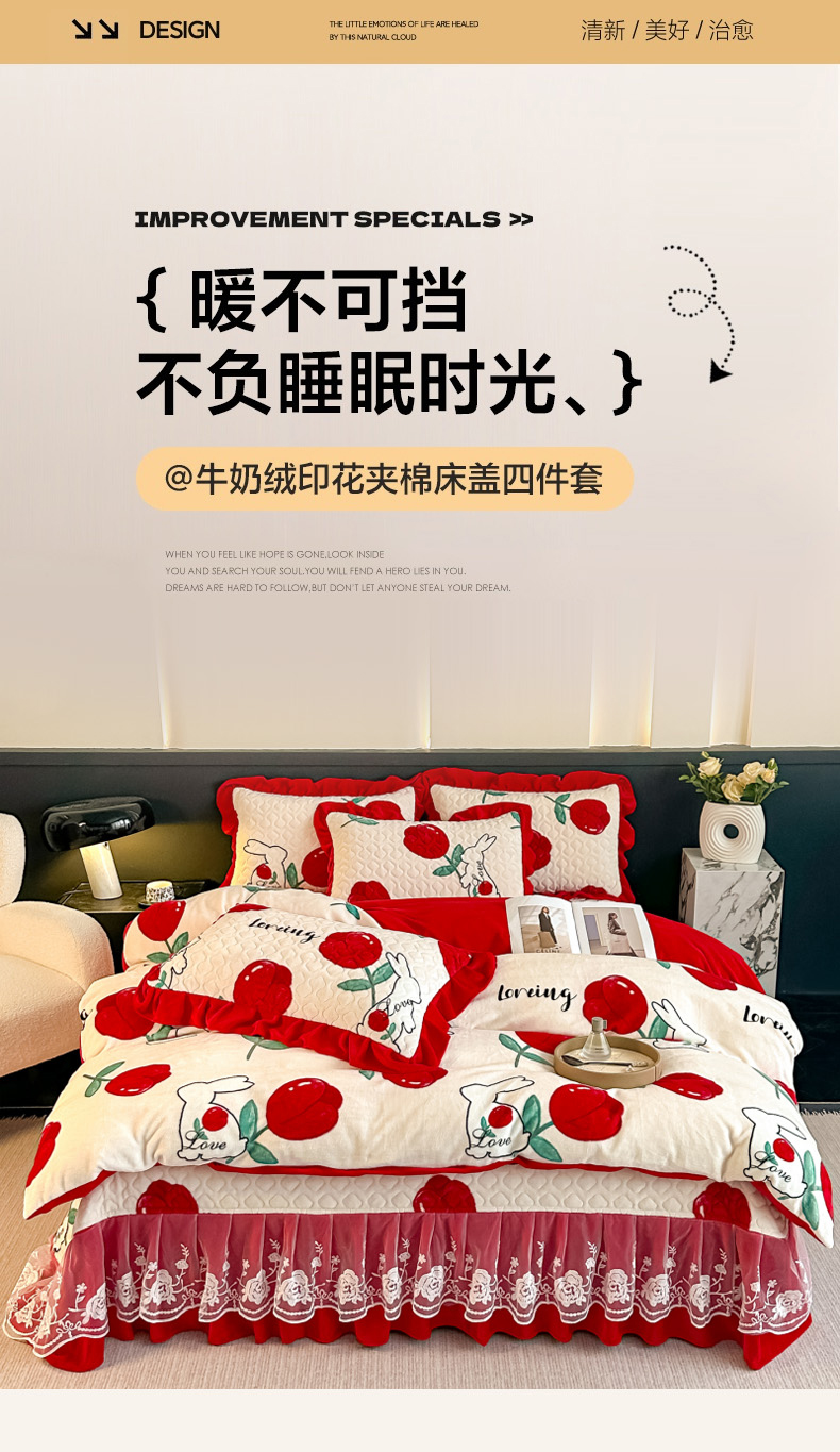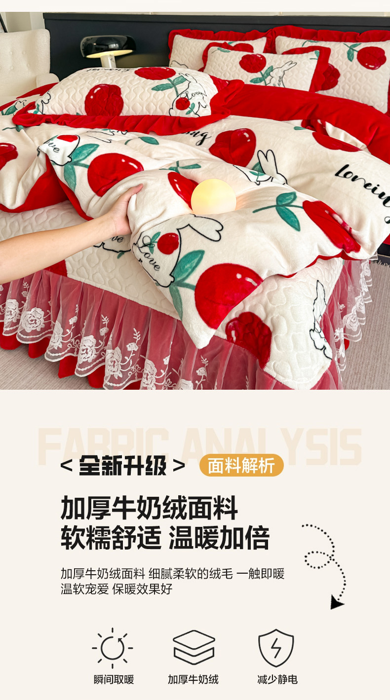 当前位置: 91家纺网 > 商品网购 > 床品套件 > 四件套 > 牛奶绒四件套 > 棉森家纺 2025新款亲肤舒适牛奶绒床盖四件套 郁兔红