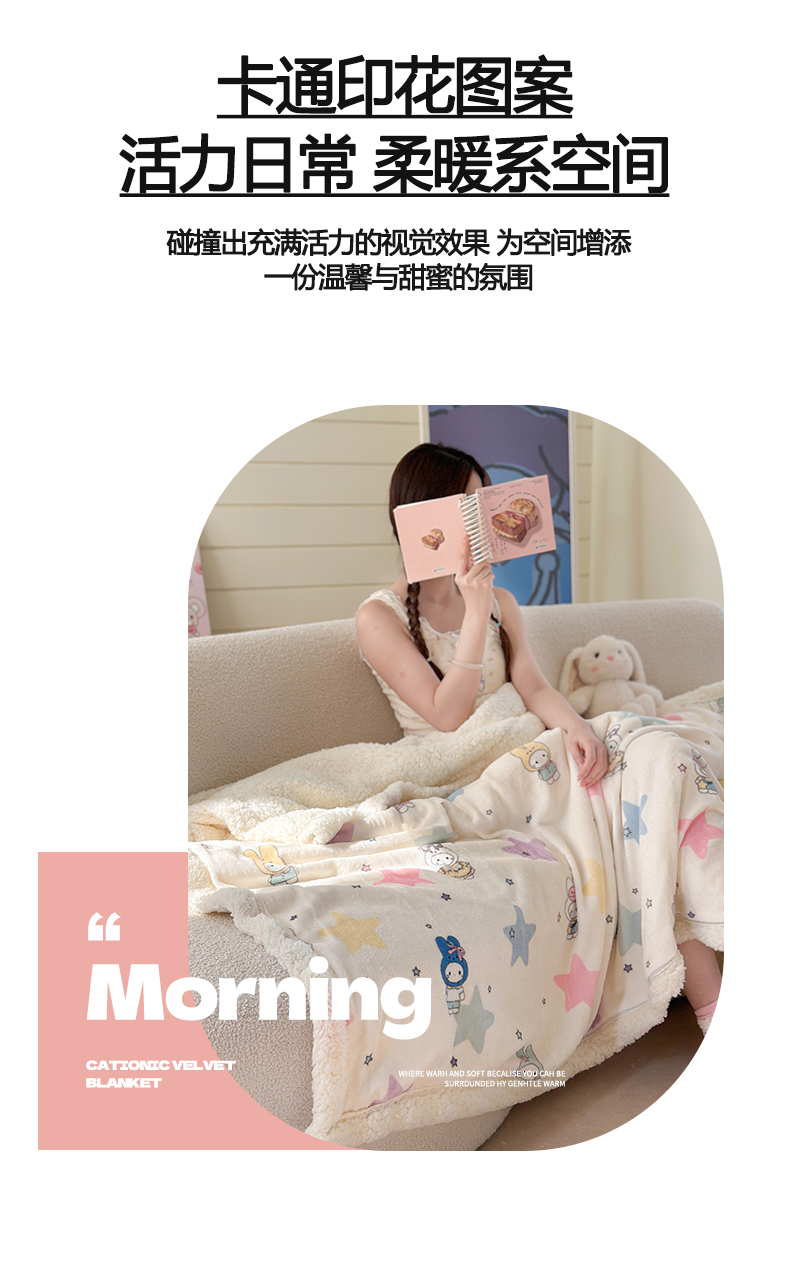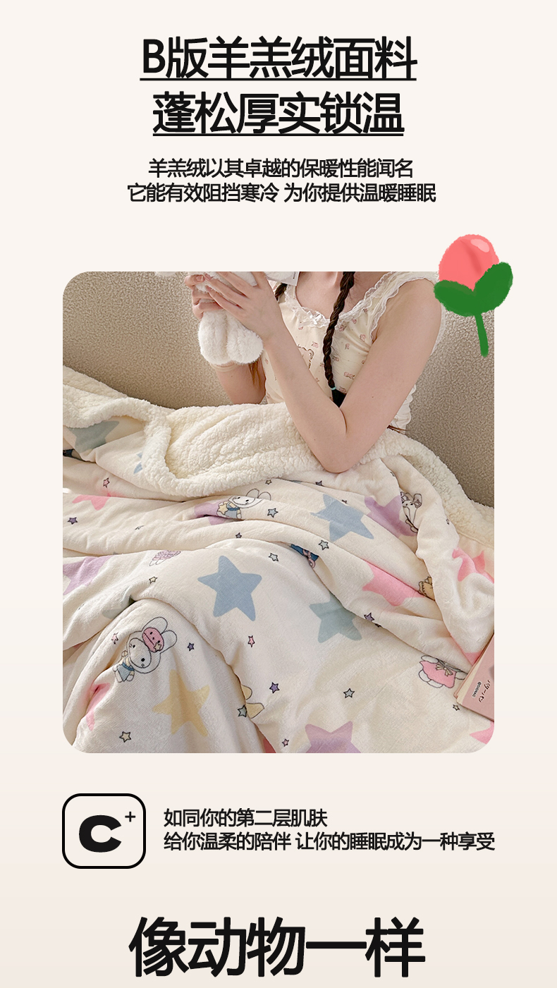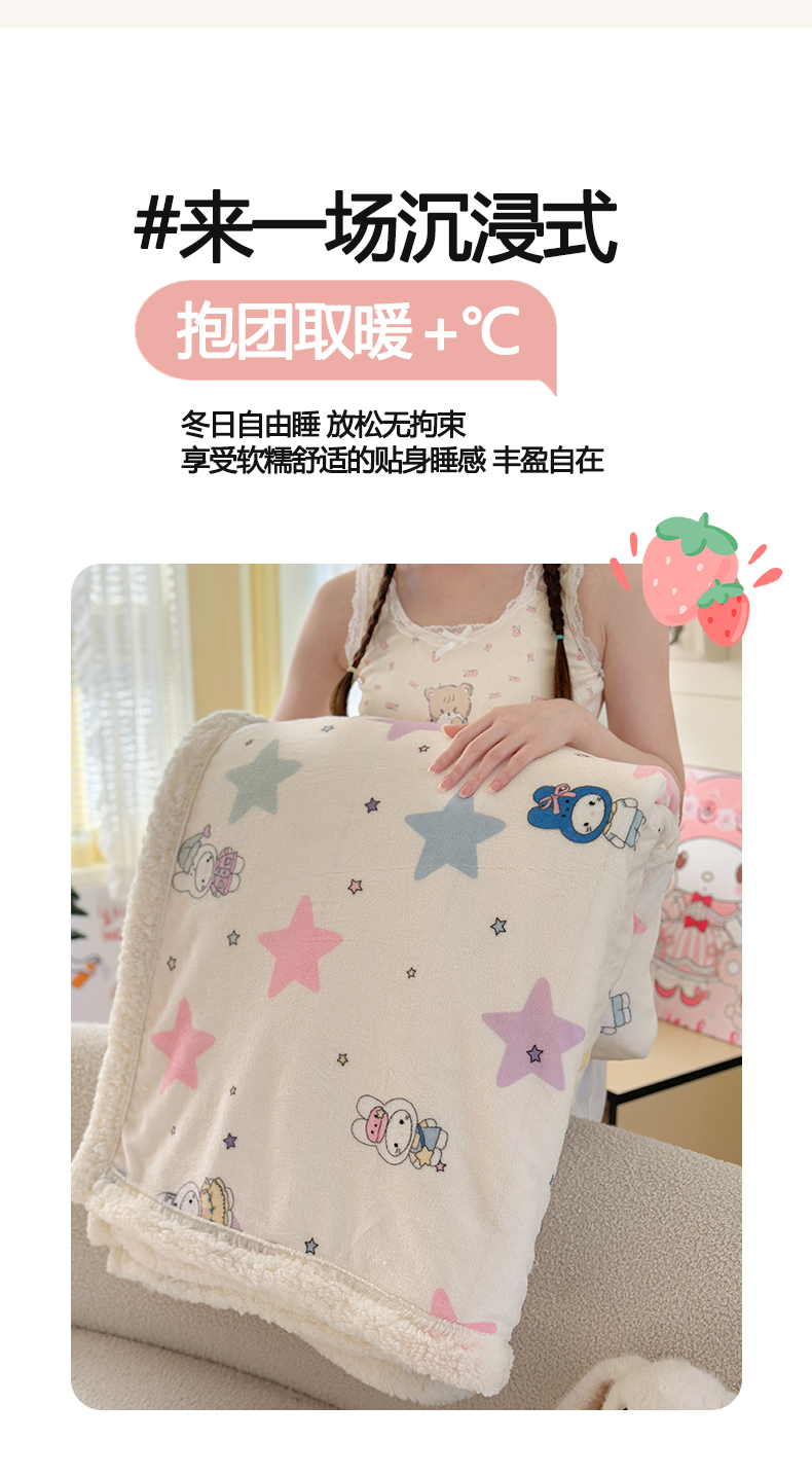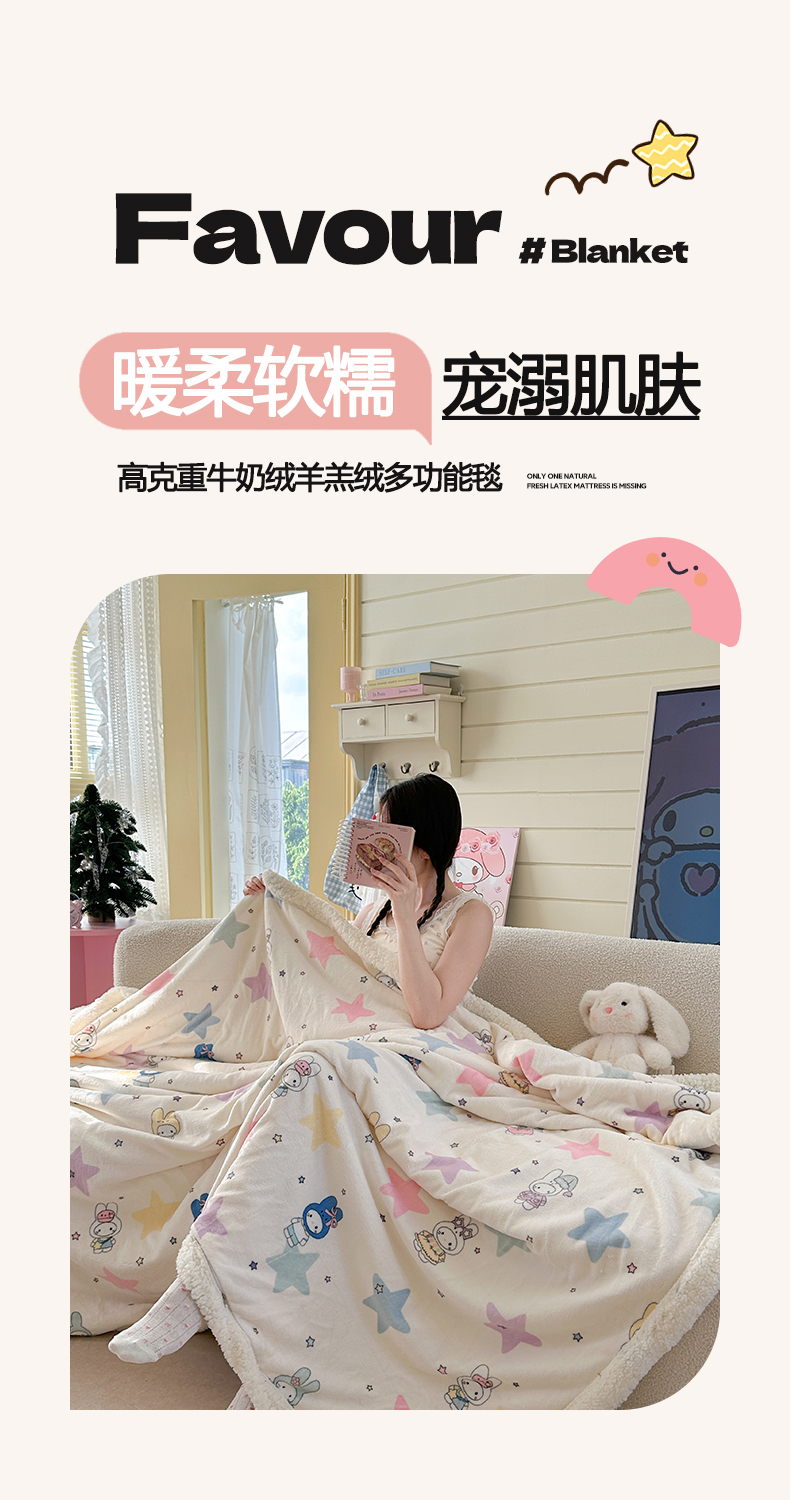 商品名称:Mata蔓塔家 2025新款A类秋冬可爱系牛奶绒羊羔绒多功能毛毯奶盖系列 奶盖-星星米菲