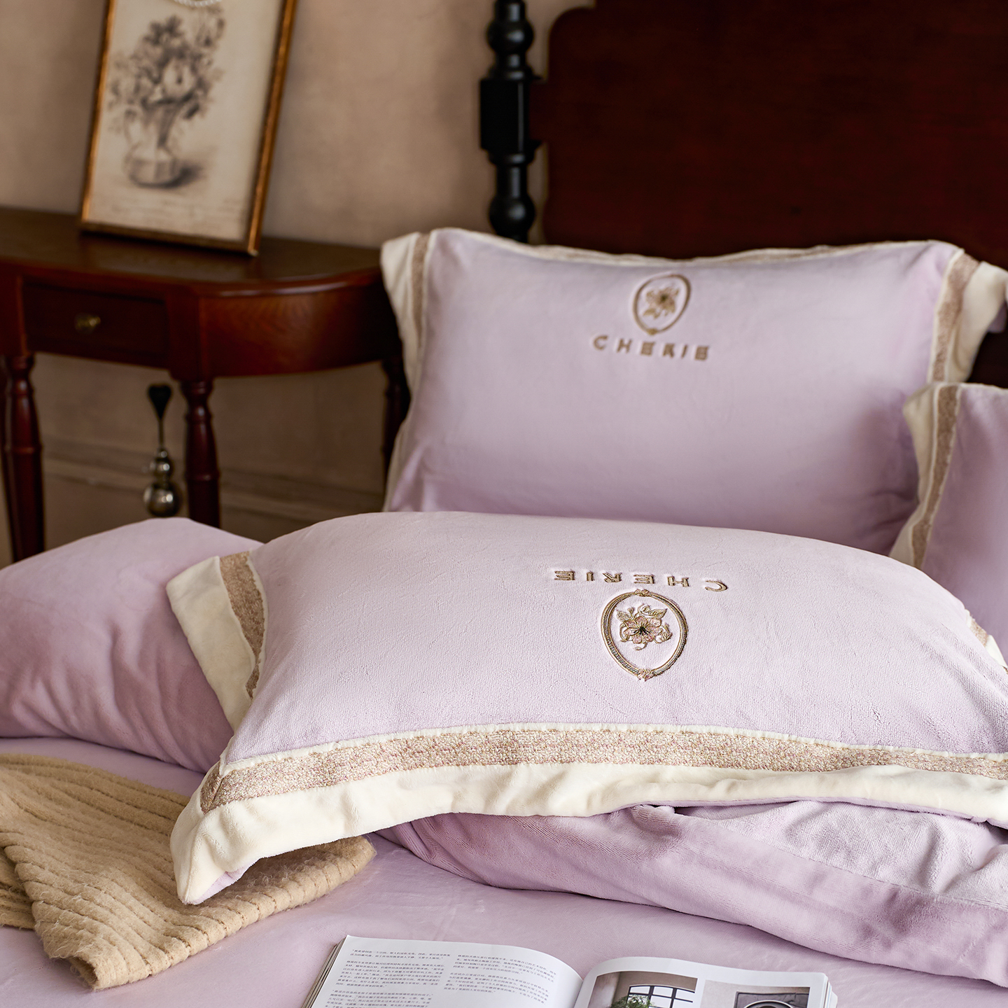 (总)瑞雪家居 2025新款270g全消光牛奶绒四件套-蔓蒂丝系列,贝壳粉,梦想粉,浅绿,浅紫,新米色
