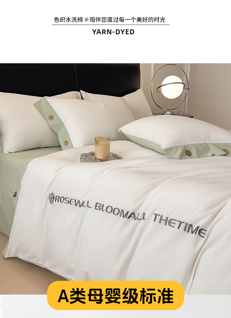 (总)芃成家纺 2025新款A类全棉色织水洗棉纽扣绣花四件套,纽扣款-白色拼浅绿,纽扣款-豆沙拼深灰,纽扣款-卡其拼浅绿,纽扣款-蓝灰拼浅灰,纽扣款-浅粉拼浅灰,纽扣款-浅灰拼卡其,纽扣款-浅蓝拼卡其,纽扣款-浅绿拼浅灰,纽扣款-浅紫拼浅粉,纽扣款-深灰拼浅灰