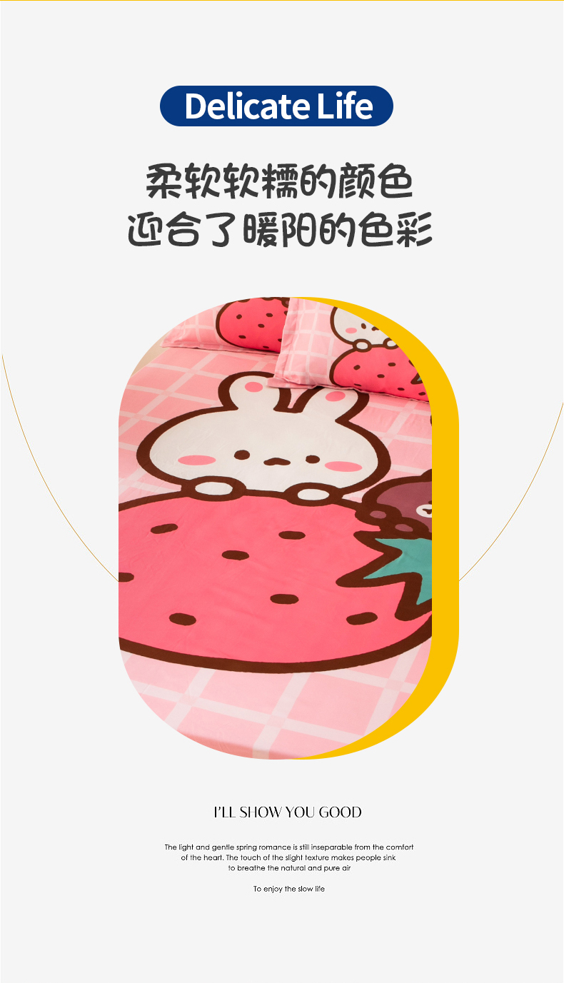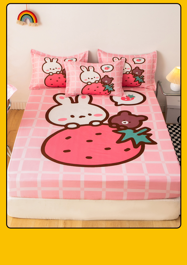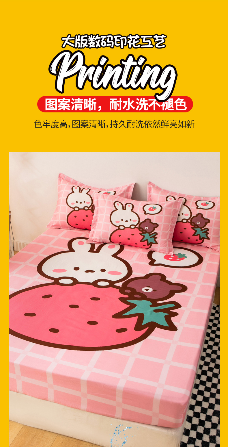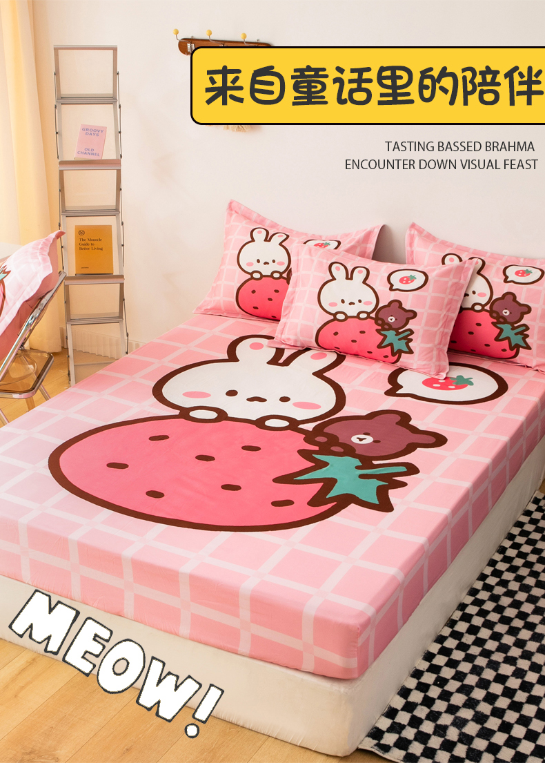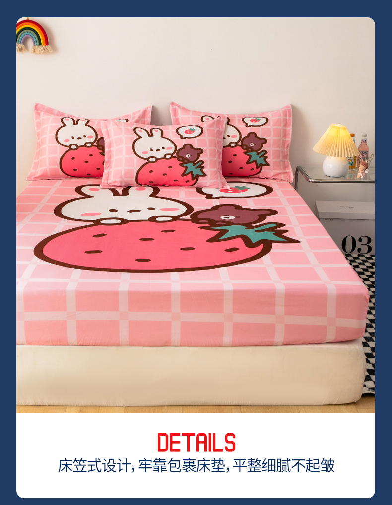 • 91家纺网 家纺一手货源 找家纺 一电 2024新款卡通床单床笠棕垫床套防尘罩席床垫保护套卡通儿童上下床床单床笠-第一批 草莓动物