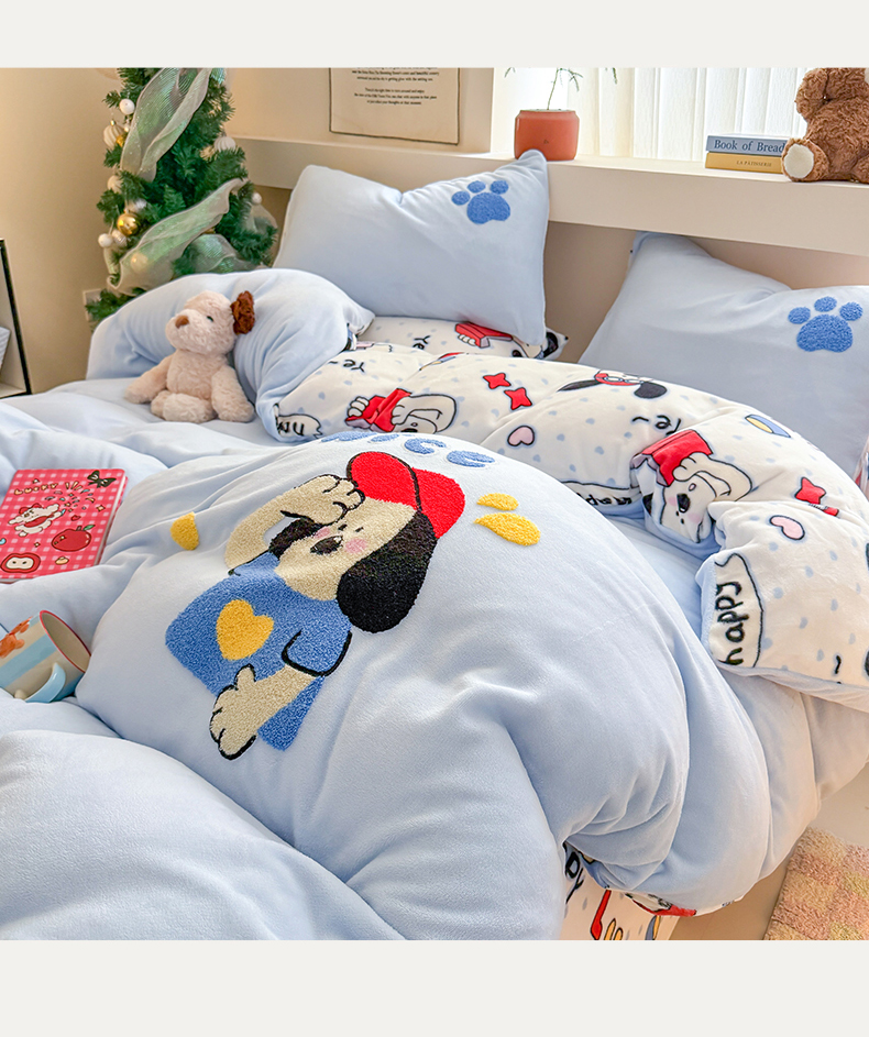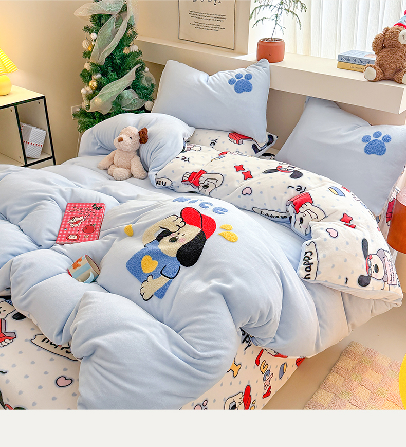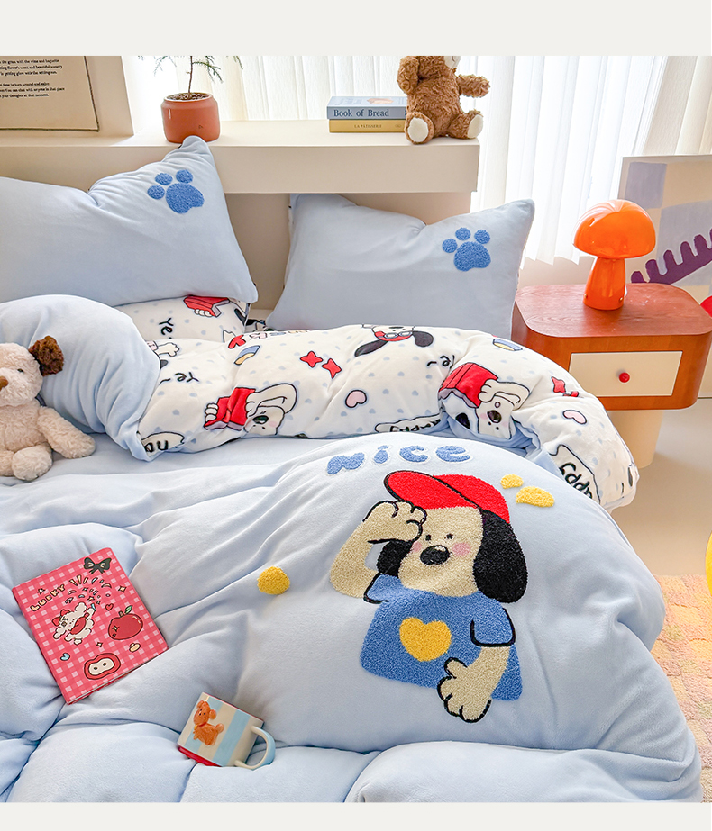 商品名称:艾特你 2025新款毛巾绣200克牛奶绒卡通毛巾绣四件套 组合